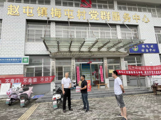 2022年7月6日,在台风和新冠疫情袭来之际,砀山县税务局党组副书记、副局长陈建波来到砀山县赵屯镇梅屯村,看望并慰问战斗在一线的驻村工作队,并送去雨伞、纯净水、方便面等物资。