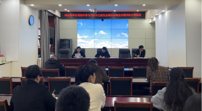 近日,砀山县审计局召开全体人员会议,传达学习习近平主席在全球妇女峰会开幕式发表的《弘扬北京世妇会精神 加速妇女全面发展新进程》主旨讲话。