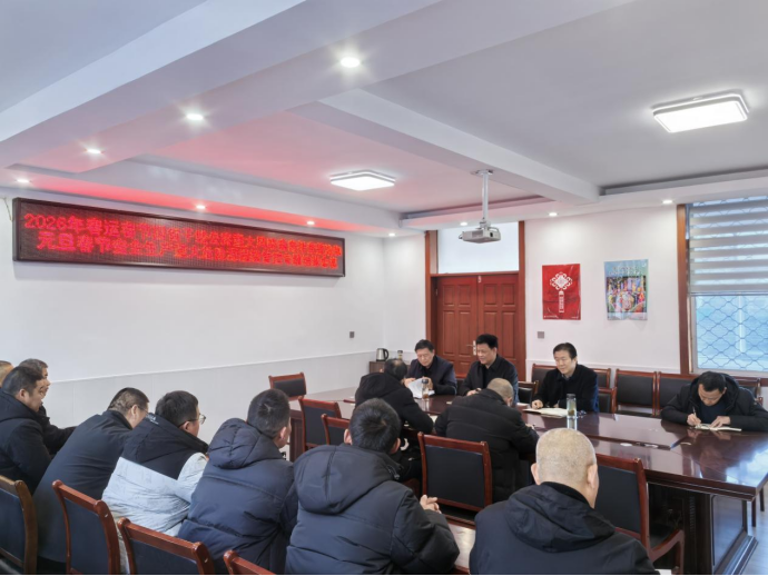期间,传达了交通运输部安委办工作专班成立通知及省交通厅相关转发文件,王科长领学《2026年春运春节交通运输安全生产重大风险隐患市级抽查指南》。王主任强调要严守安全底线,落实提级管控要求,抓紧抓实隐患排查工作,充分准备积极应对冬季恶劣天气。分中心张树举主任作表态发言,承诺坚决抓好贯彻落实。