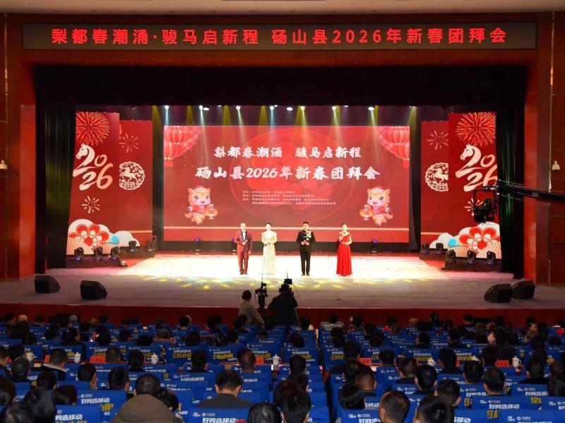 梨都春潮涌,骏马启新程。2月11日,砀山县2026年新春团拜会在市民广场会议中心举行。全县各界干部群众代表齐聚一堂,共赏文艺盛宴,共叙深厚情谊,共绘梨都高质量发展的崭新蓝图。县委书记朱新华,县人大常委会主任陈晓强,县政协主席武云峰,县委副书记沈慧星等出席。