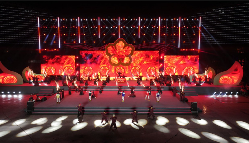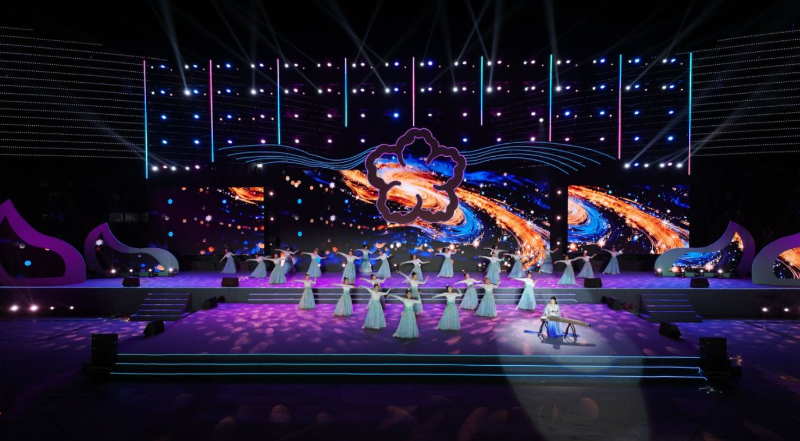 开幕式文艺演出以“梨花”为主线,分为《金声玉振·梨花开》《琼枝舞韵·梨花仙》《云袖春波·梨花海》《火舞流光·梨花雪》《薪火相传·梨花颂》五个篇章,融合砀山唢呐、地方民俗、非遗技艺与现代舞台科技、机器人创意表演,现场气氛热烈,掌声不断。