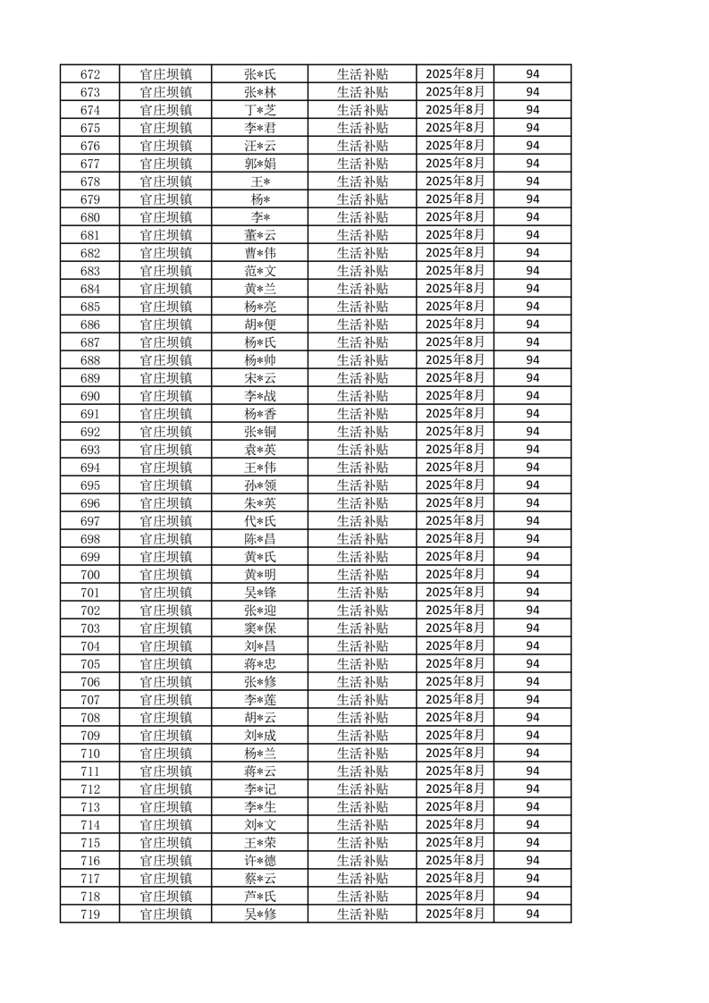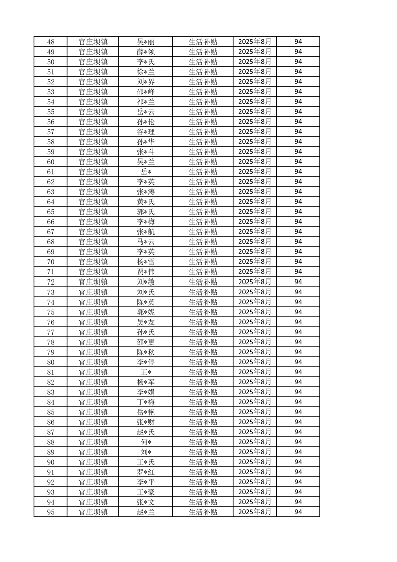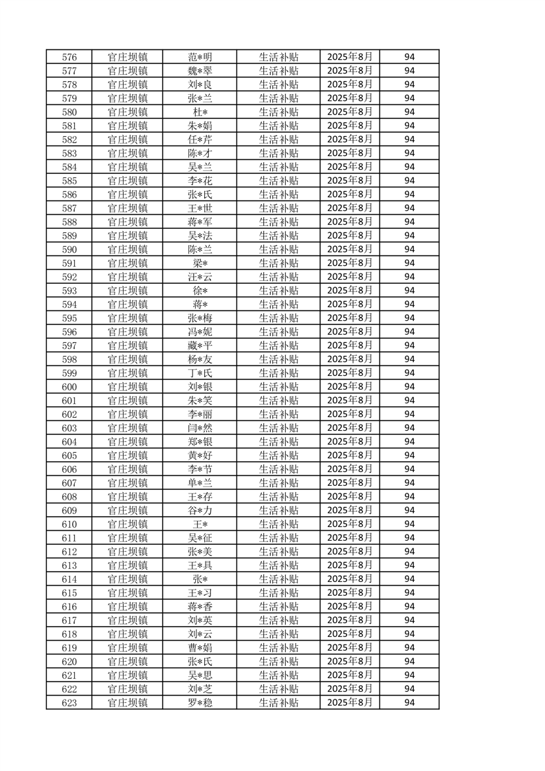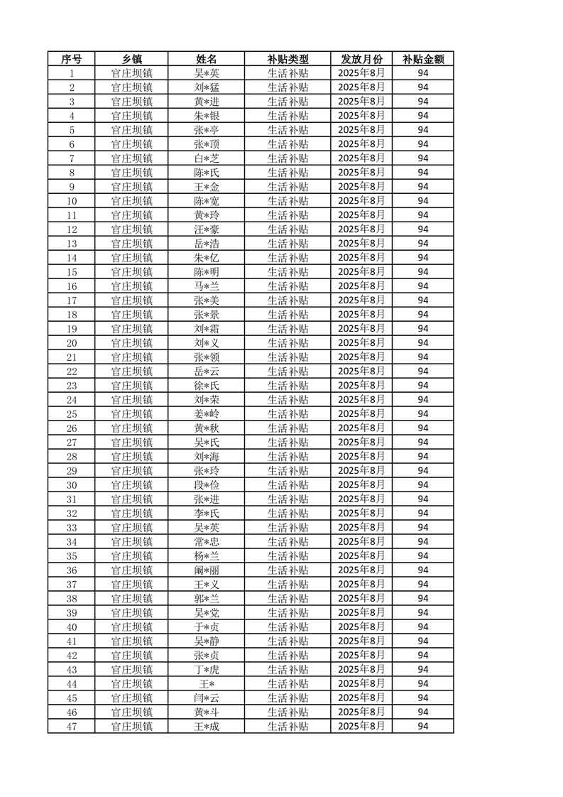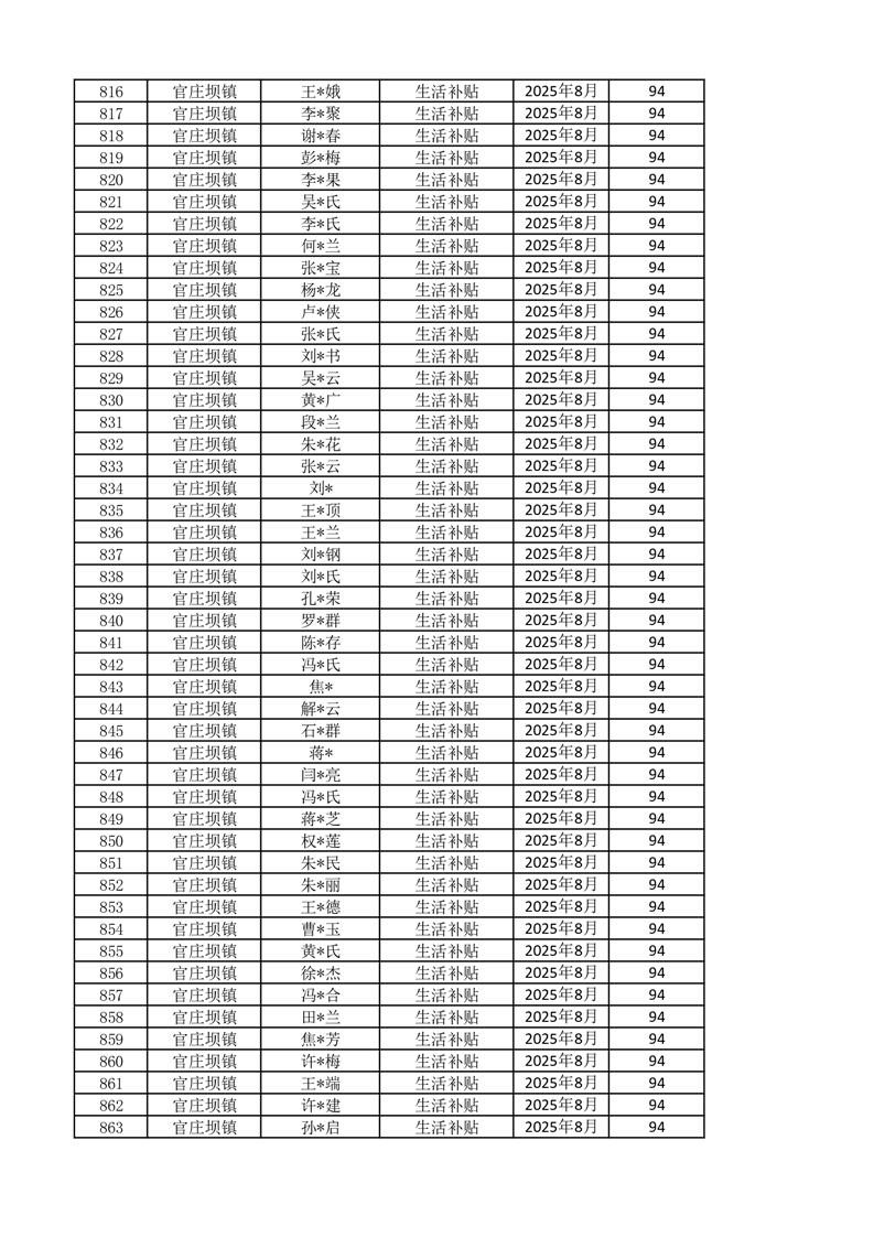 官庄坝镇2025年8月份困难残疾人生活补贴资金发放花名册