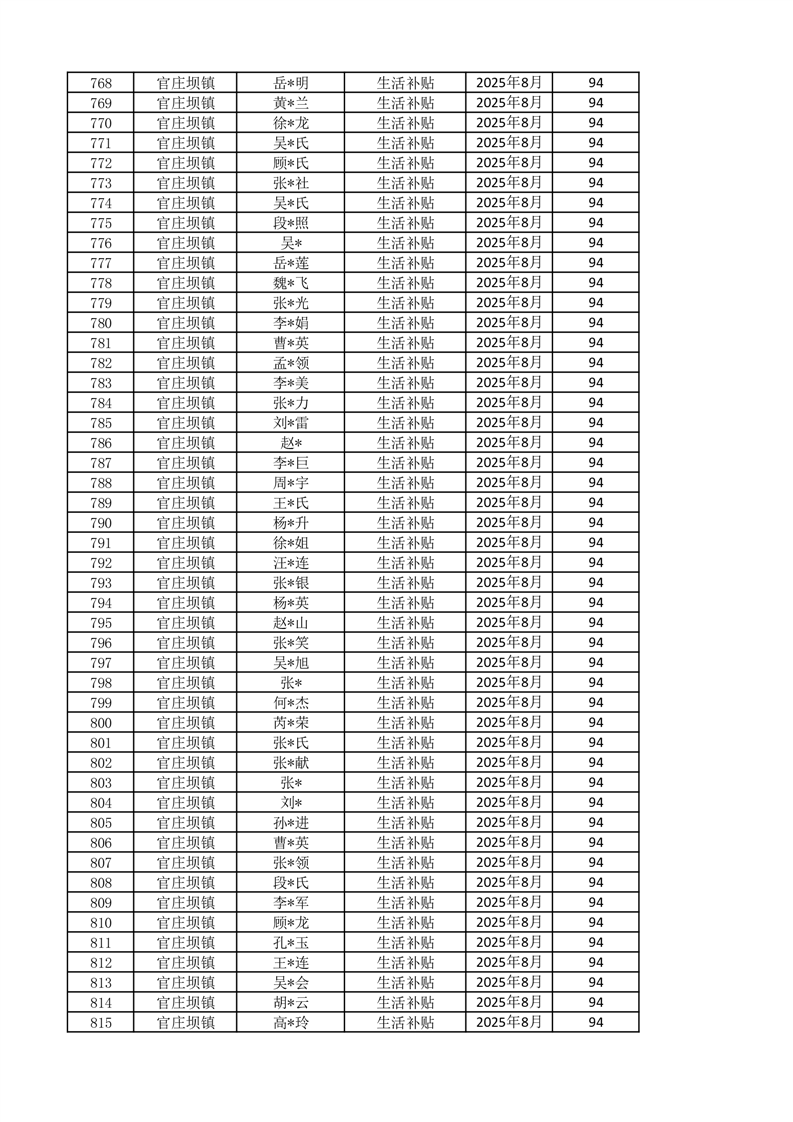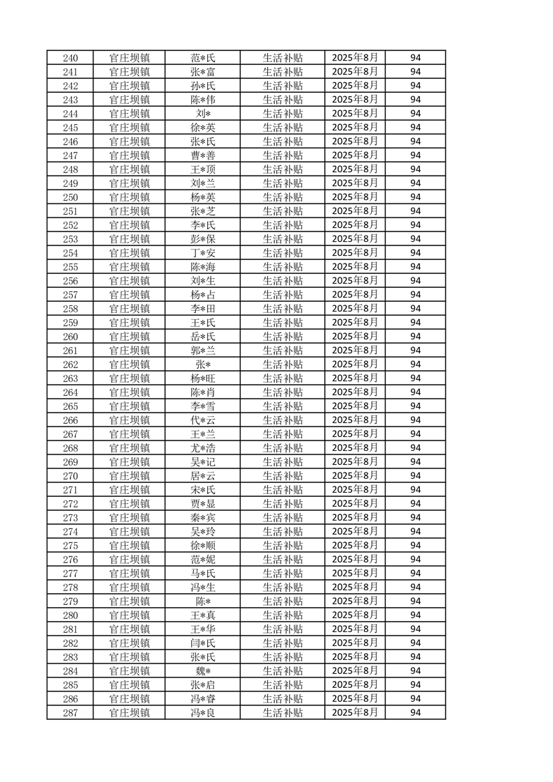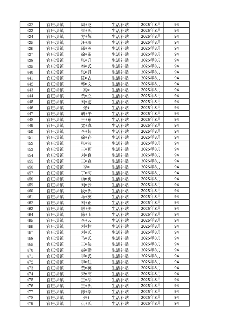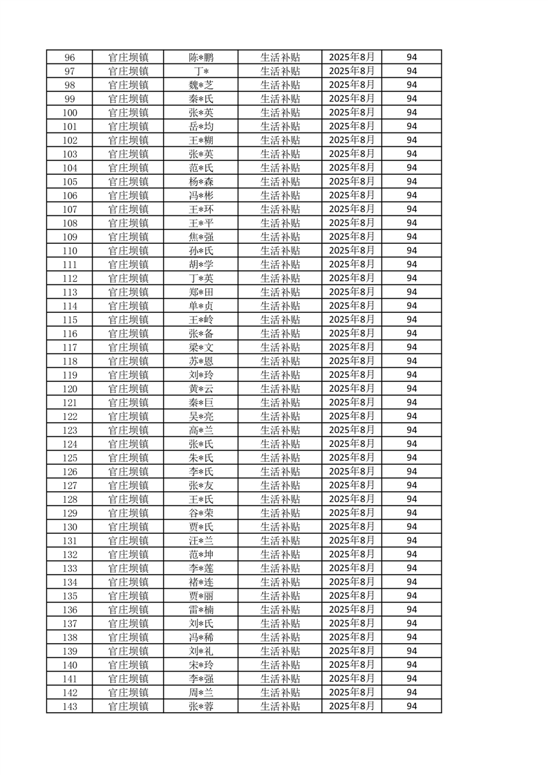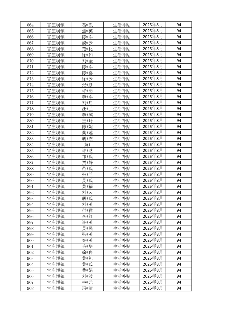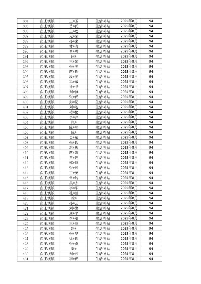 官庄坝镇2025年8月份困难残疾人生活补贴资金发放花名册