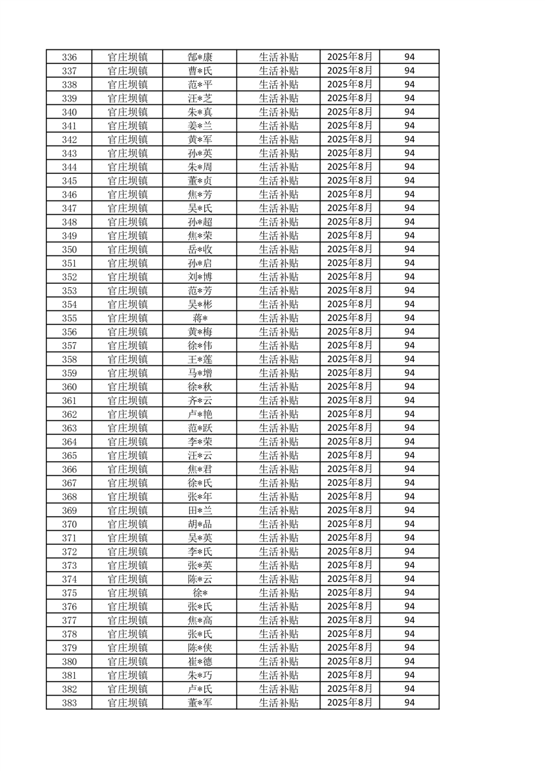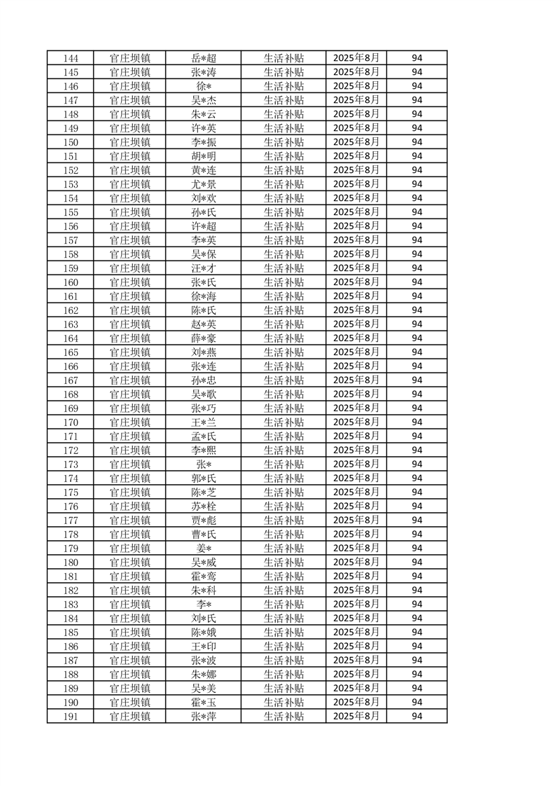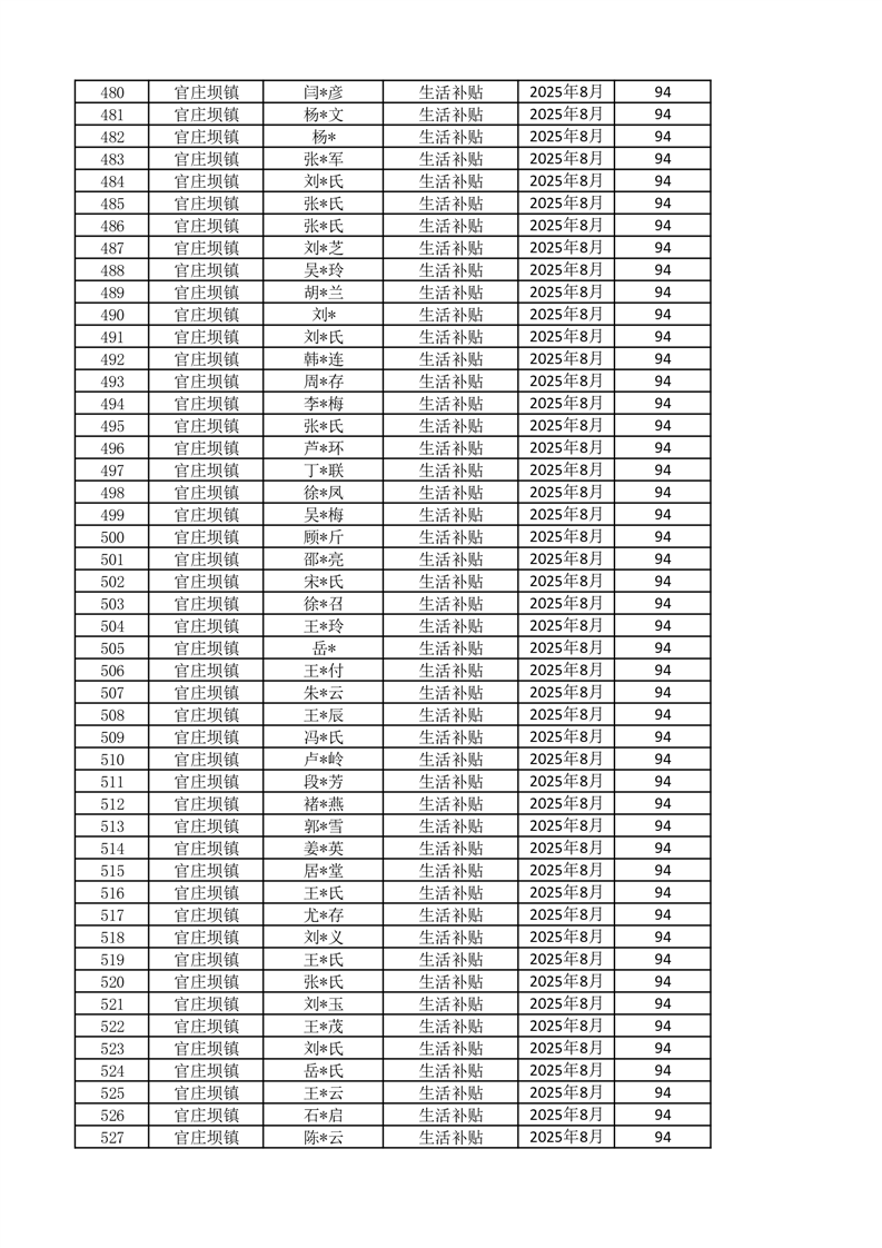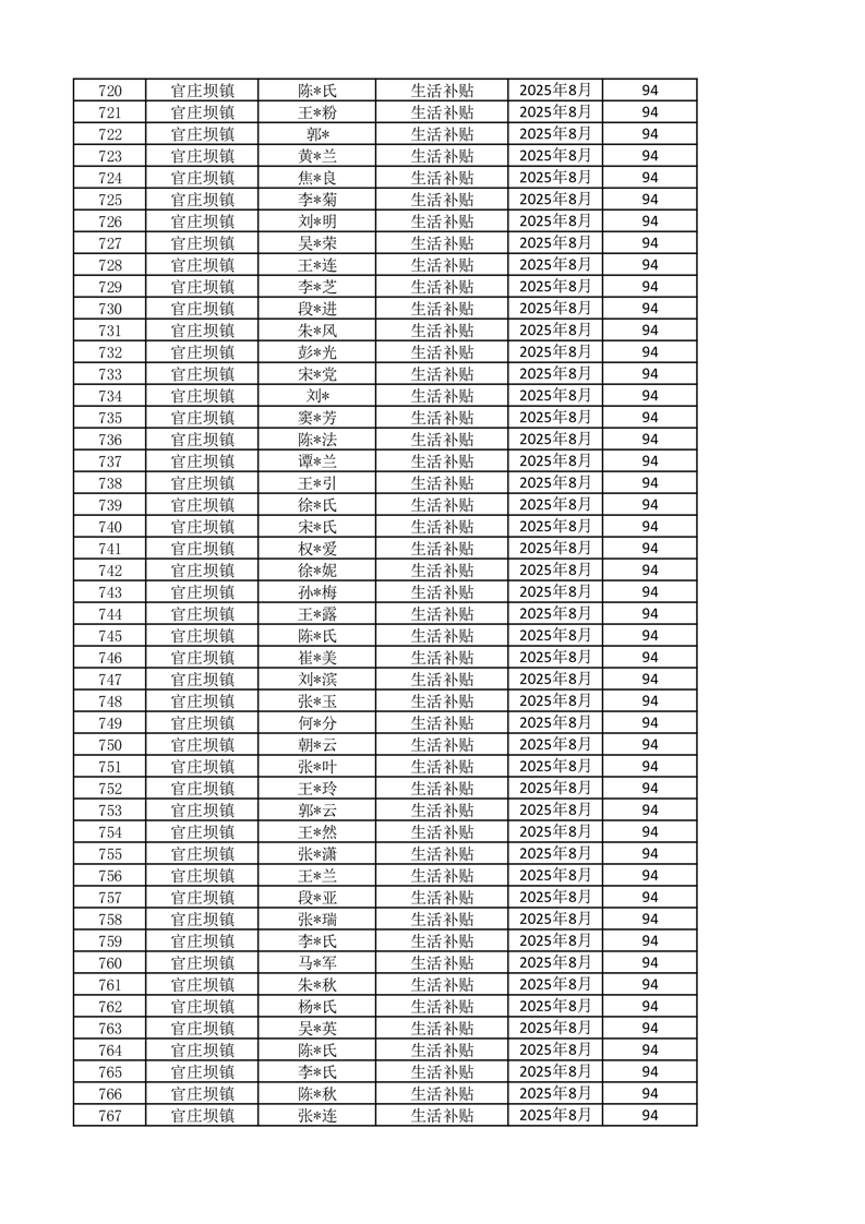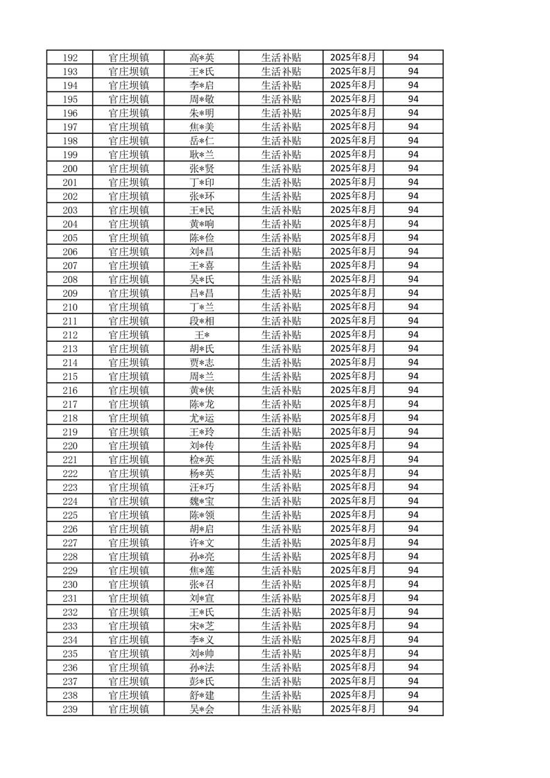 官庄坝镇2025年8月份困难残疾人生活补贴资金发放花名册