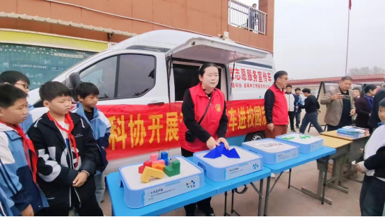 活动当天,官庄坝镇大德育学校的操场上热闹非凡,县科技局工作人员与科普志愿者们提前搭建起“科普体验区”“知识宣讲区”“器材展示区”三大板块,通过“沉浸式体验+互动讲解”的模式,让抽象的科学知识变得直观易懂。