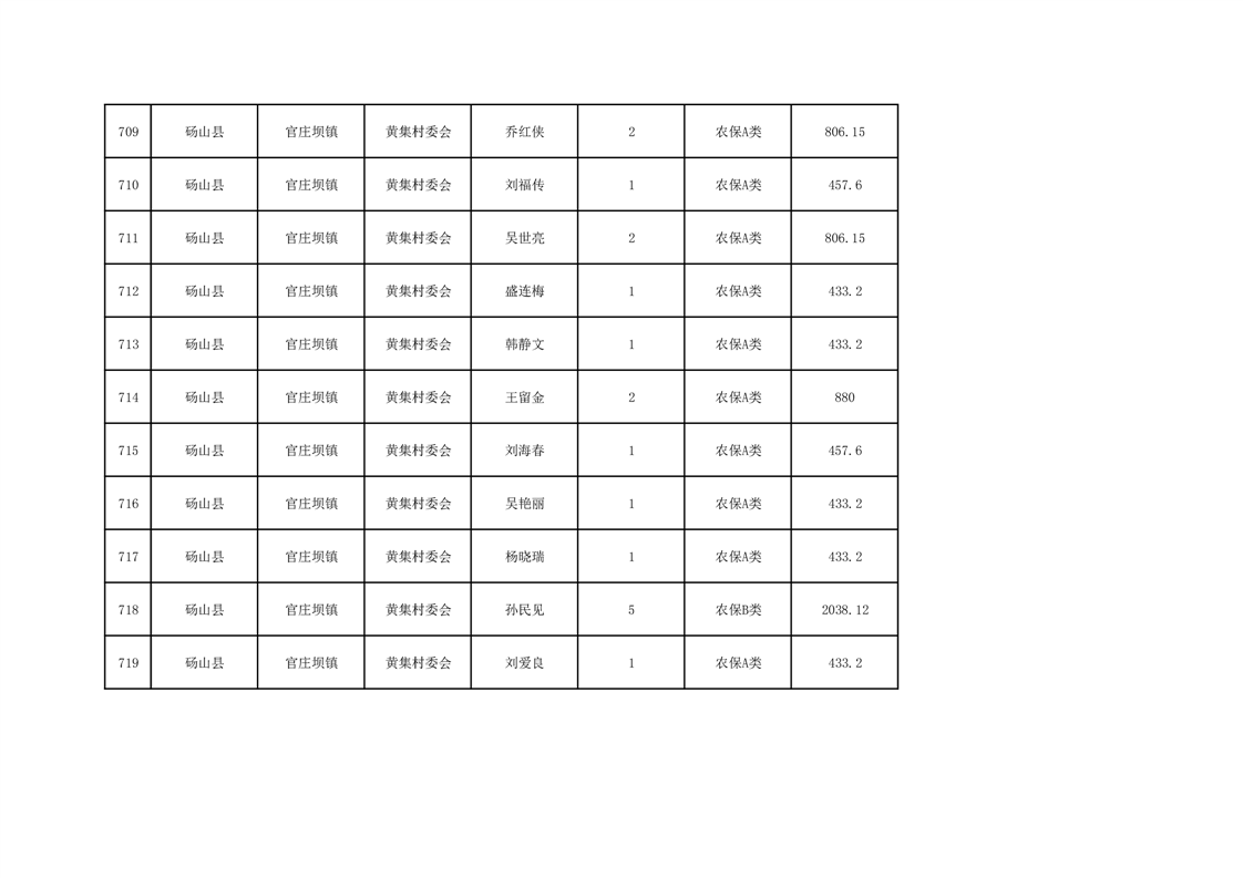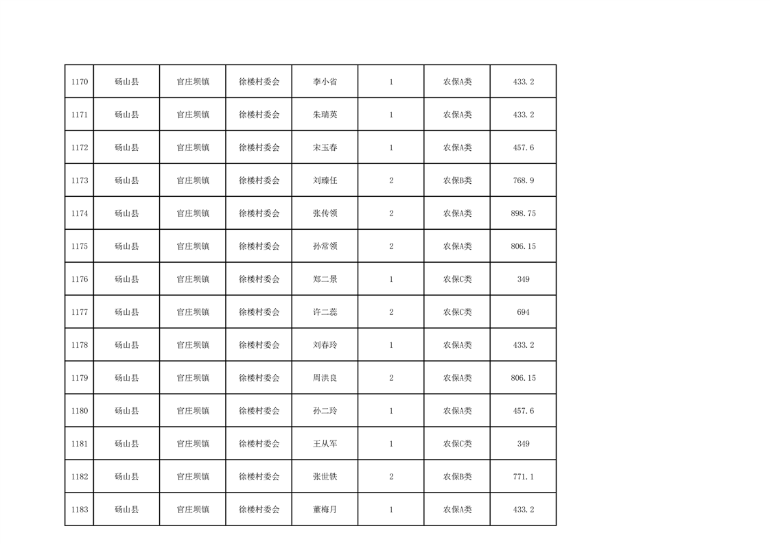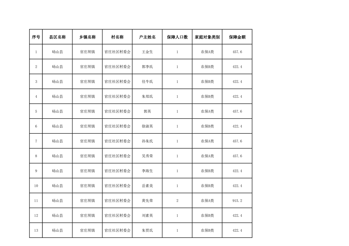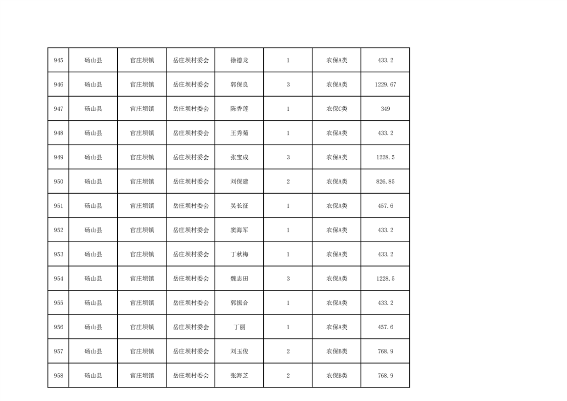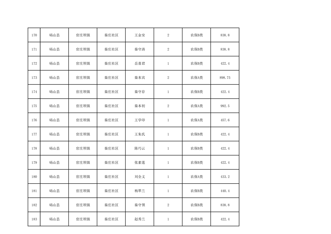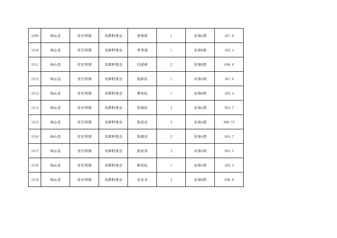 官庄坝镇2025年9月农村低保资金发放花名册