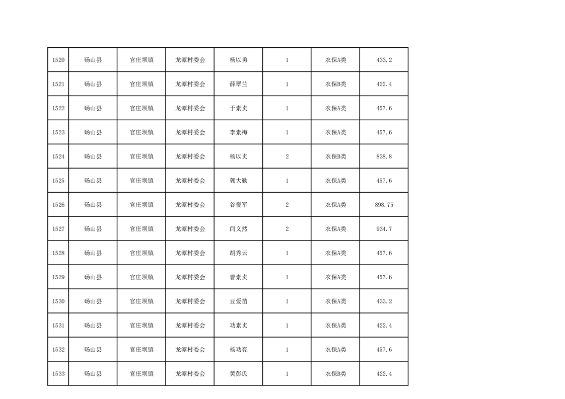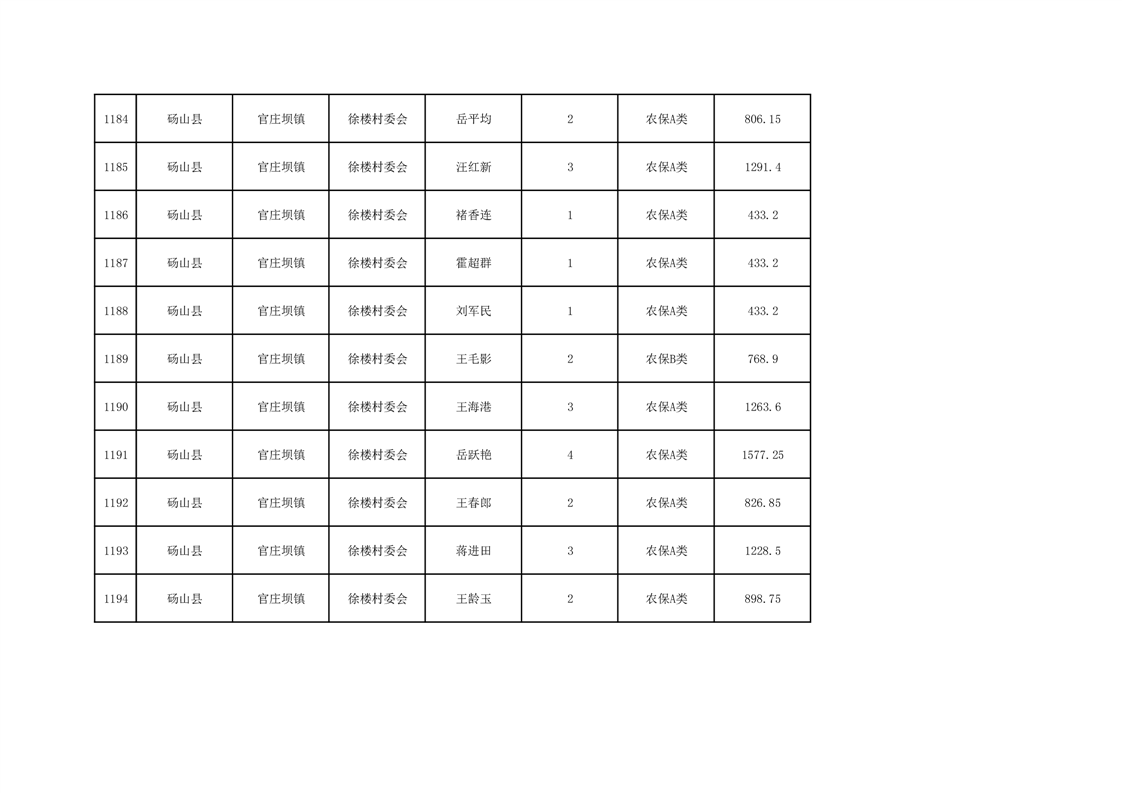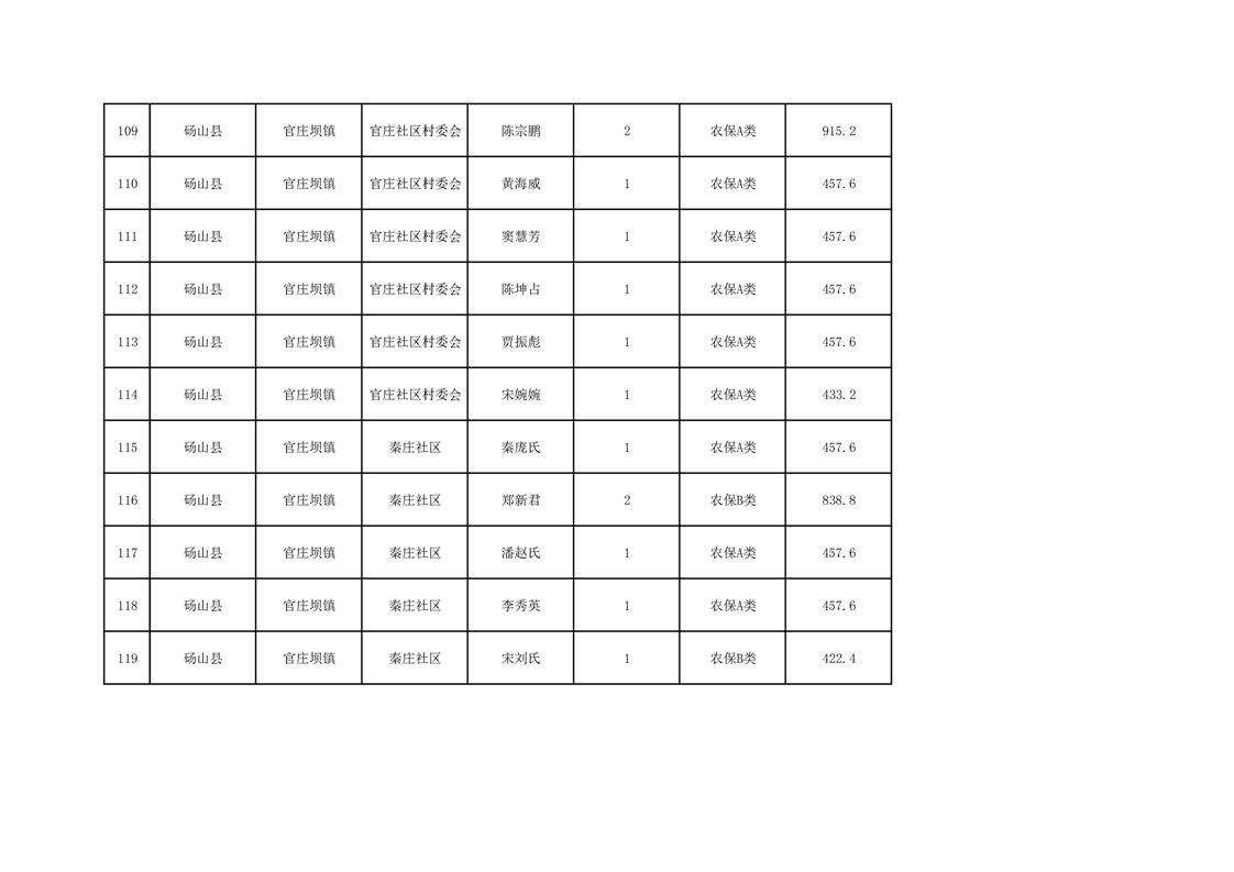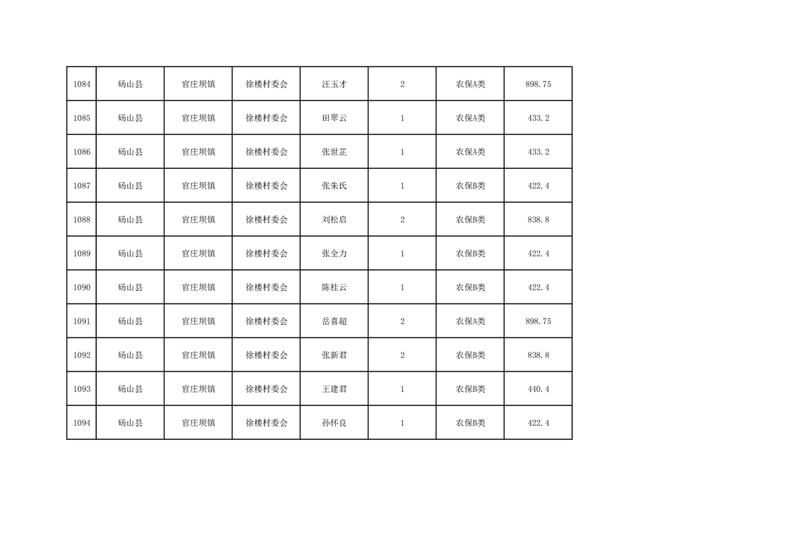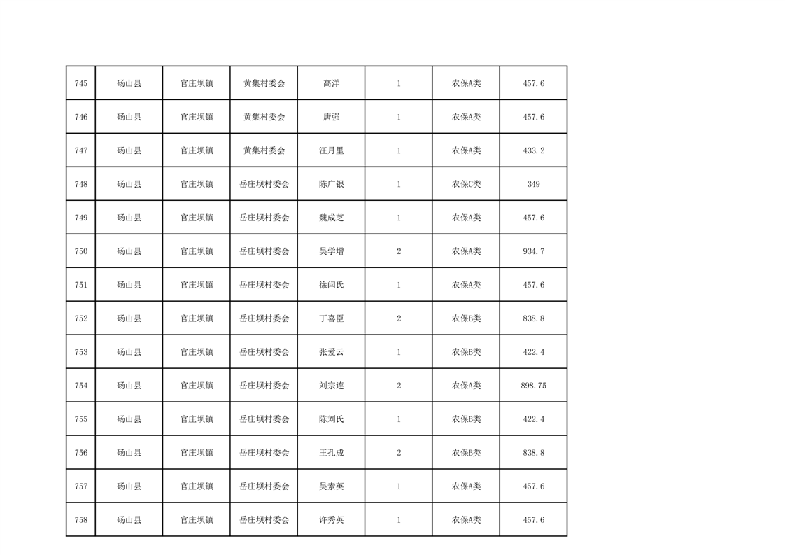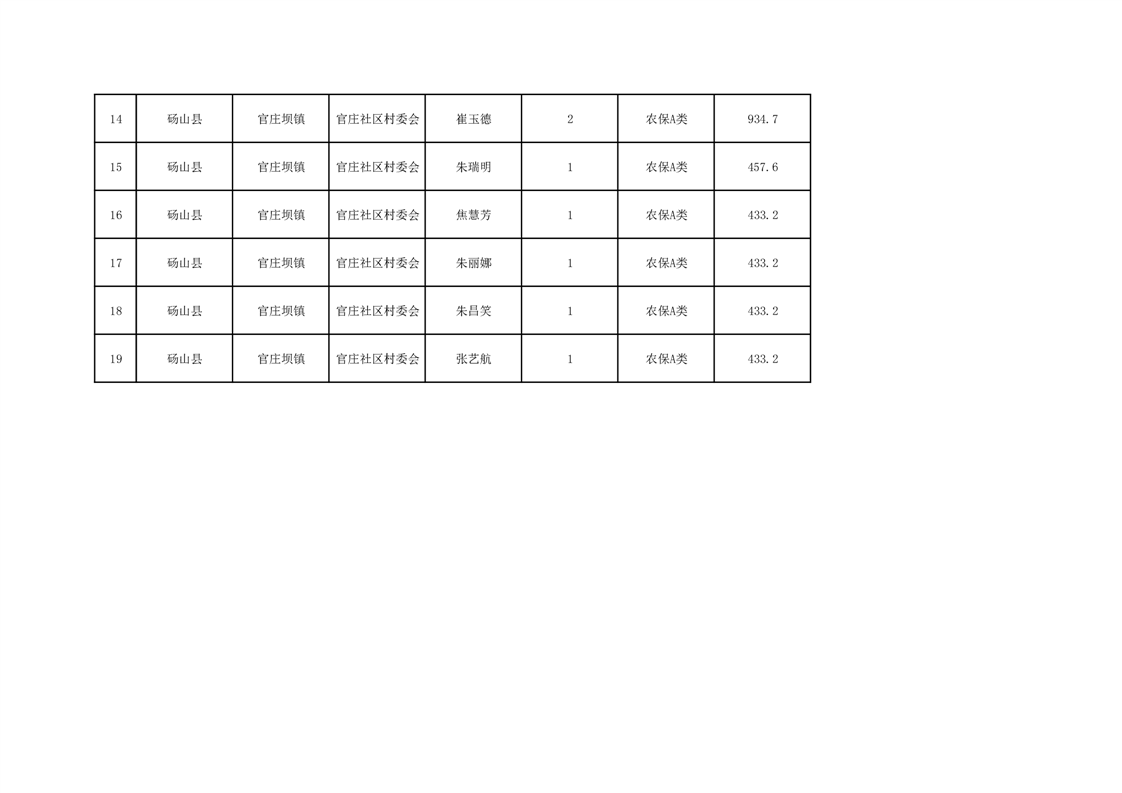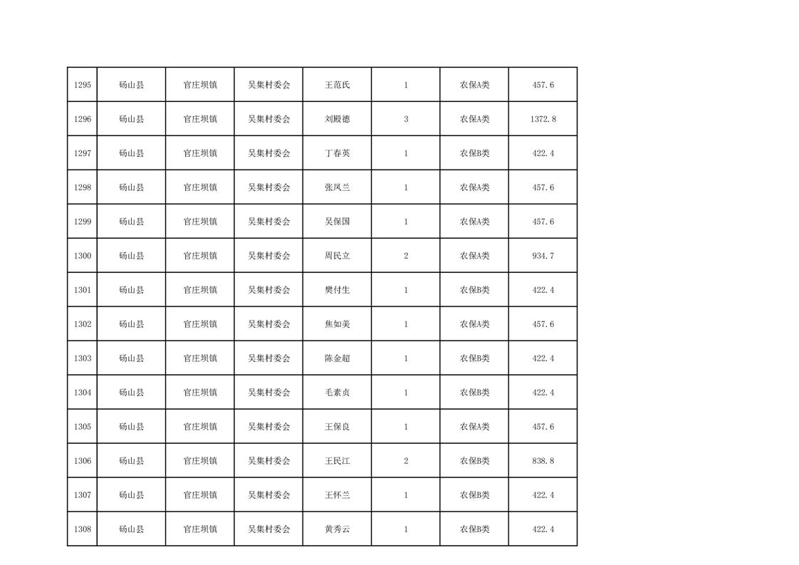 官庄坝镇2025年9月农村低保资金发放花名册