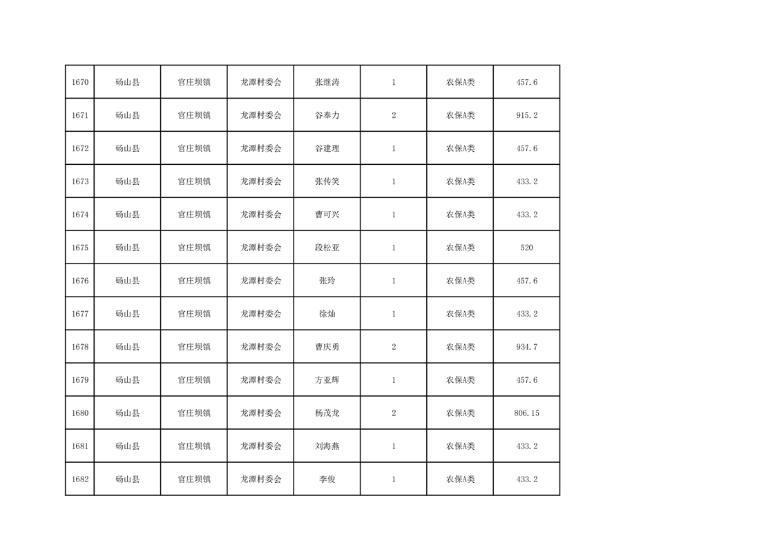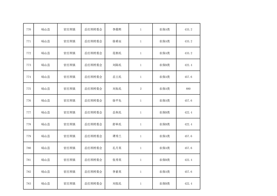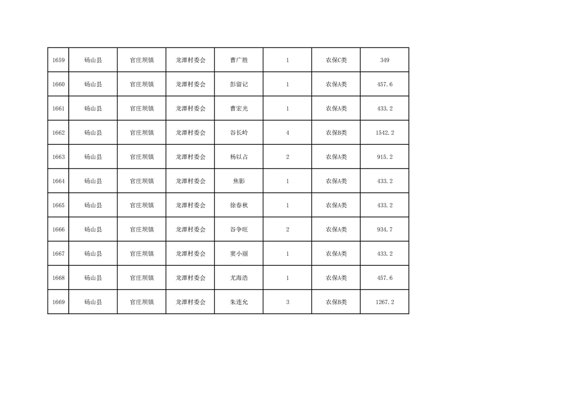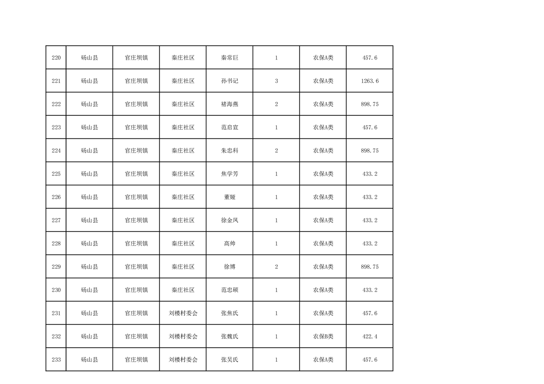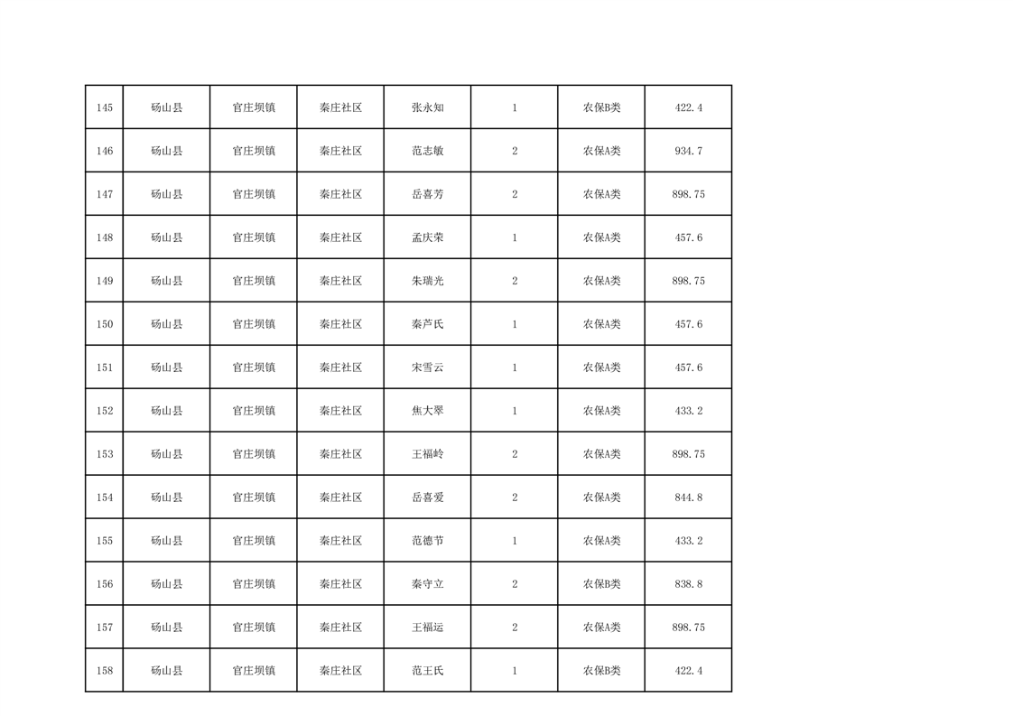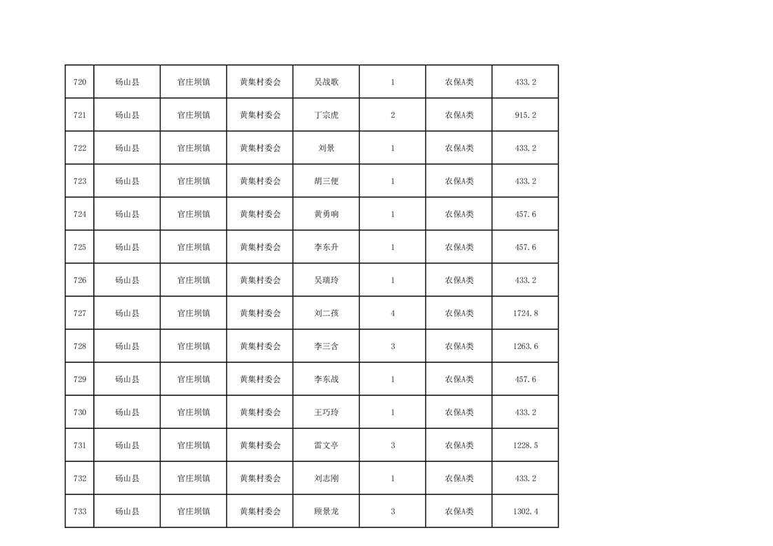官庄坝镇2025年9月农村低保资金发放花名册