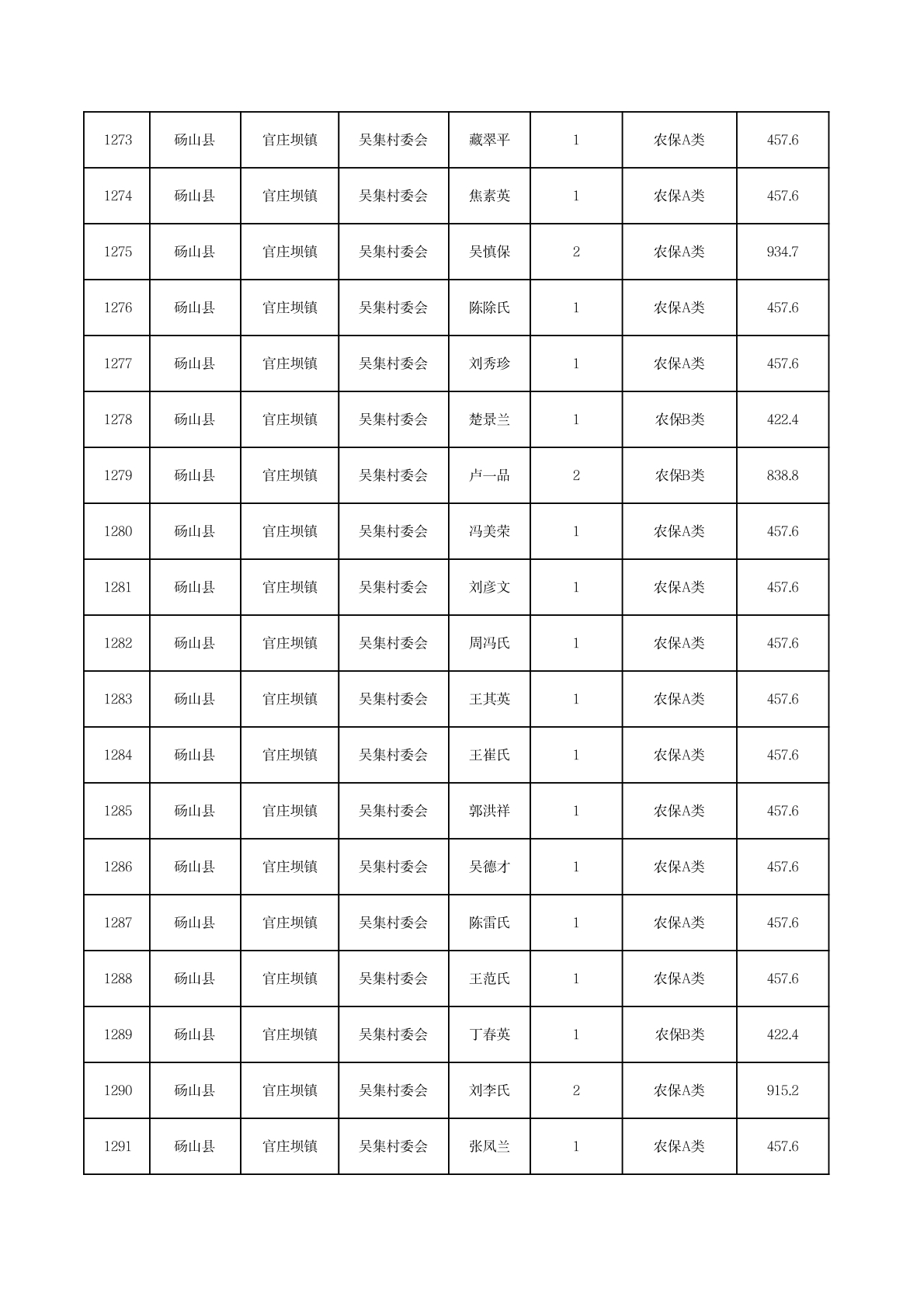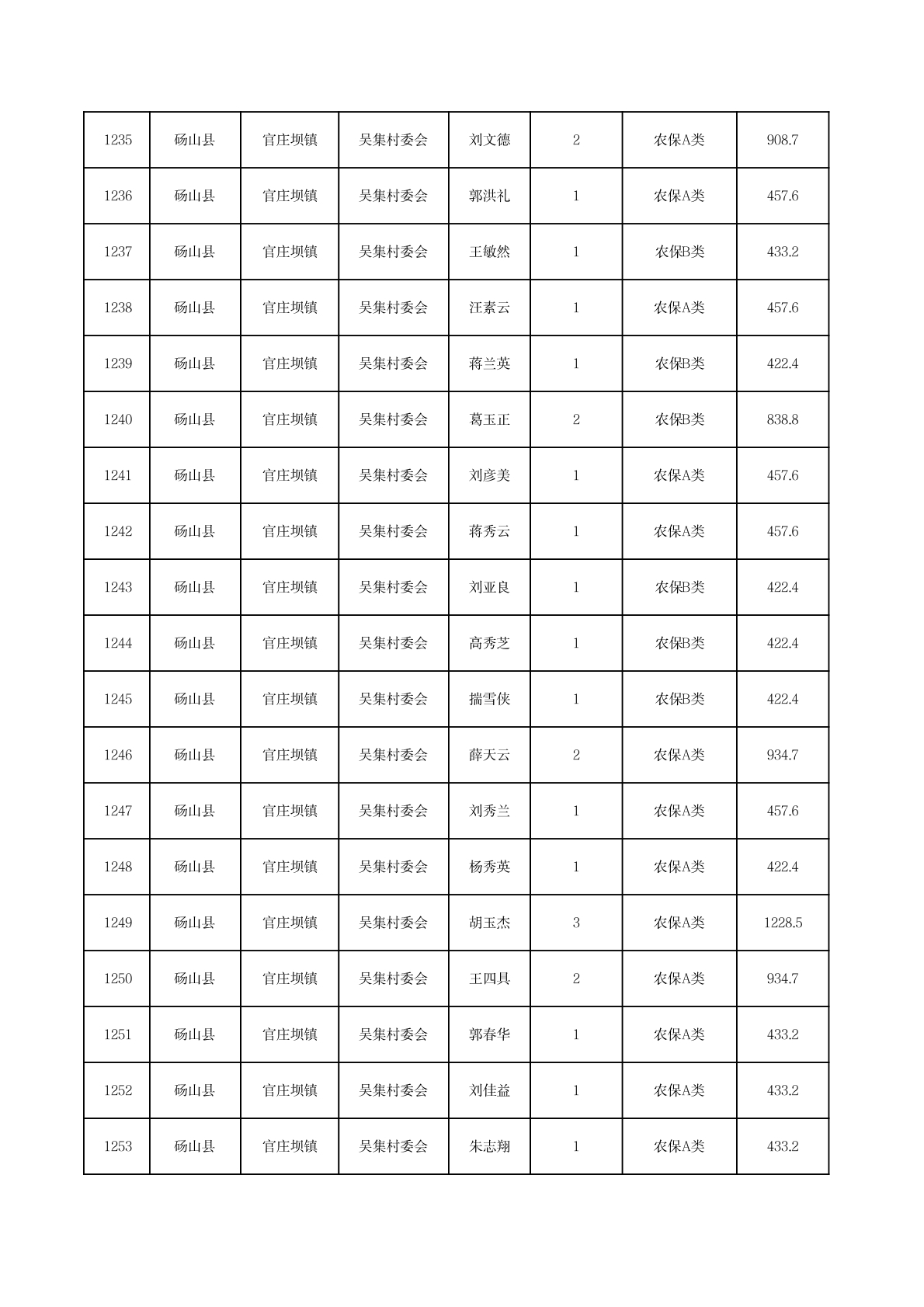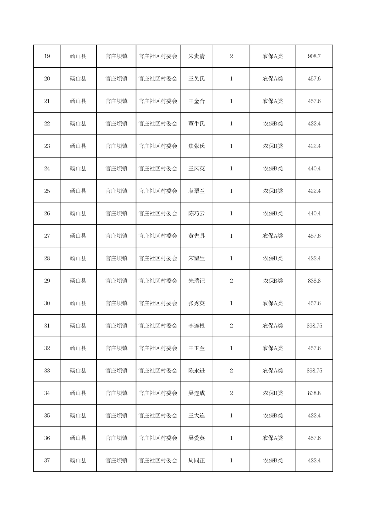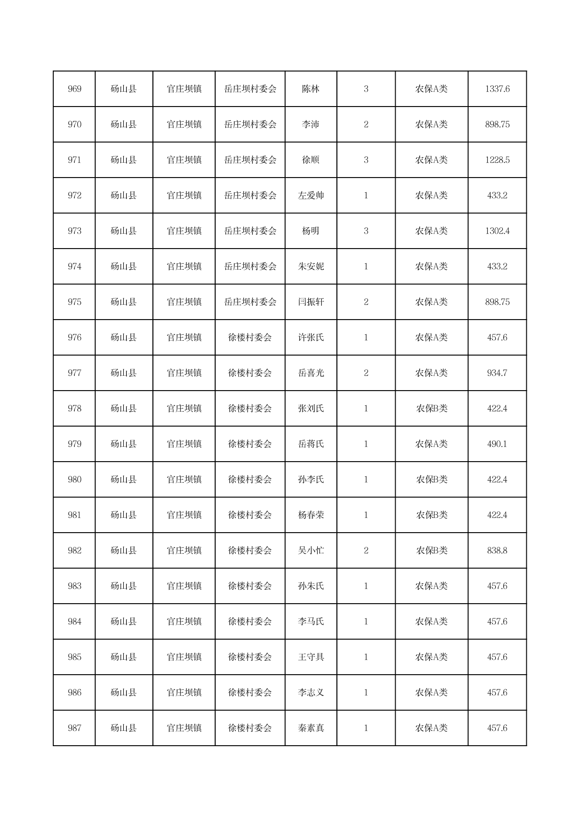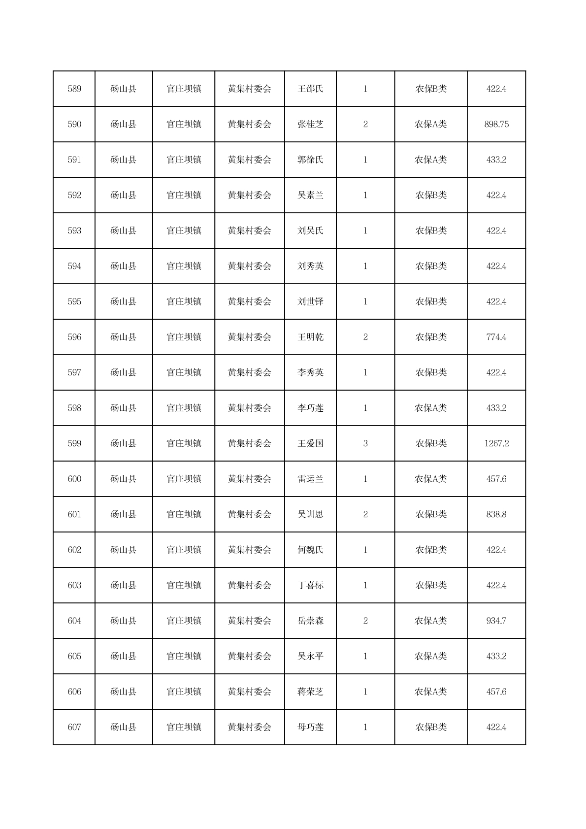官庄坝镇2025年11月农村低保资金发放花名册