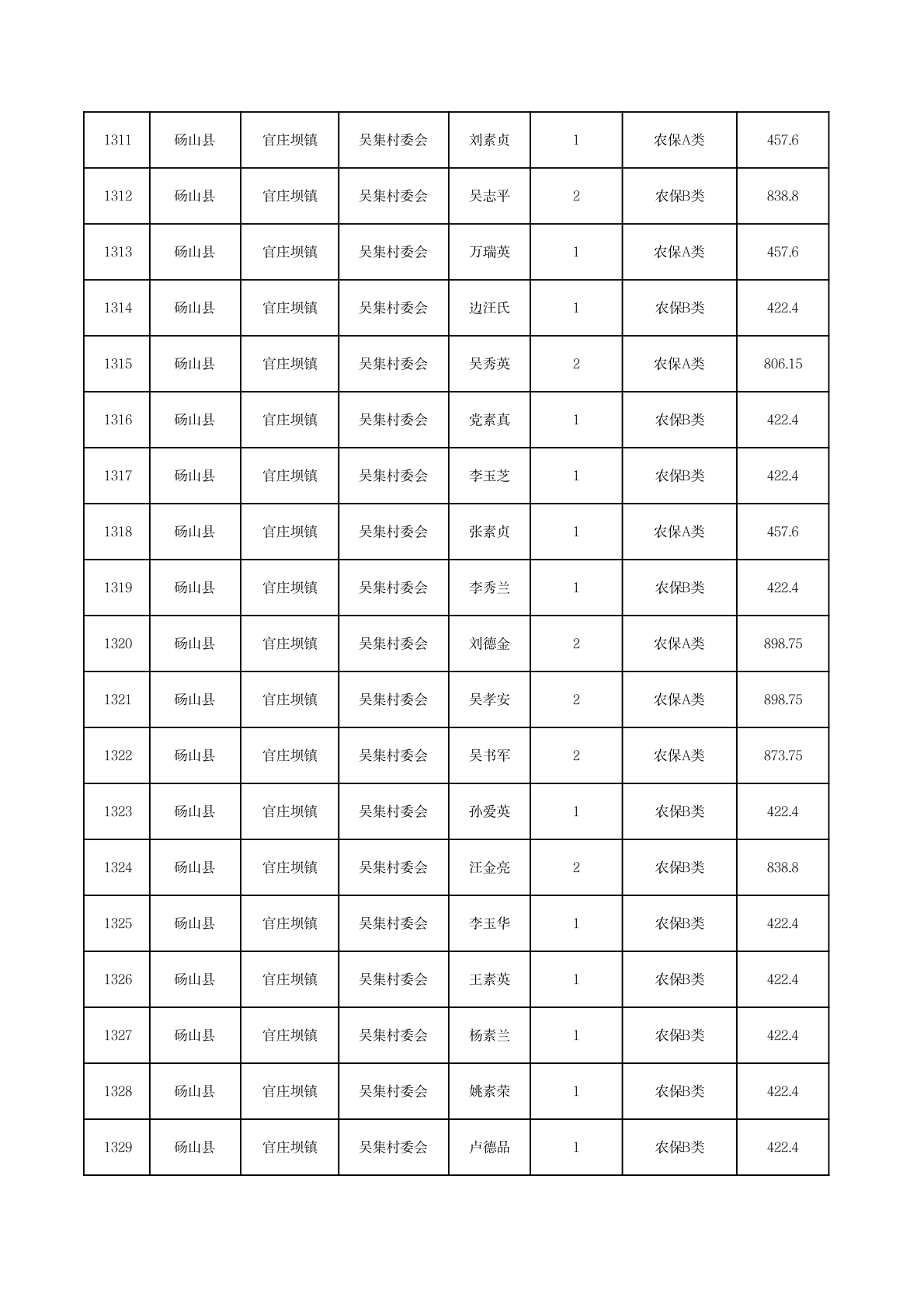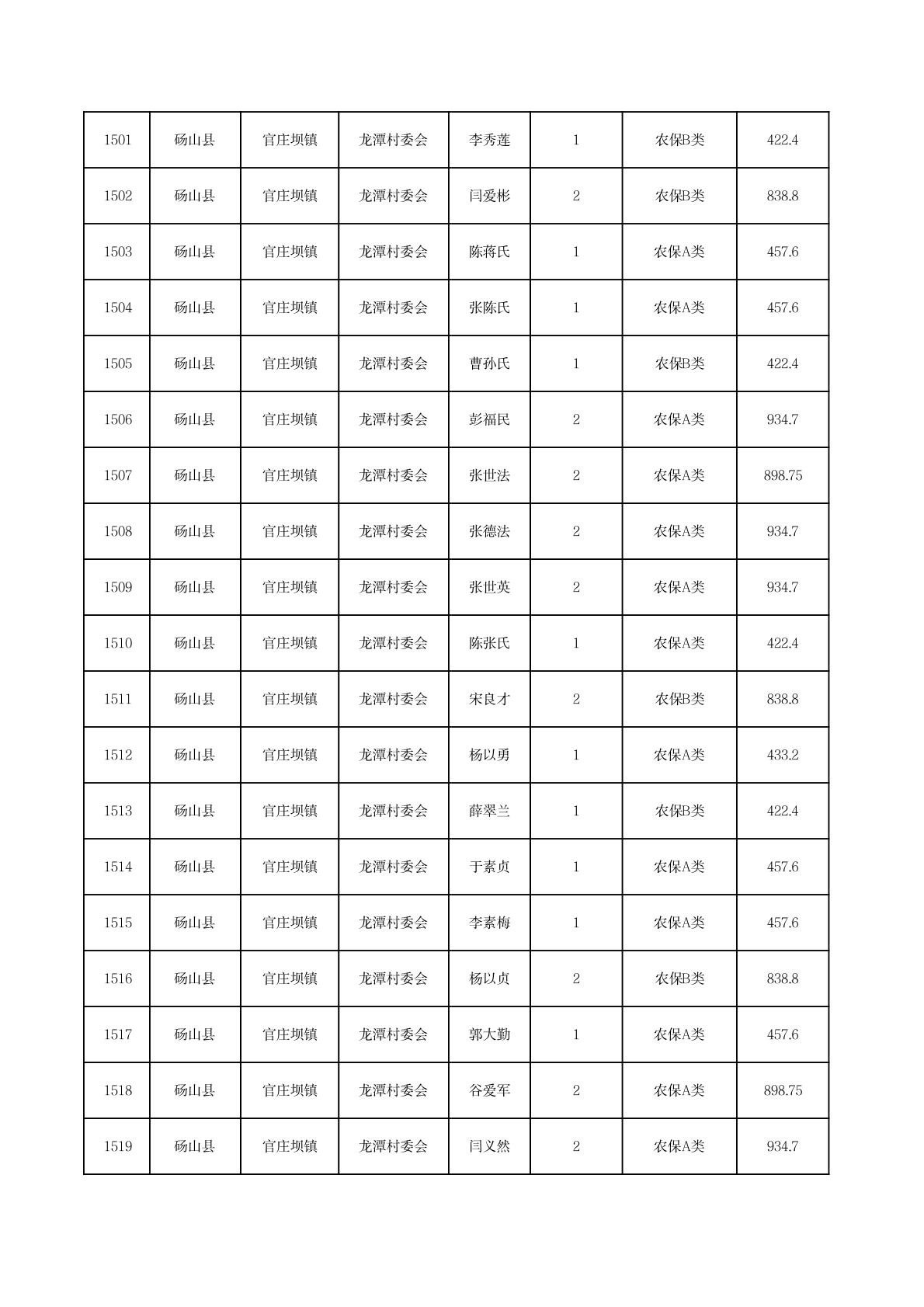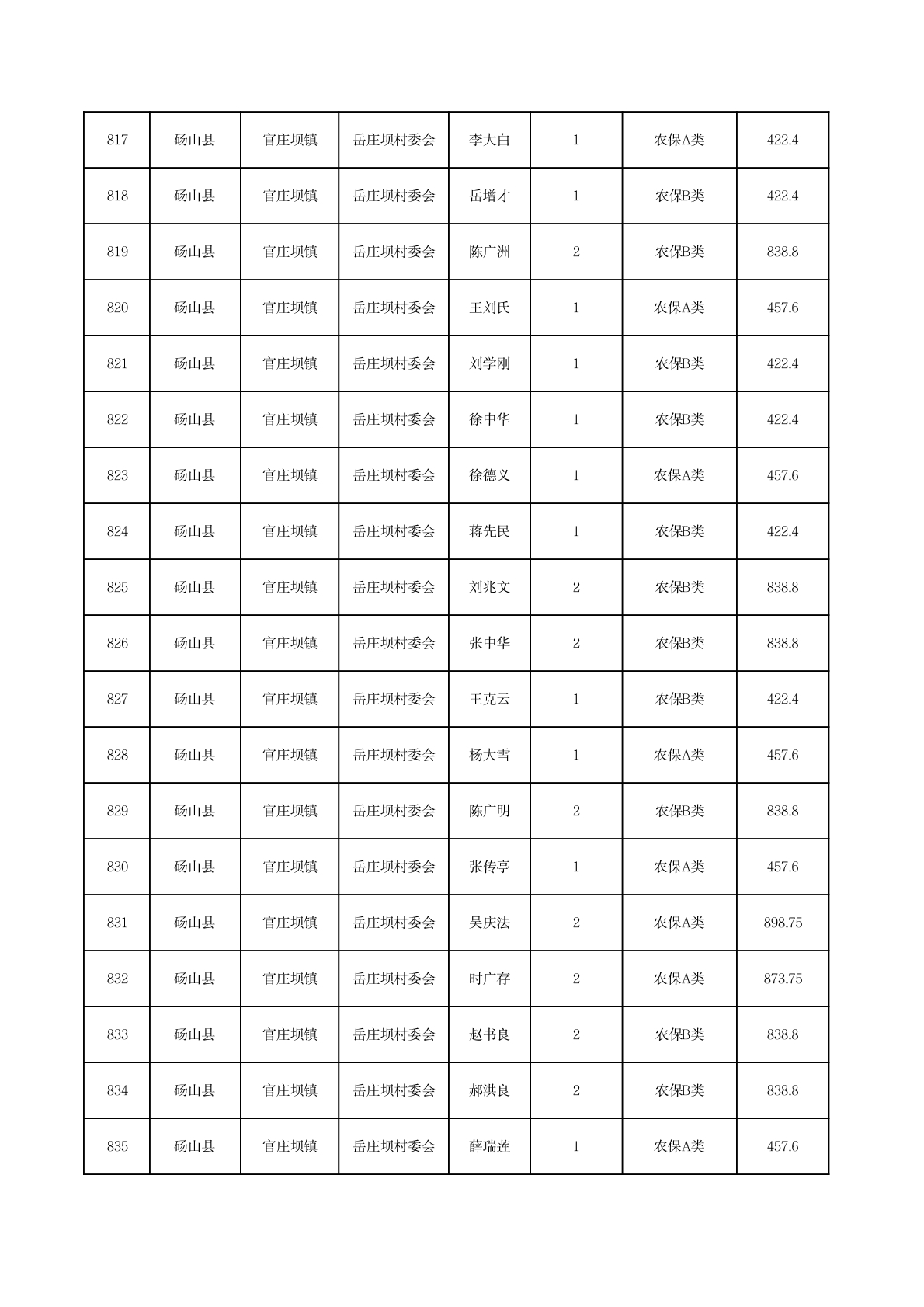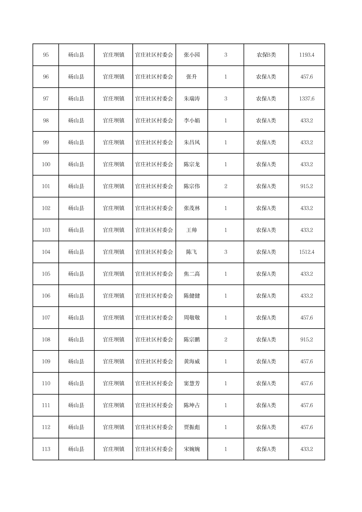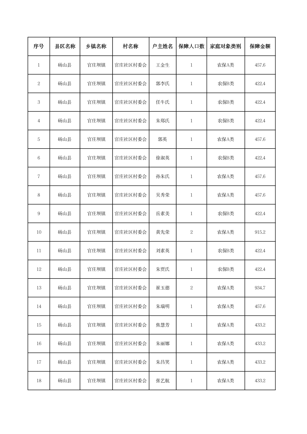 官庄坝镇2025年11月农村低保资金发放花名册