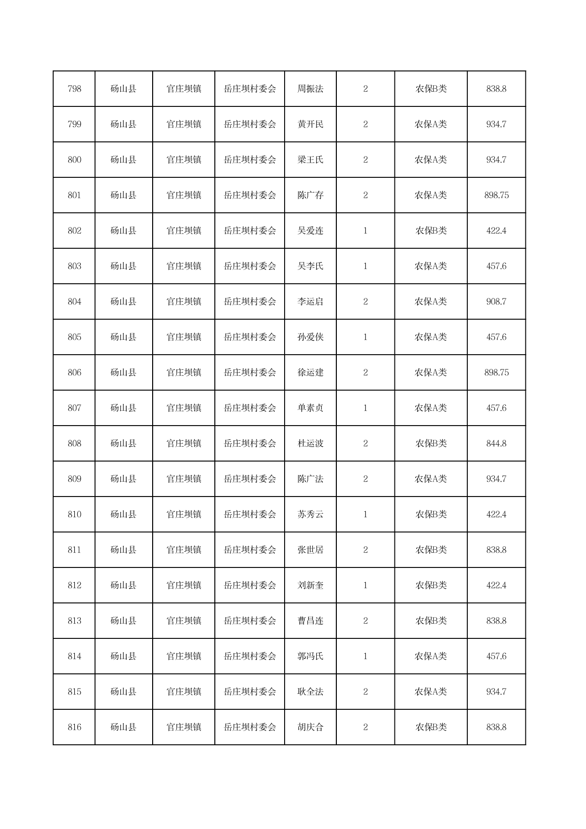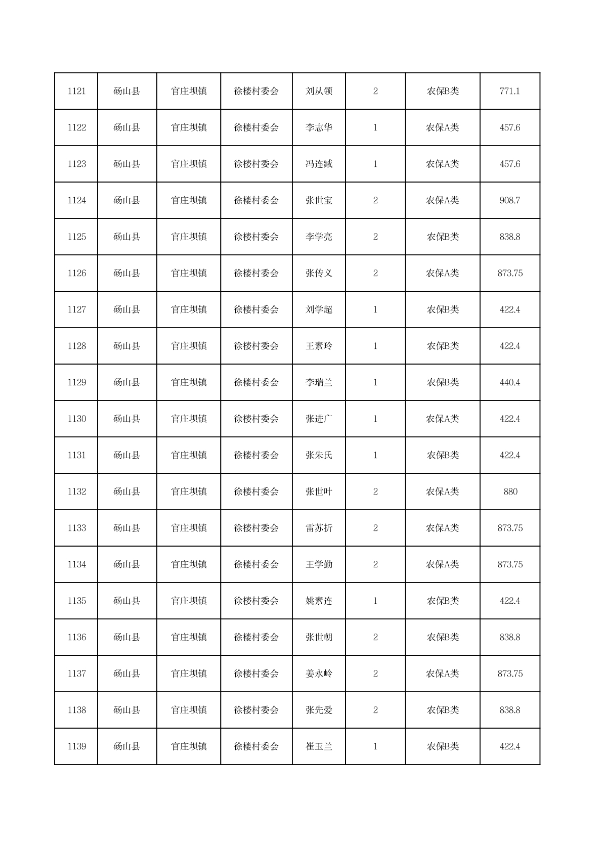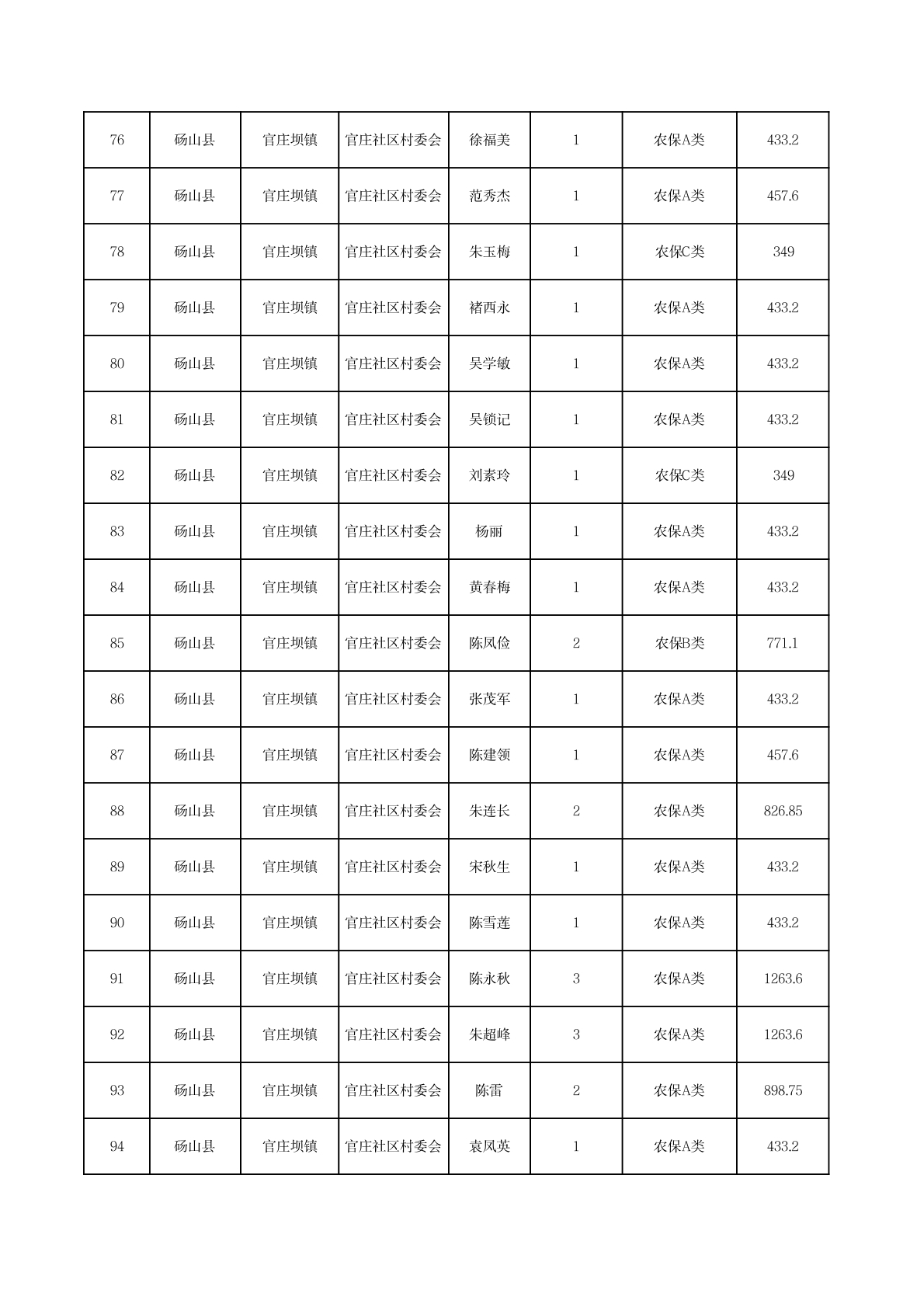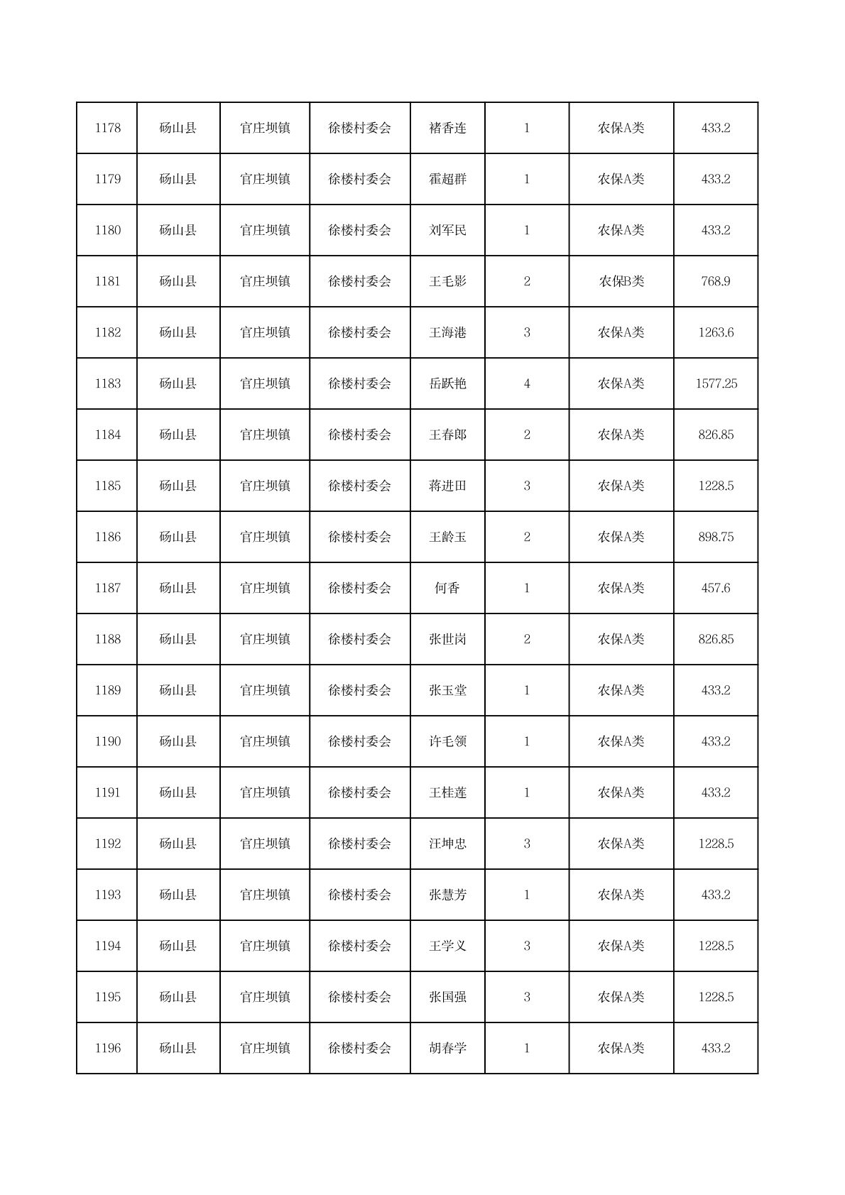官庄坝镇2025年11月农村低保资金发放花名册
