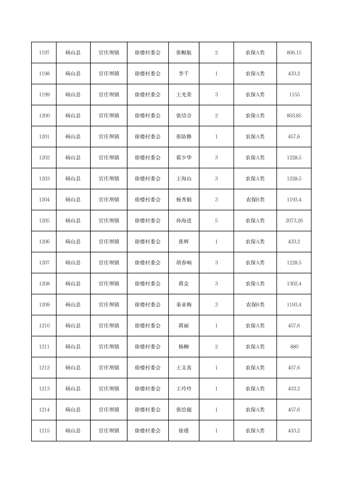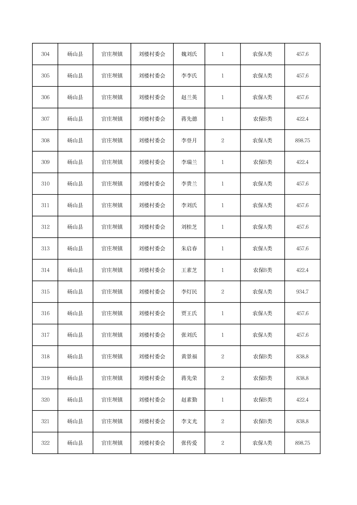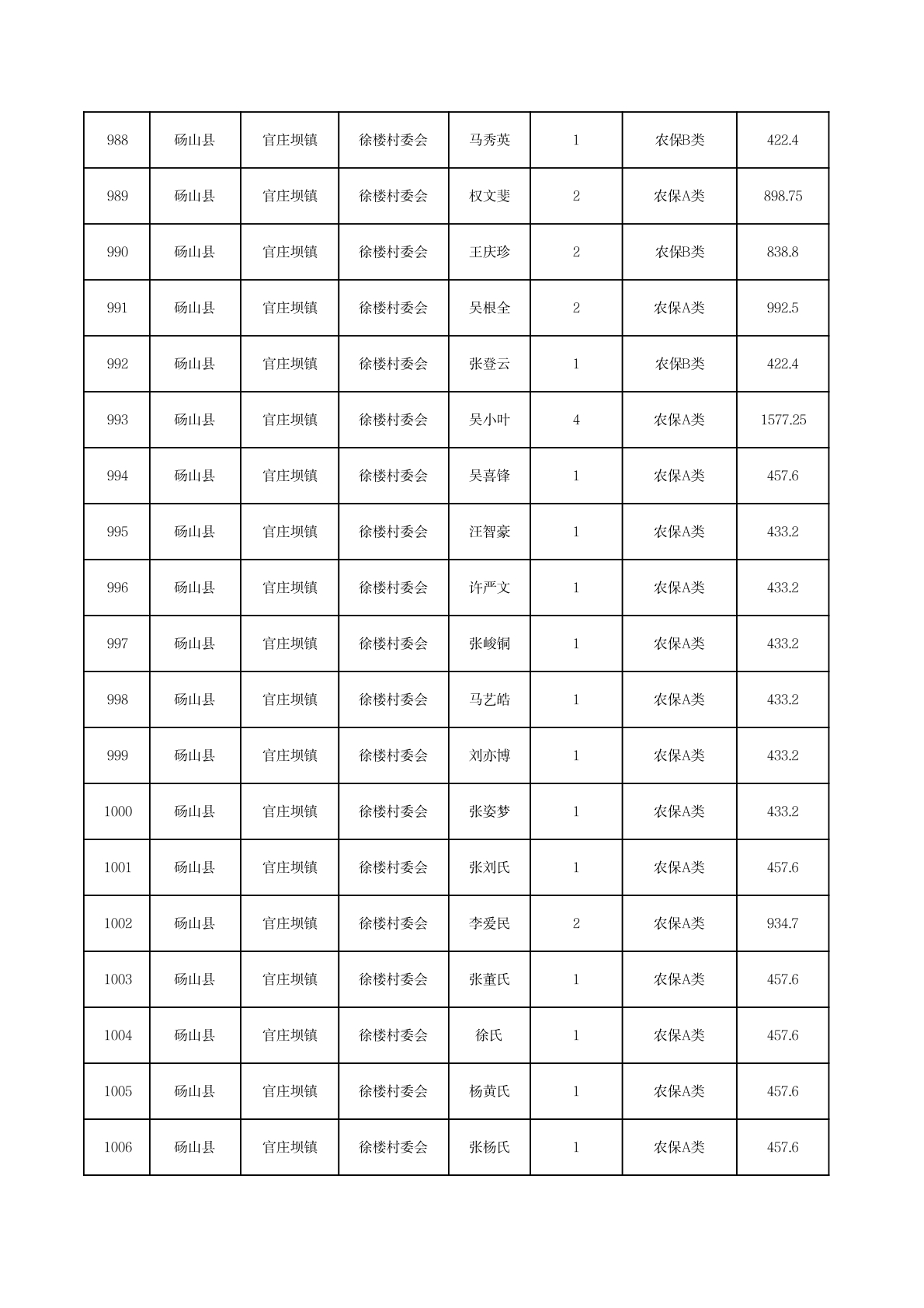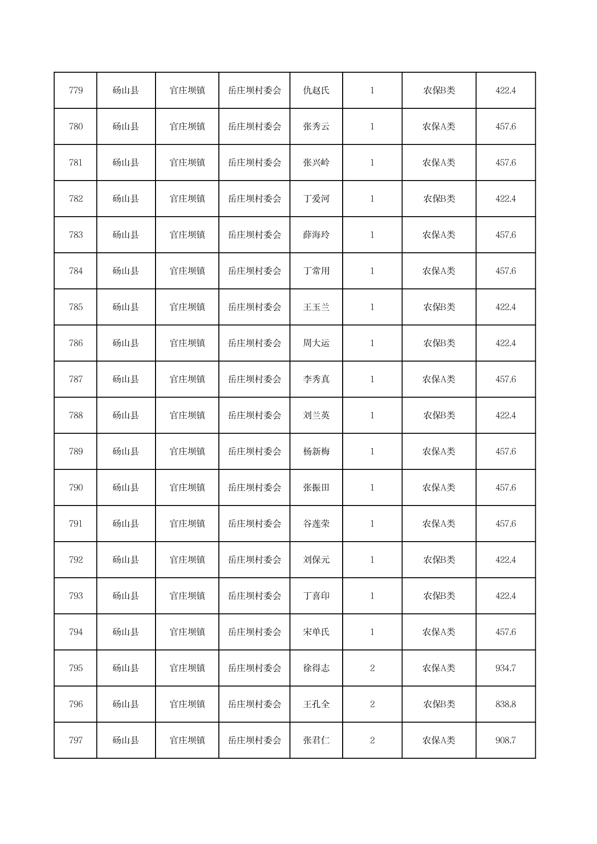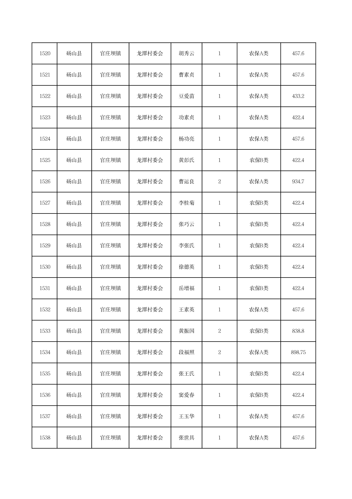 官庄坝镇2025年11月农村低保资金发放花名册