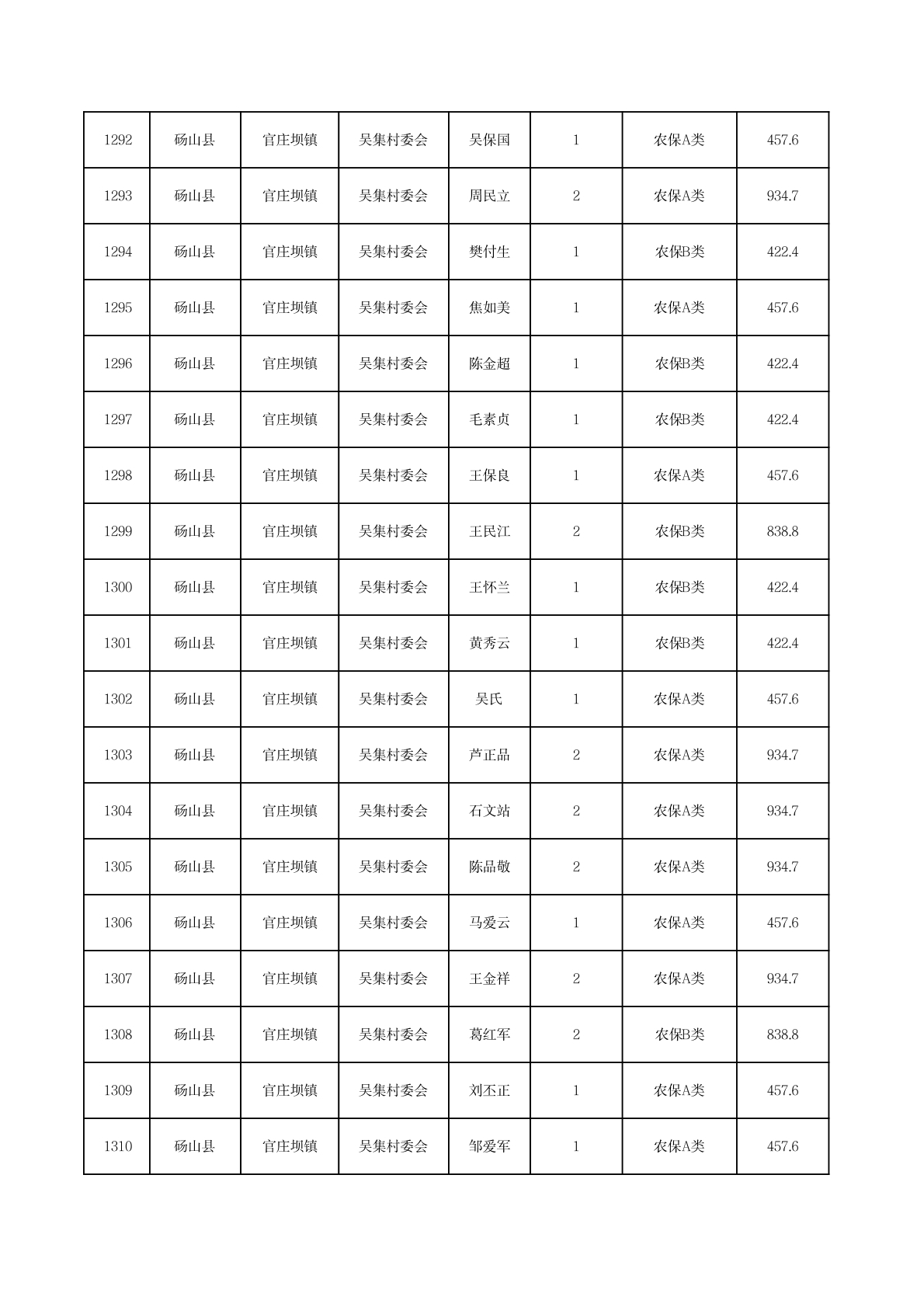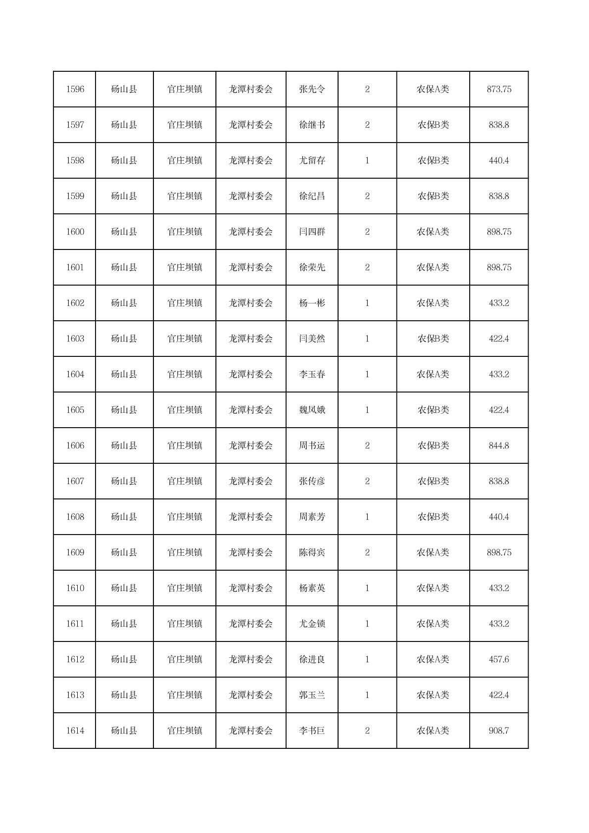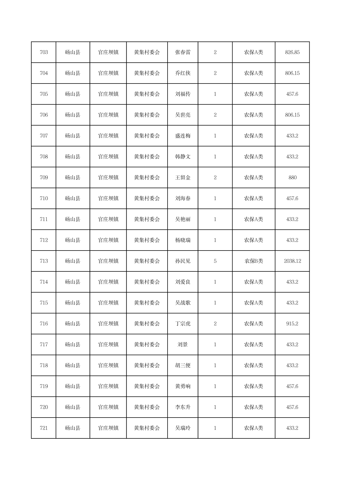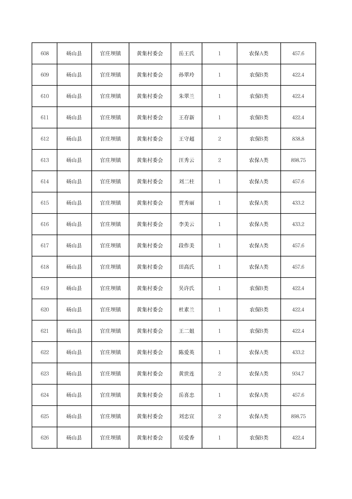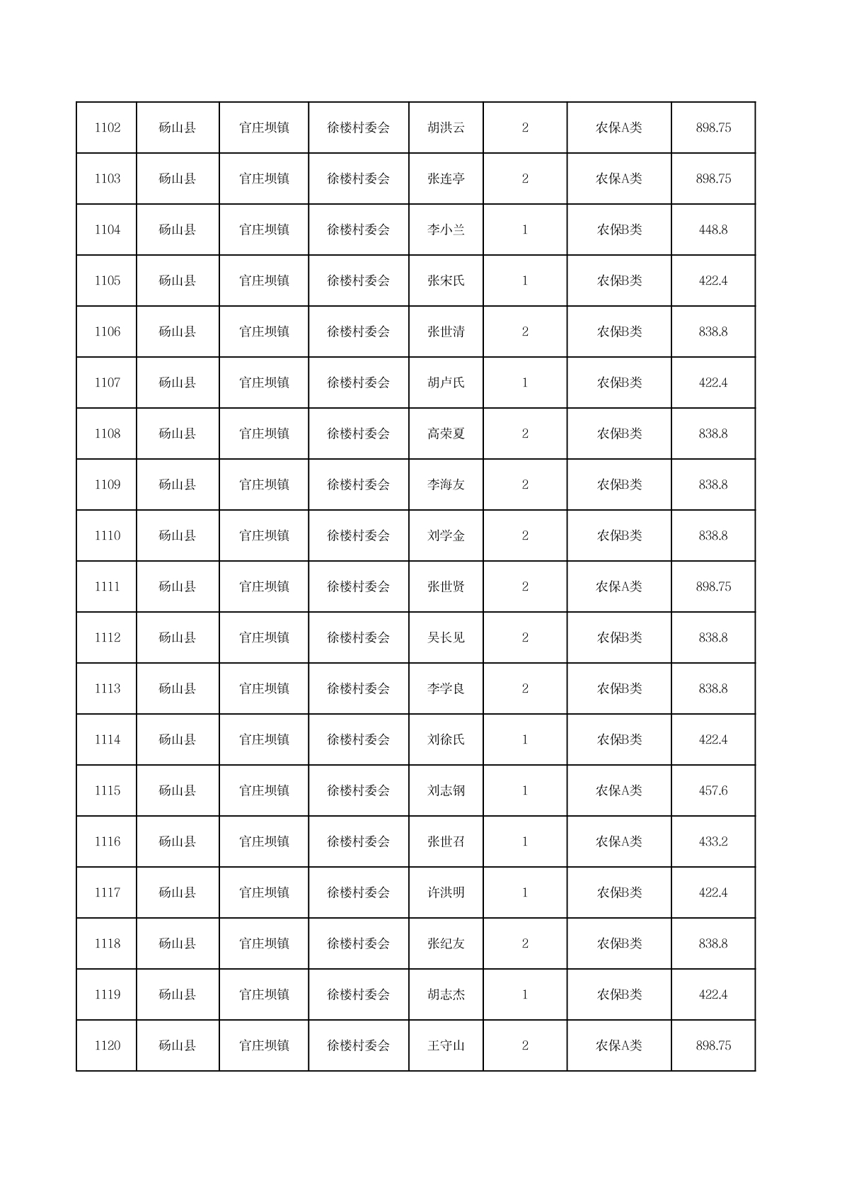 官庄坝镇2025年11月农村低保资金发放花名册