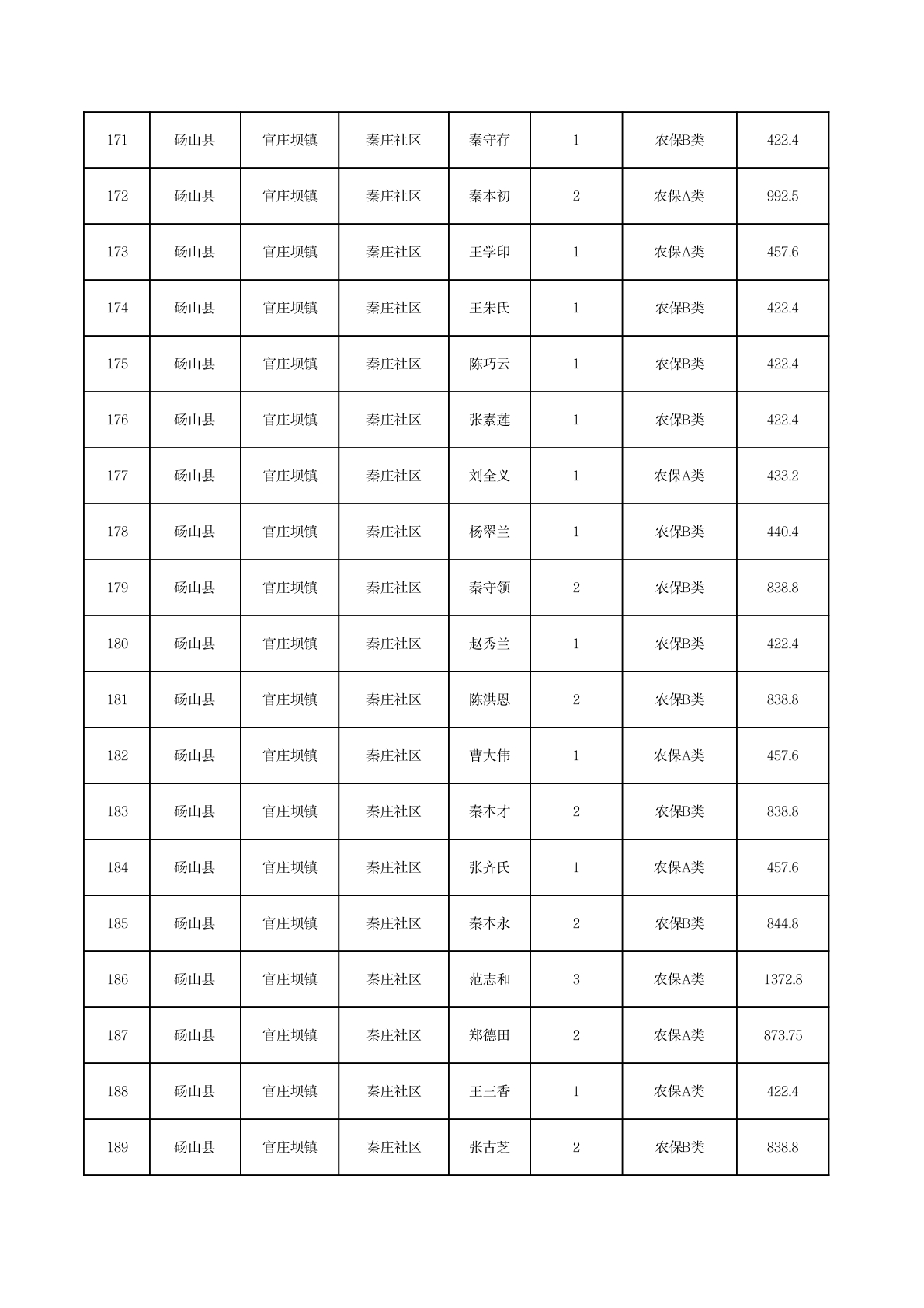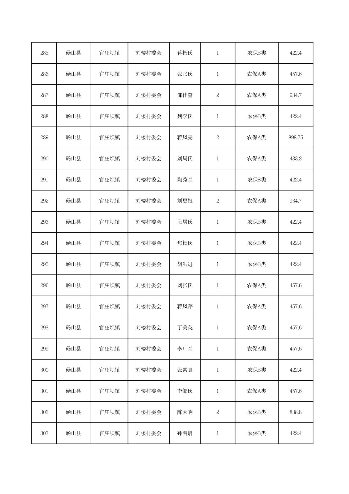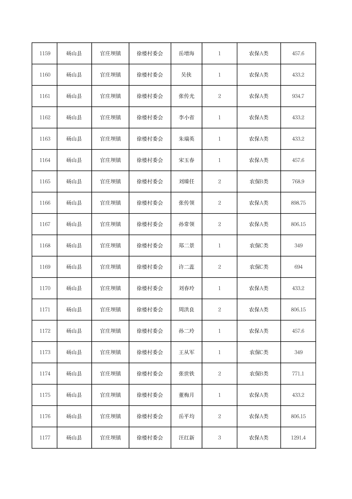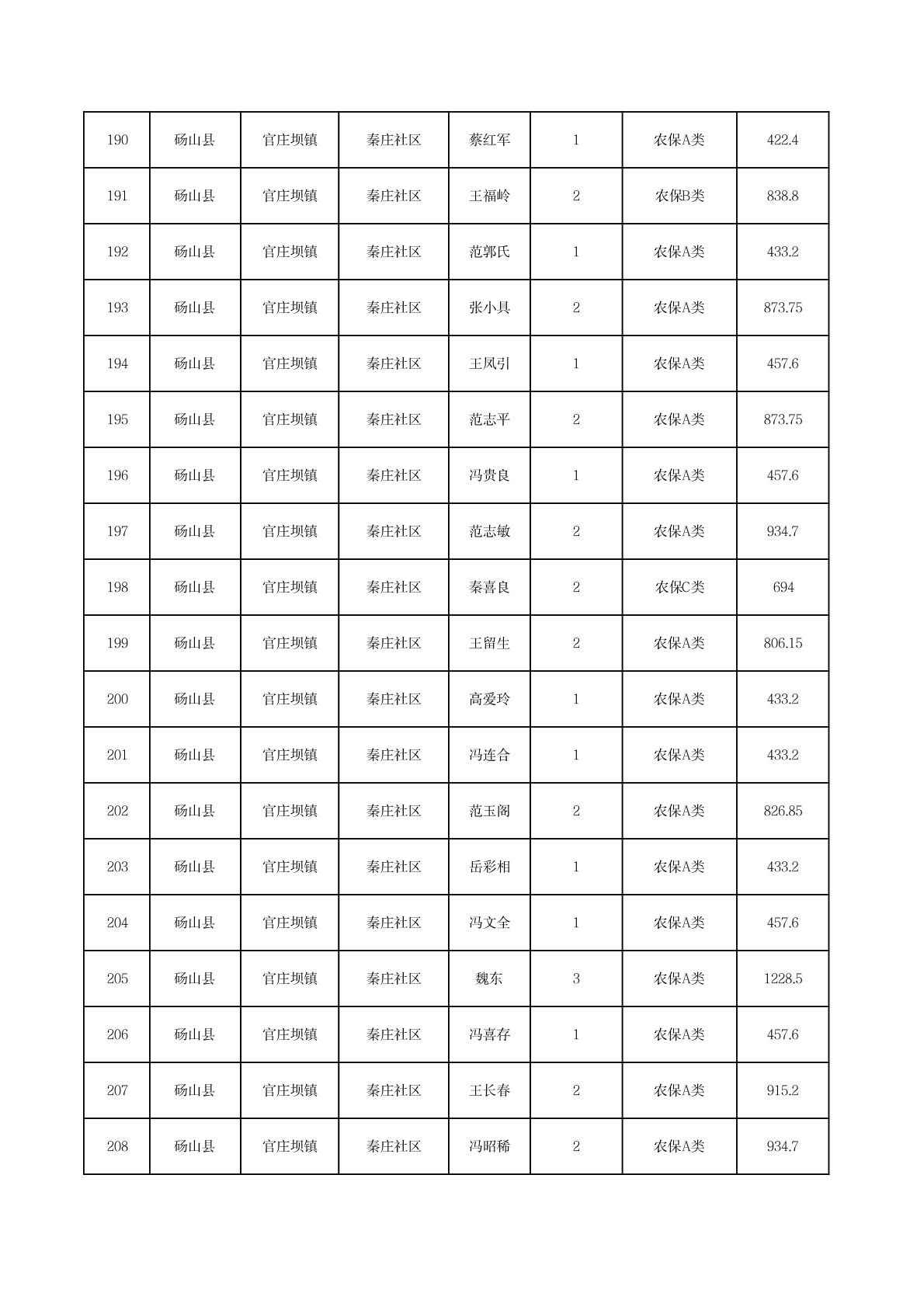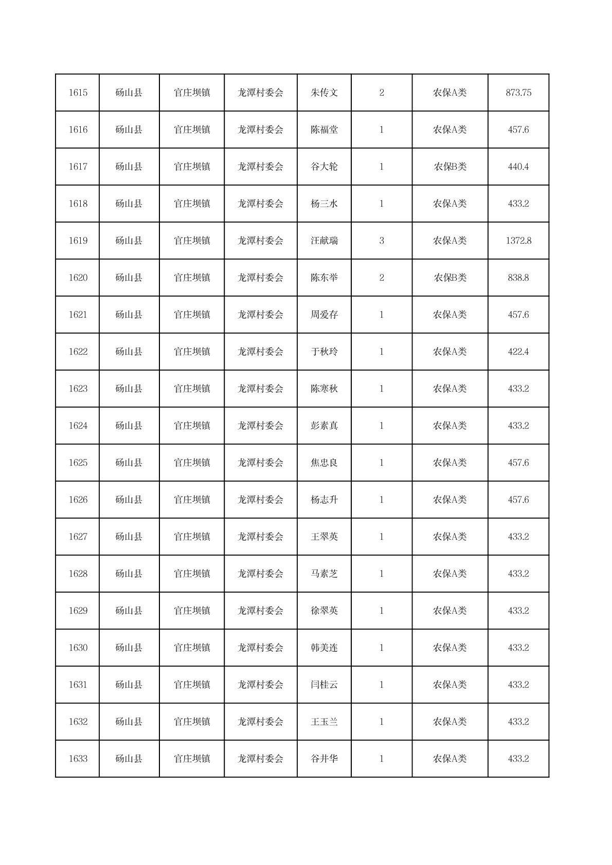 官庄坝镇2025年11月农村低保资金发放花名册