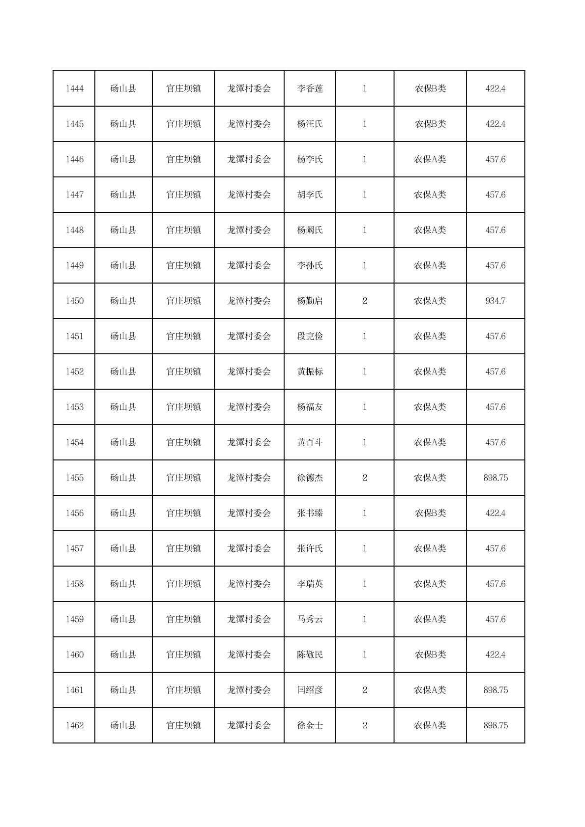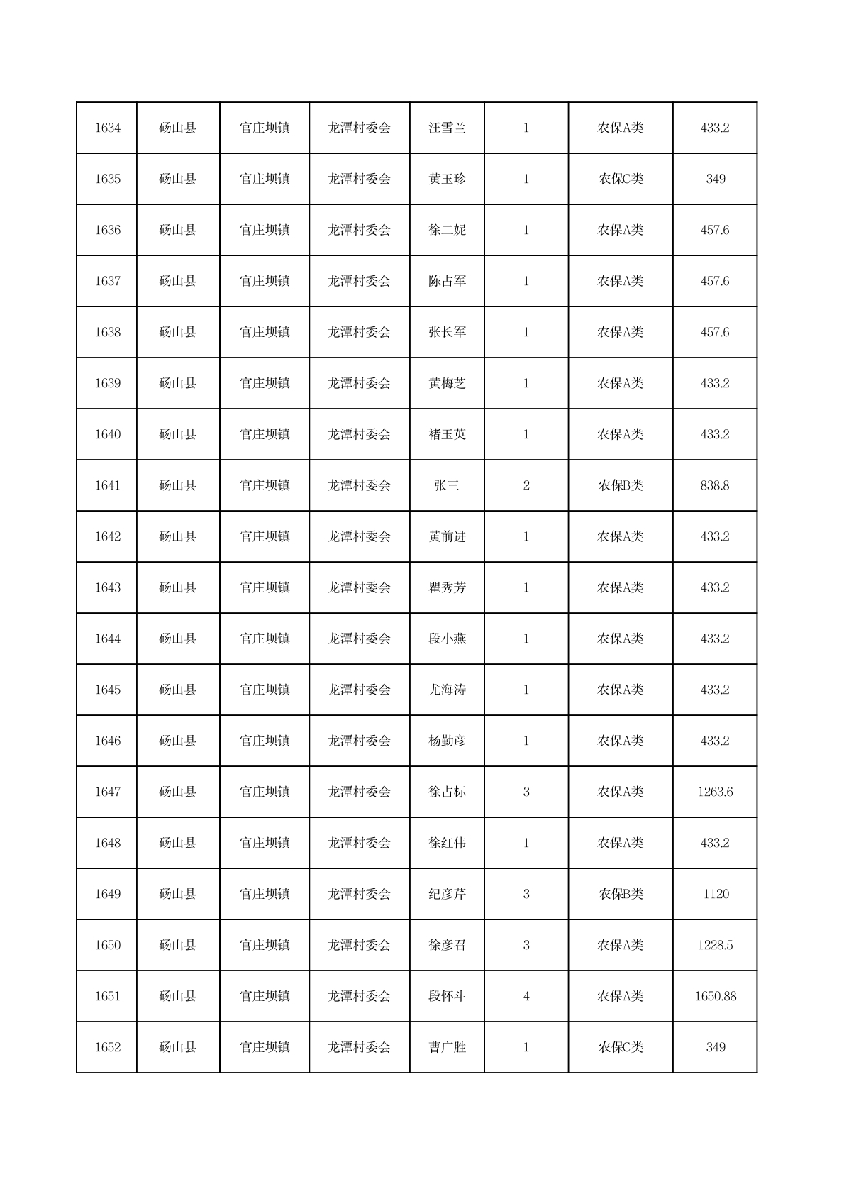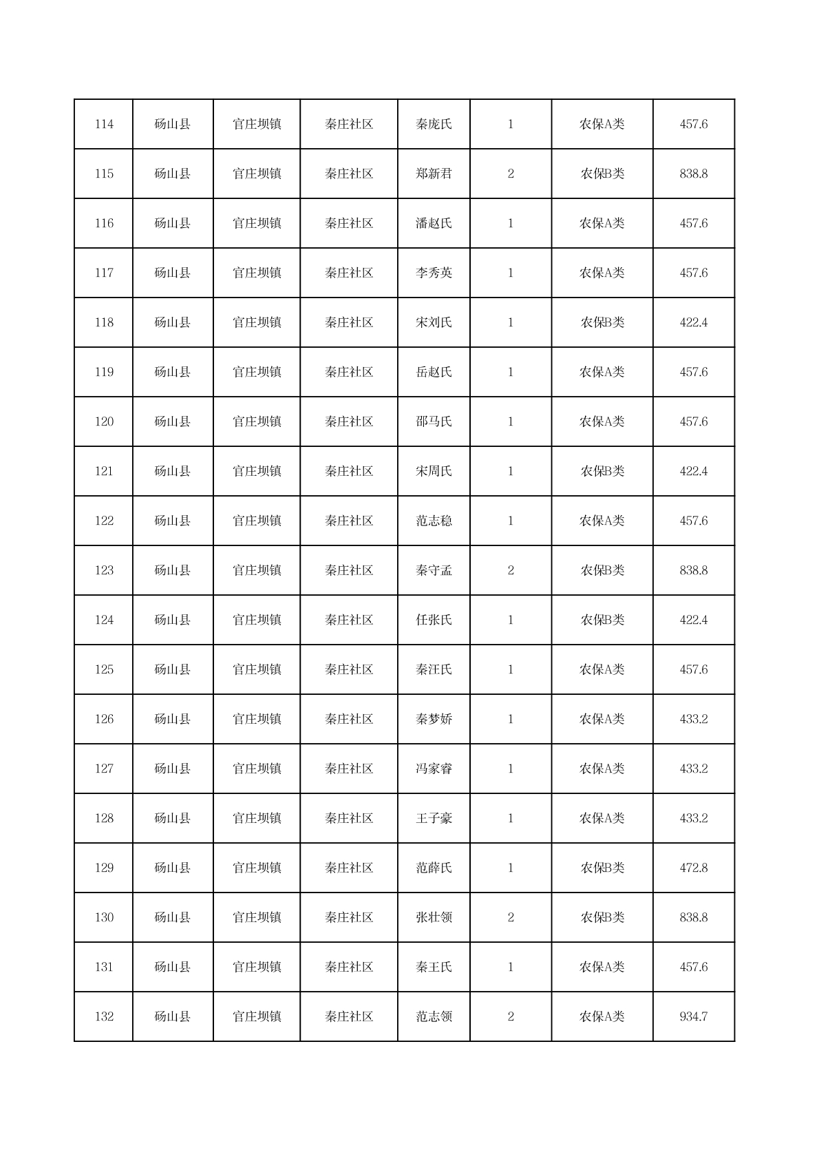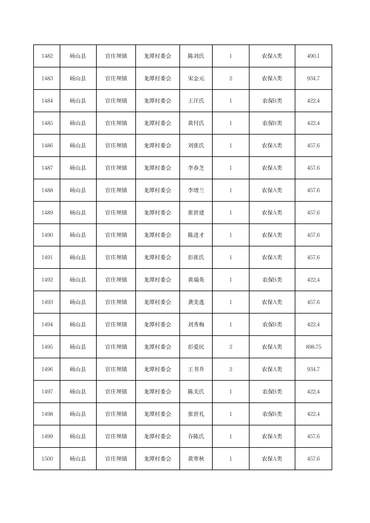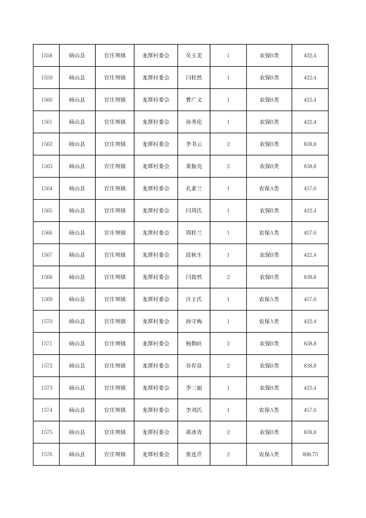 官庄坝镇2025年11月农村低保资金发放花名册