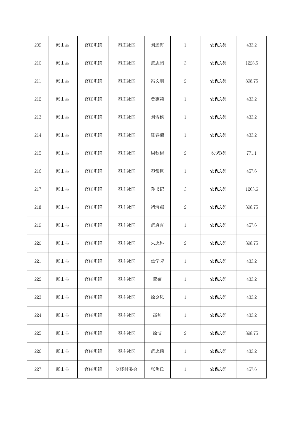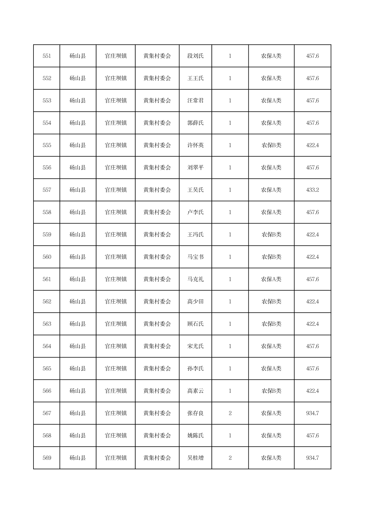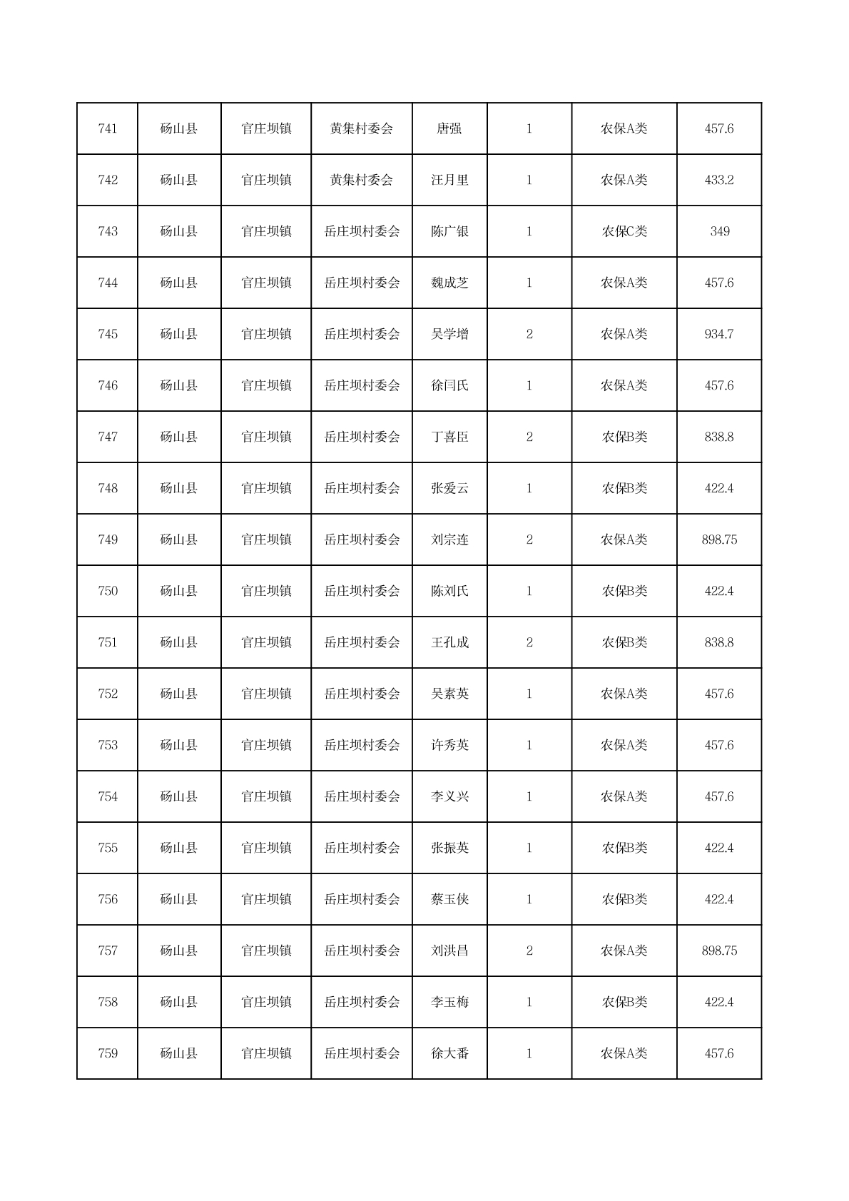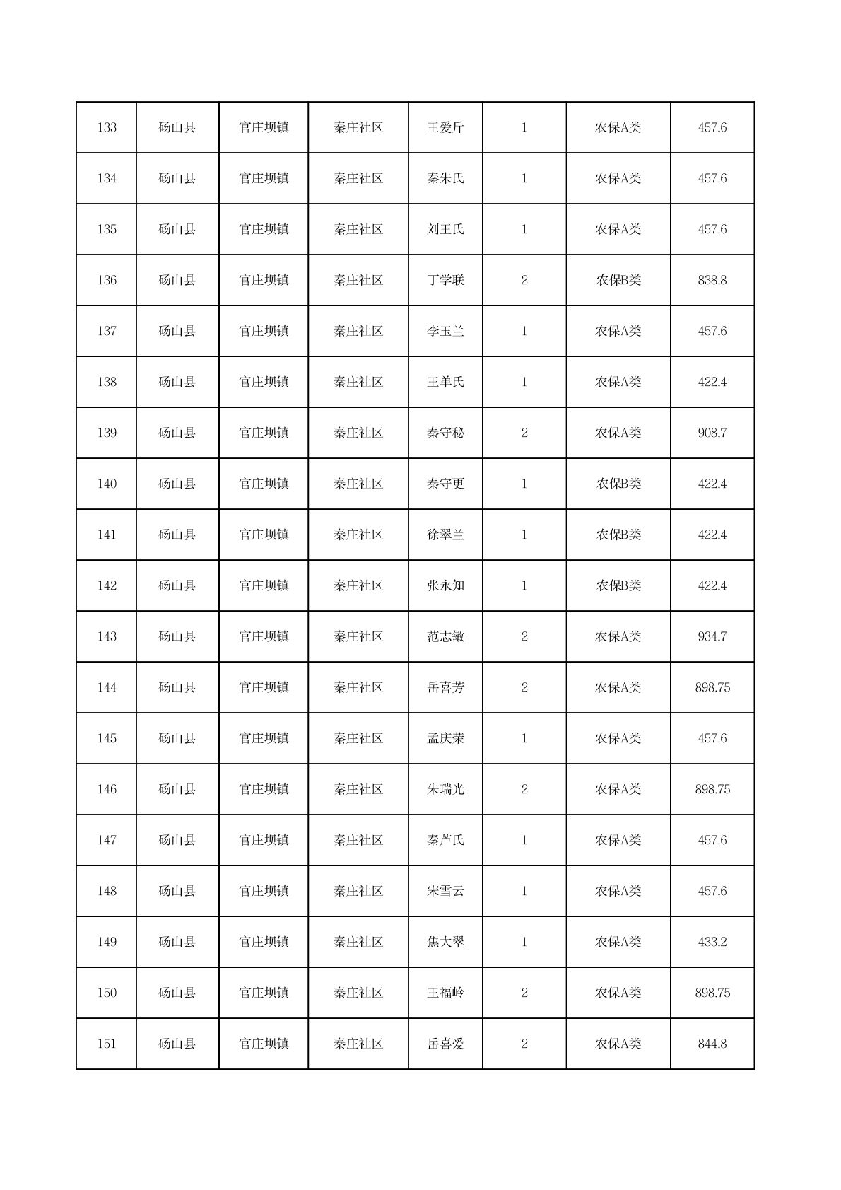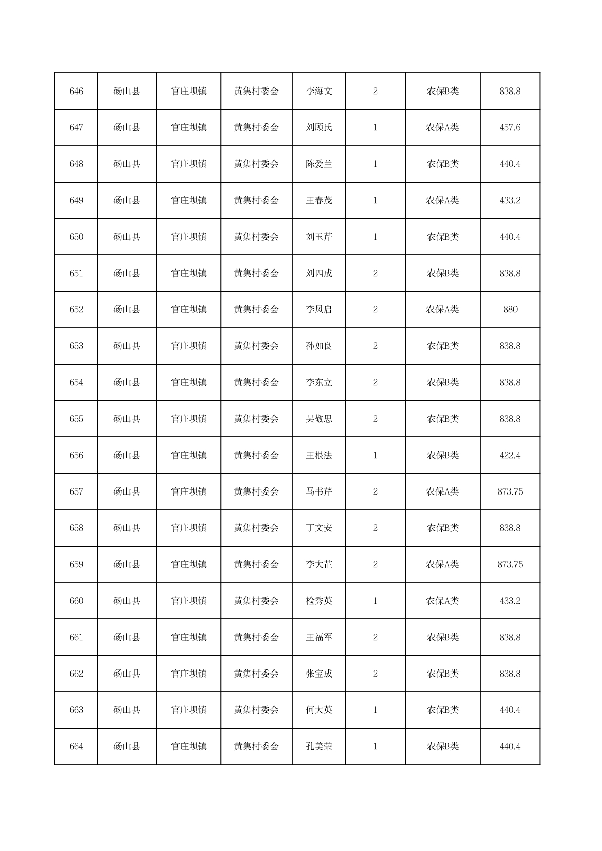 官庄坝镇2025年11月农村低保资金发放花名册