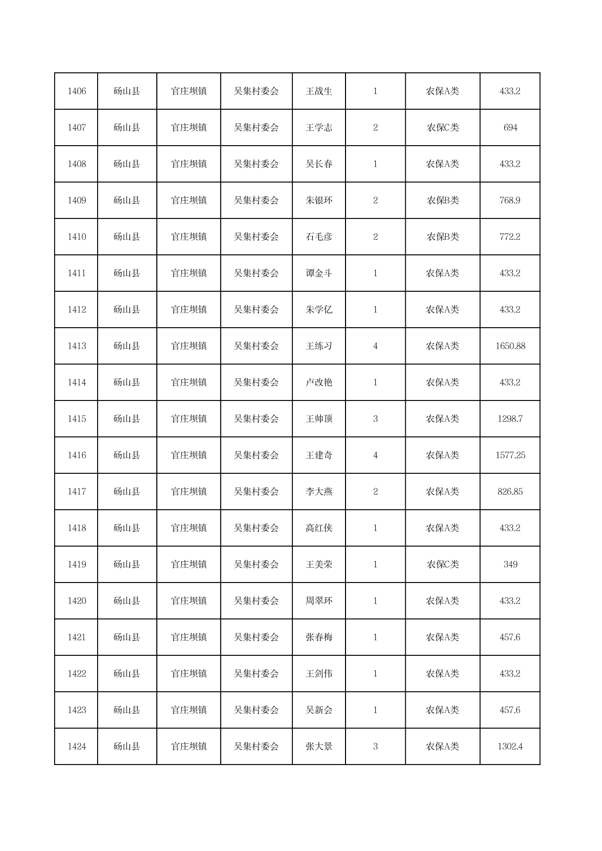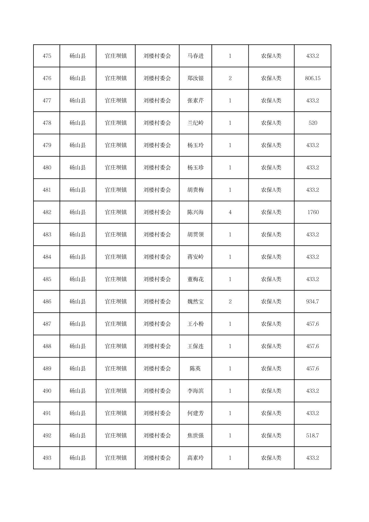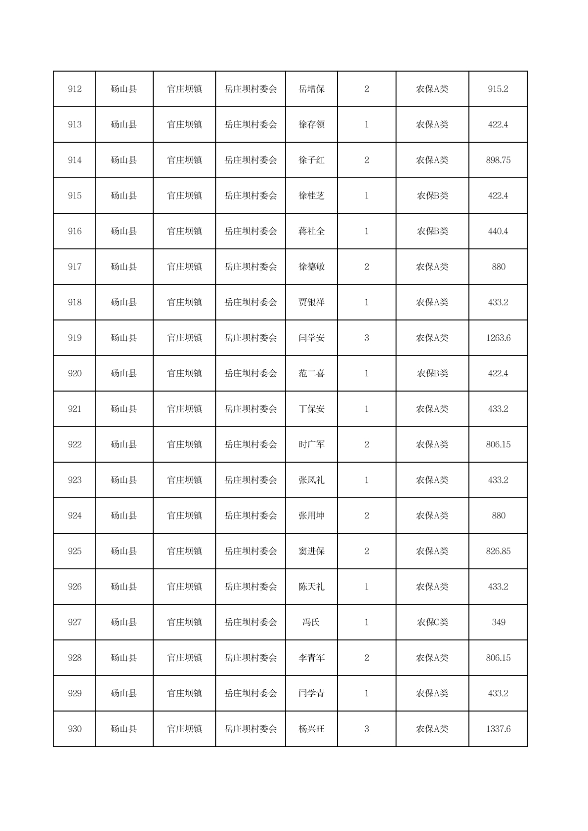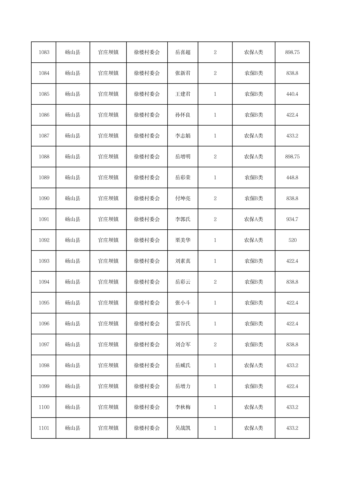 官庄坝镇2025年11月农村低保资金发放花名册