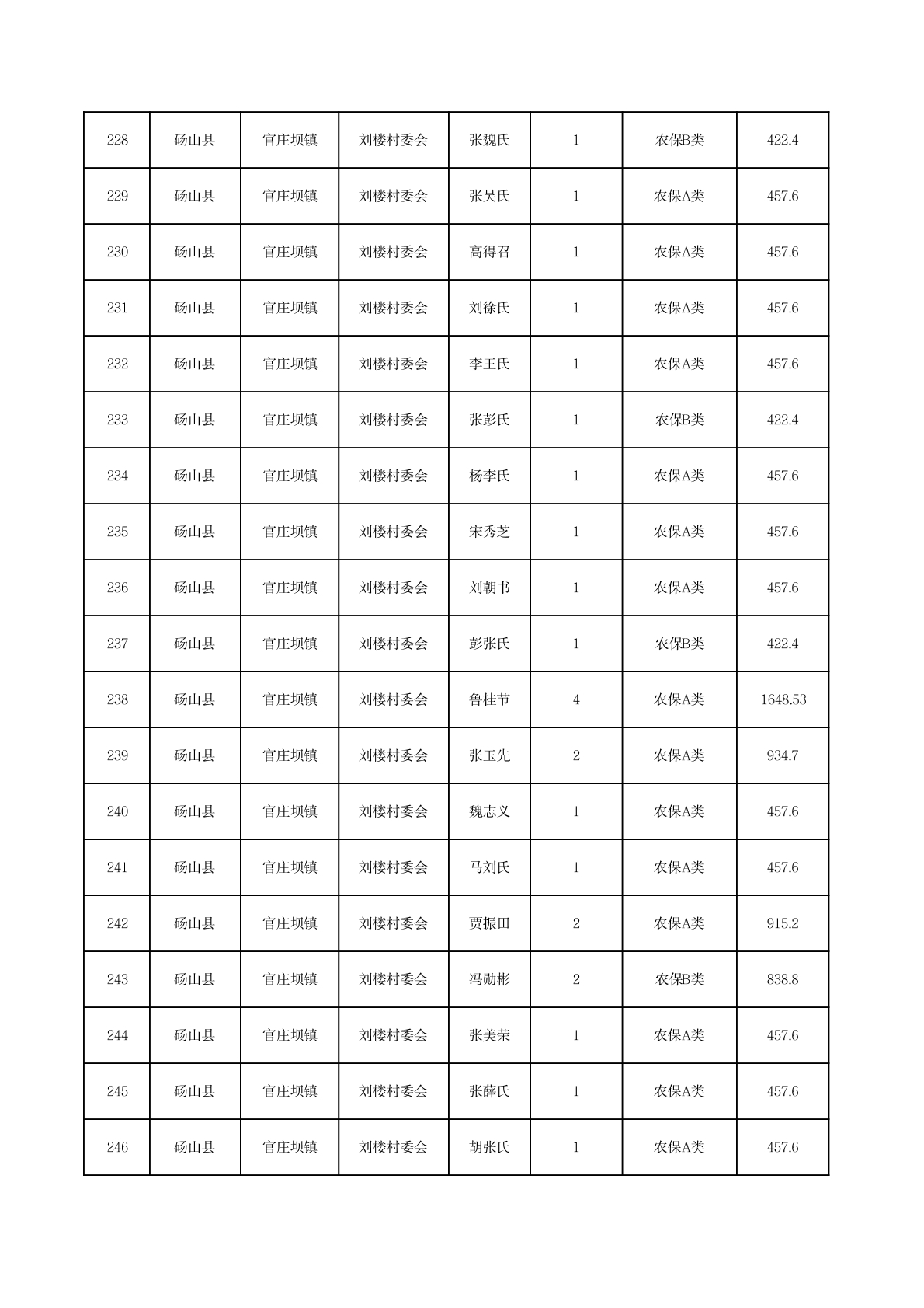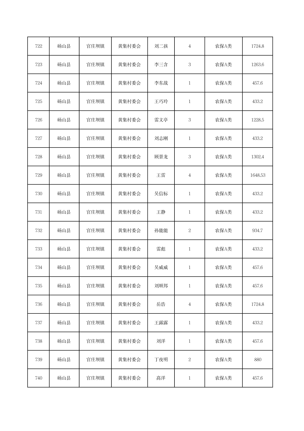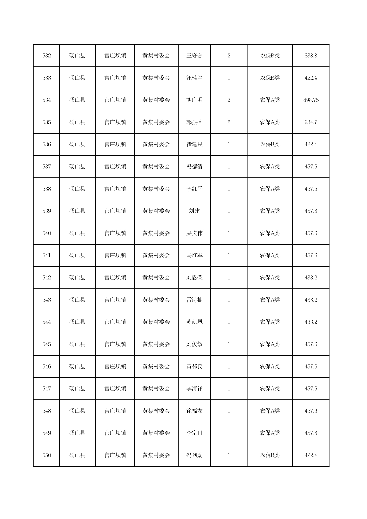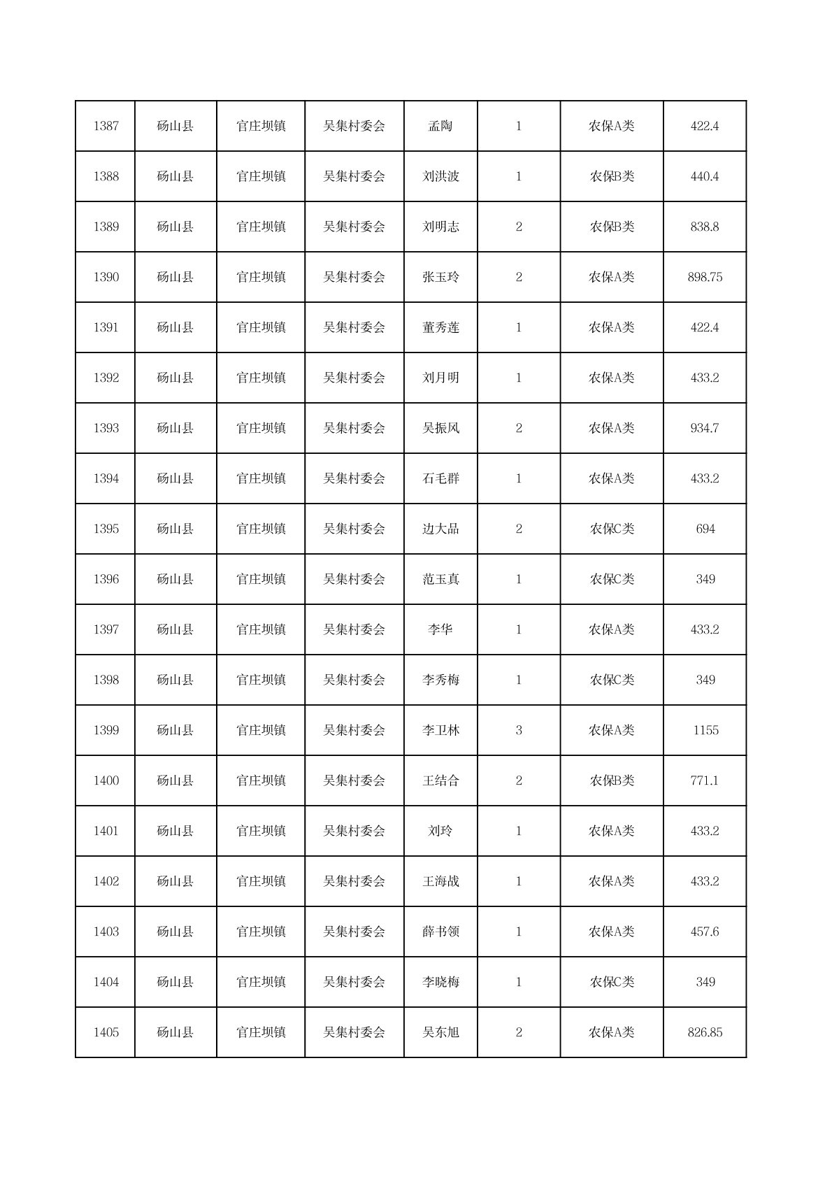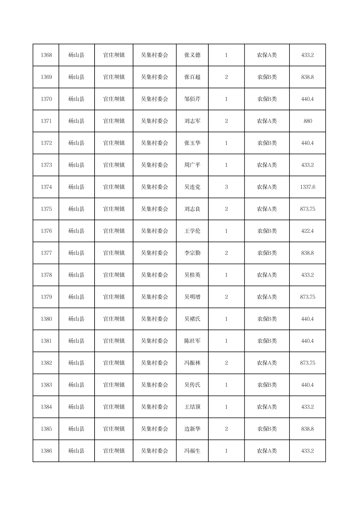 官庄坝镇2025年11月农村低保资金发放花名册