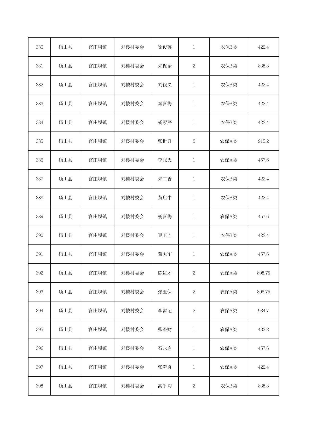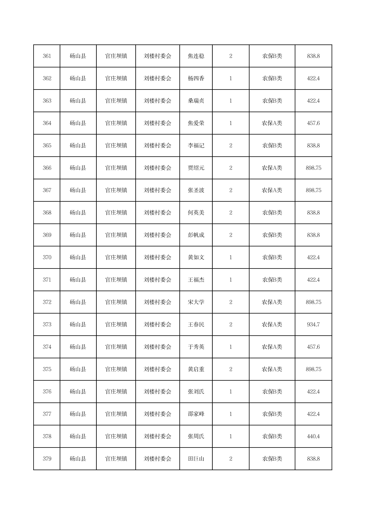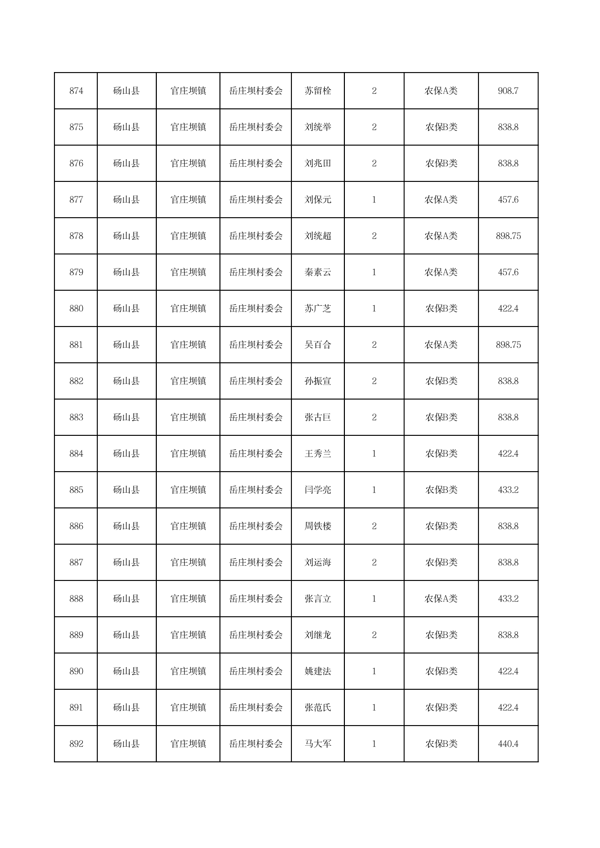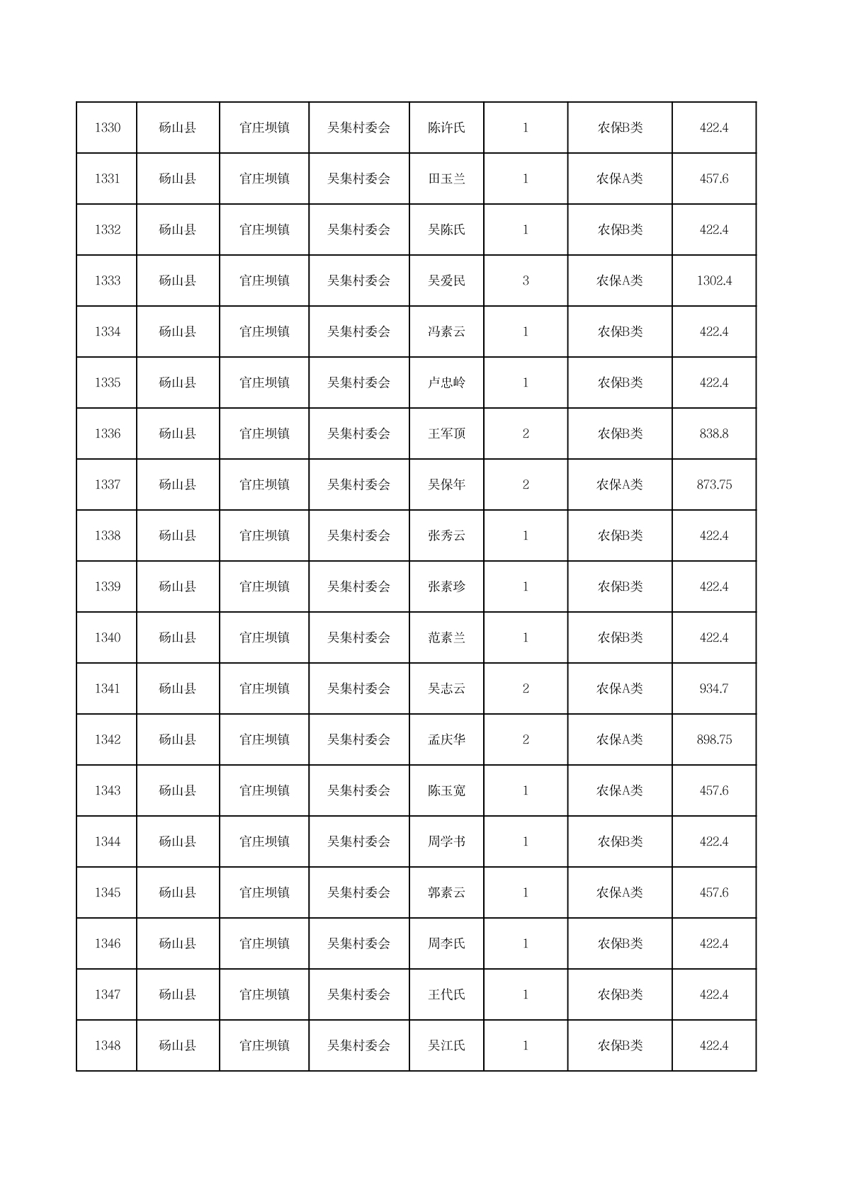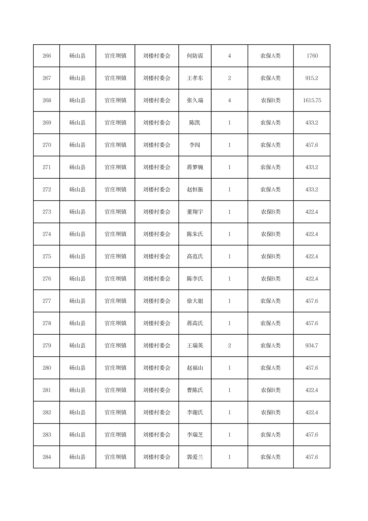 官庄坝镇2025年11月农村低保资金发放花名册