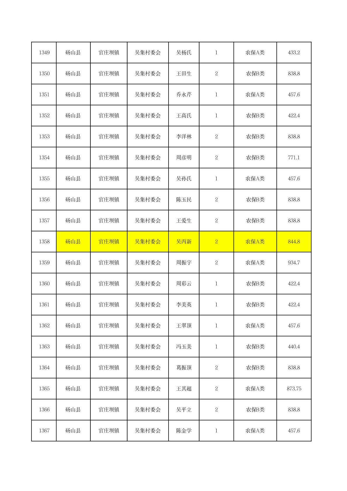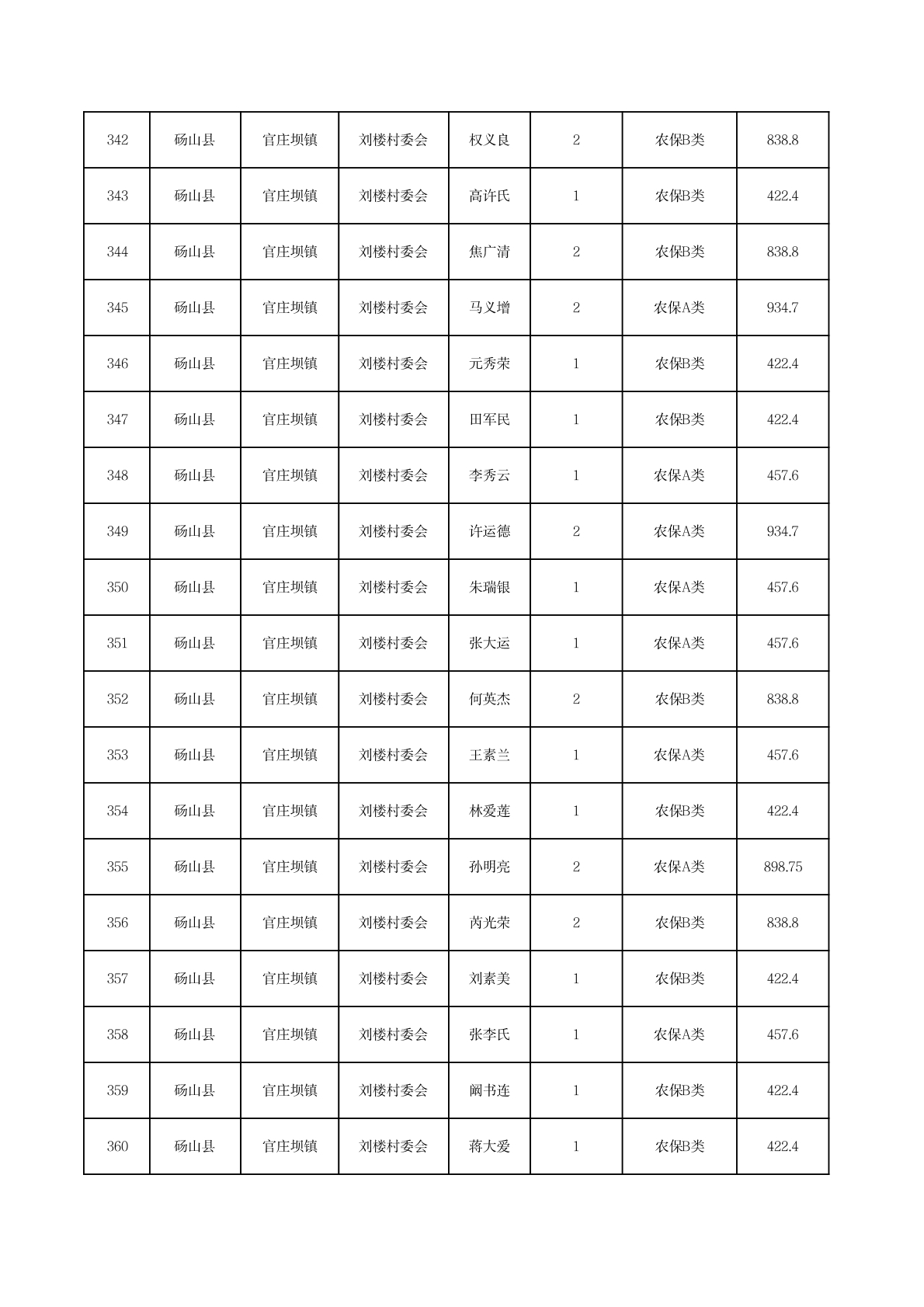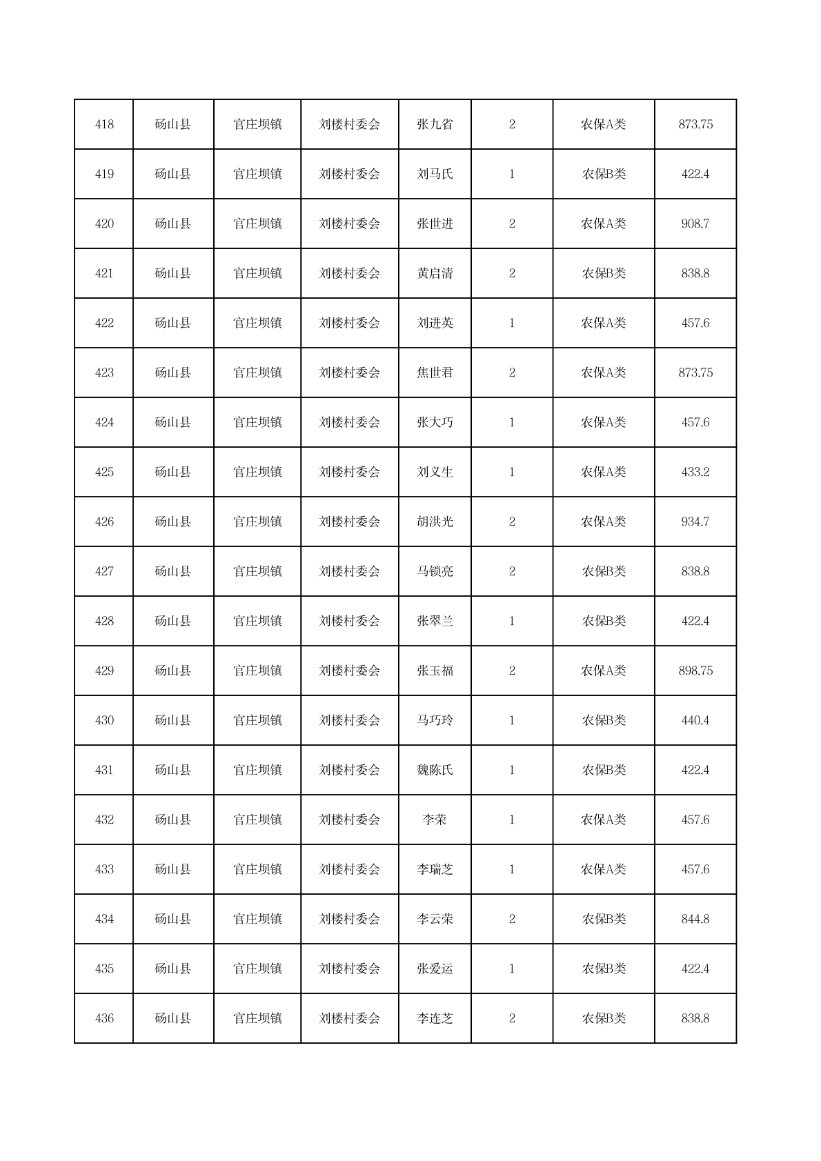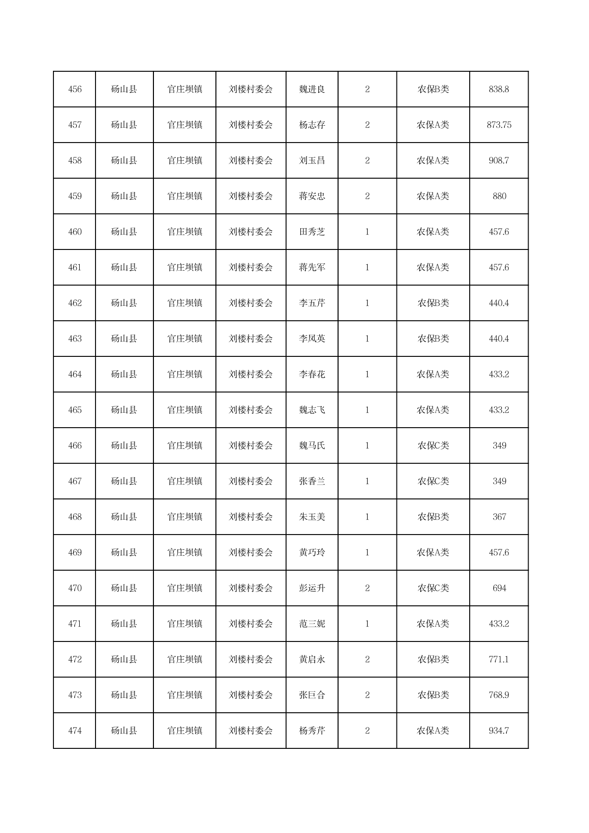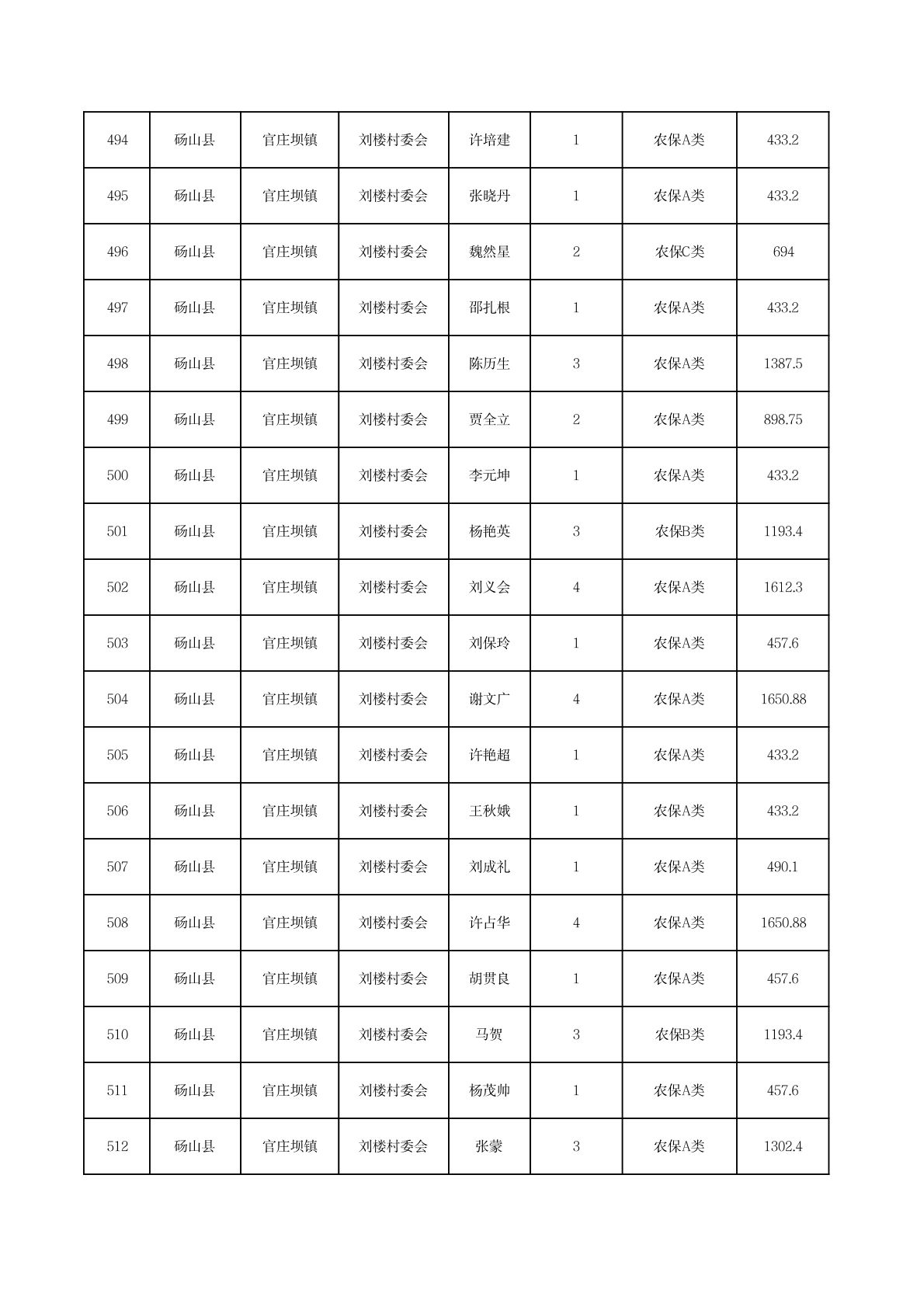 官庄坝镇2025年11月农村低保资金发放花名册