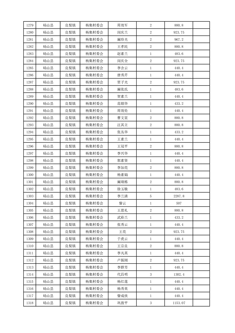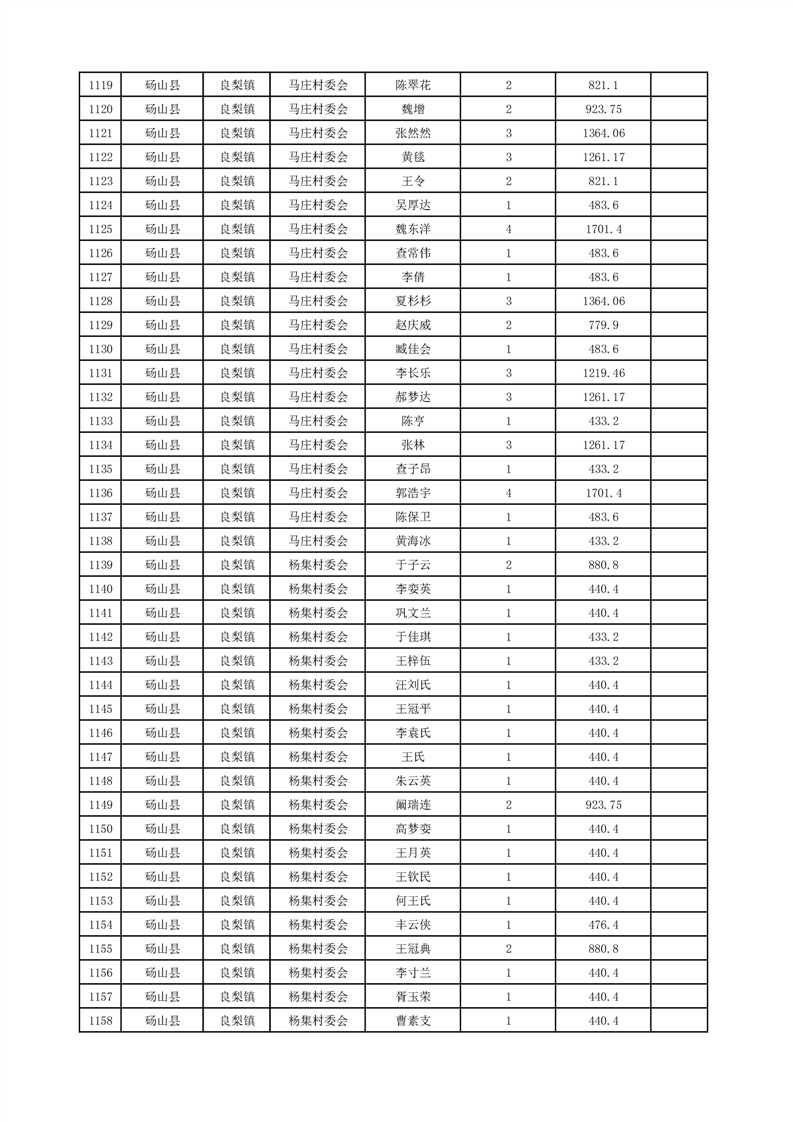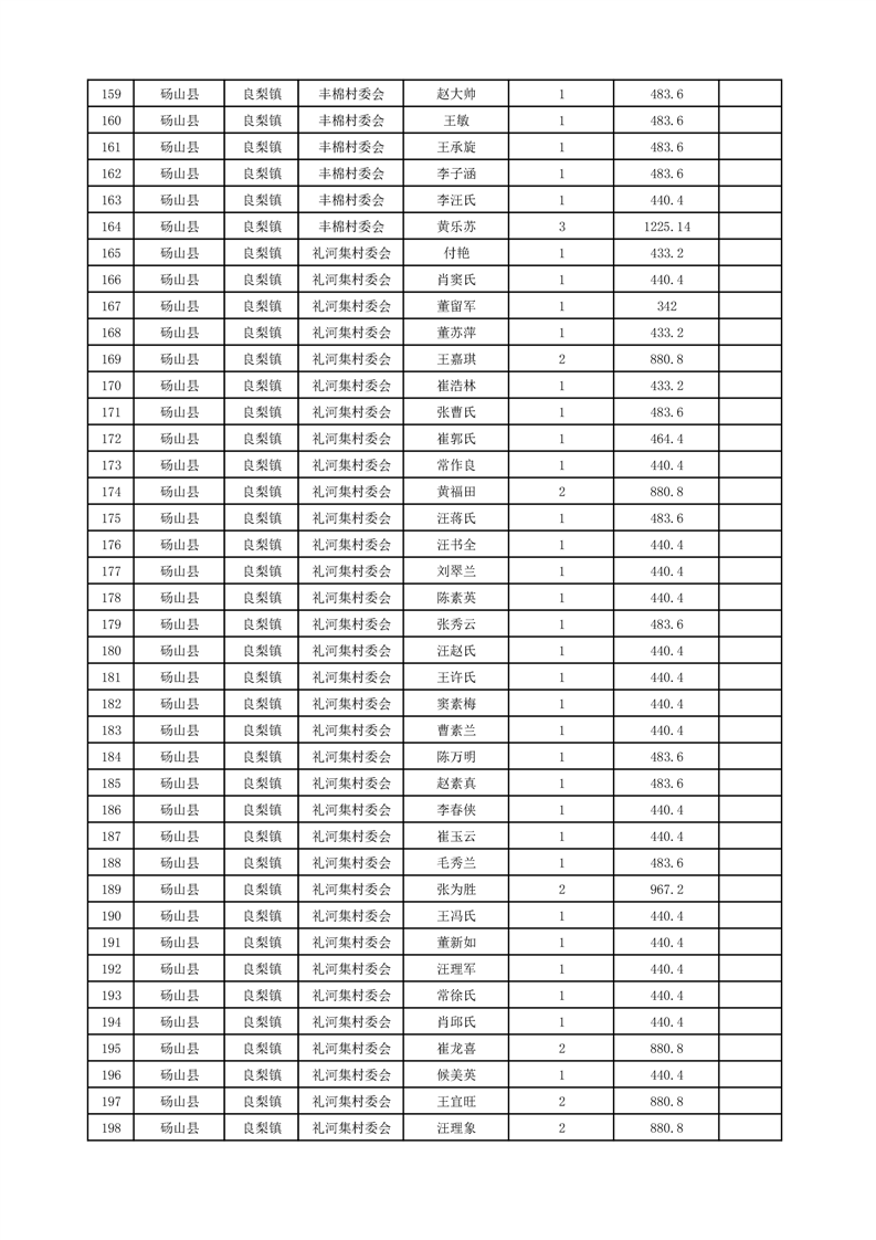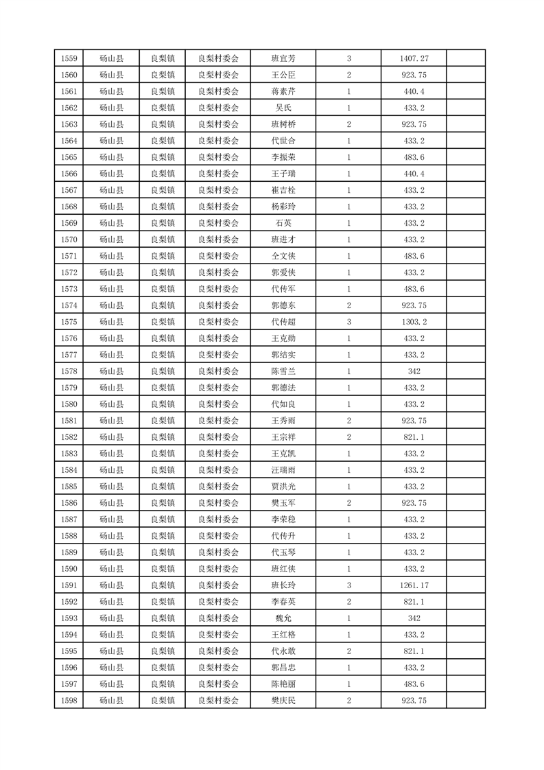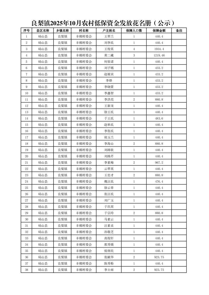 良梨镇2025年10月农村低保资金发放花名册(公示)