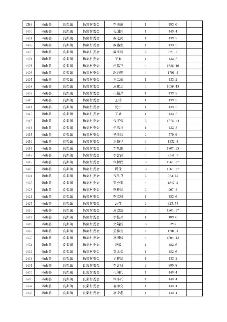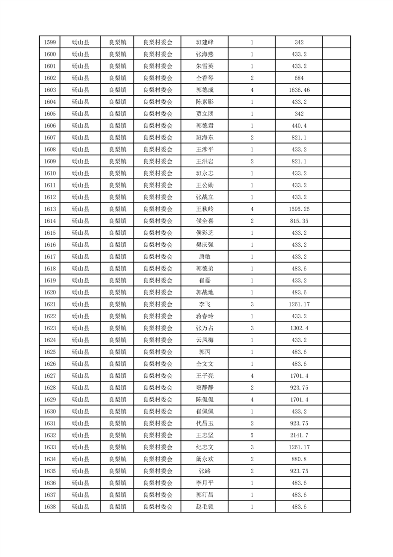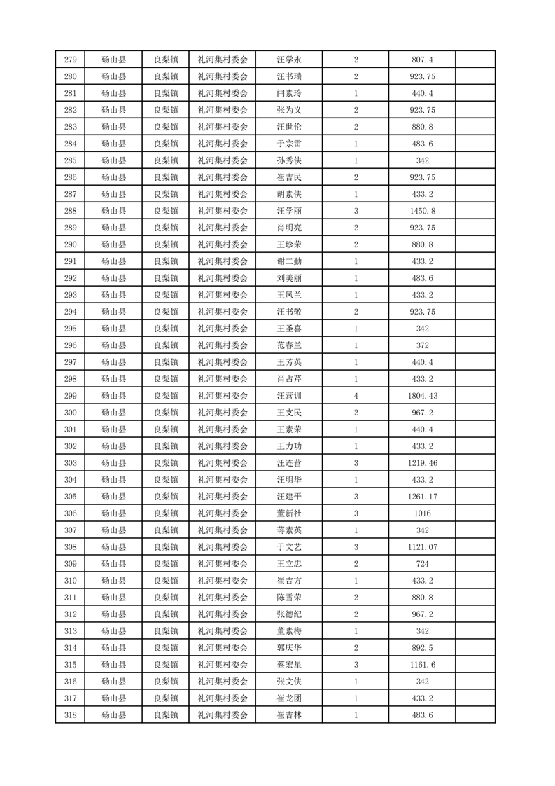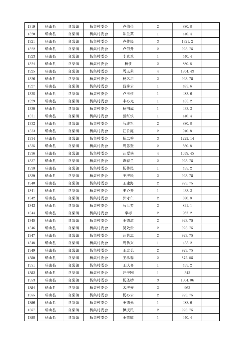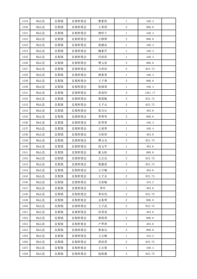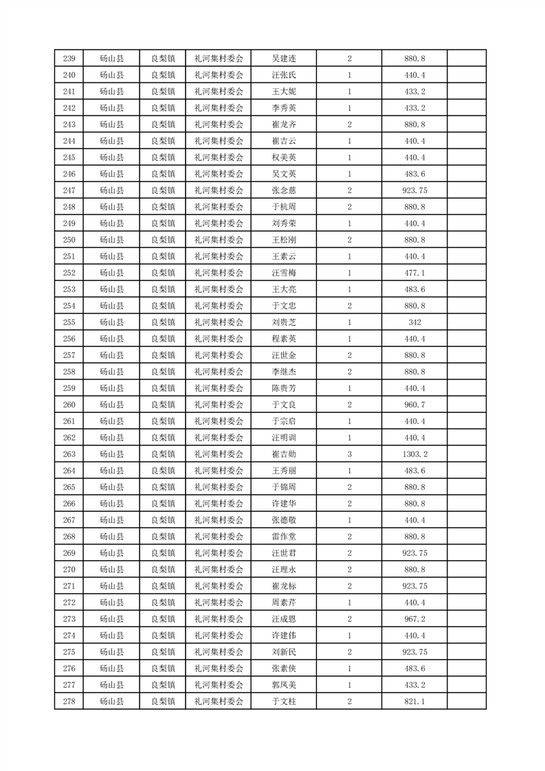 良梨镇2025年10月农村低保资金发放花名册(公示)
