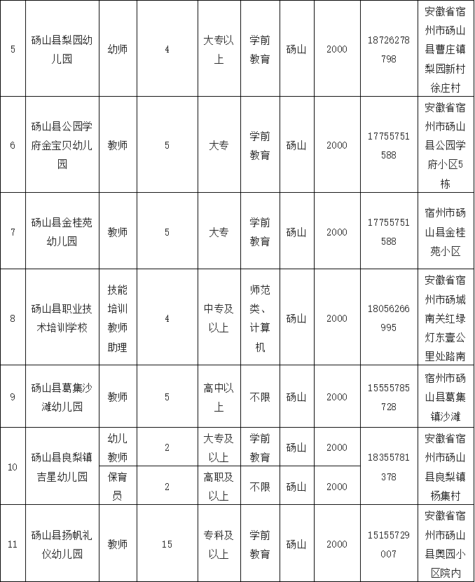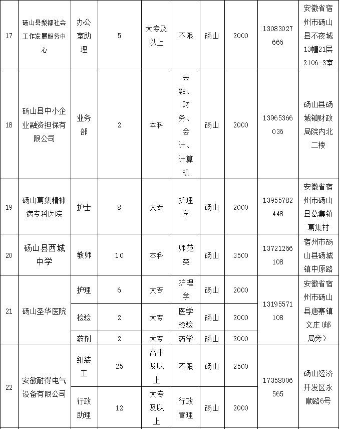 附件:砀山县2025年度就业见习基地及见习岗位信息表(第一批)