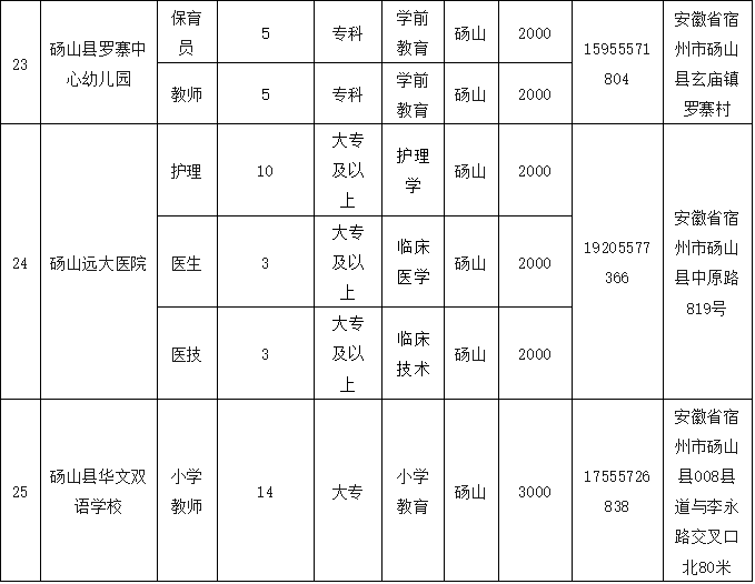 砀山县2025年度就业见习基地及见习岗位信息表(第一批)