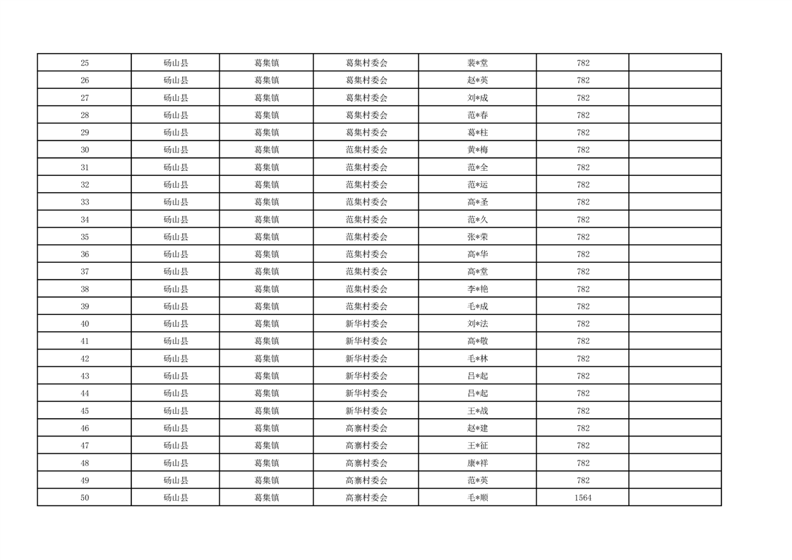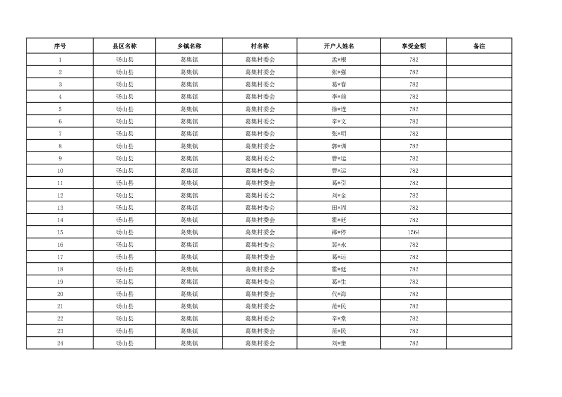 葛集镇2025年10月分散供养特困人员资金发放花名册
