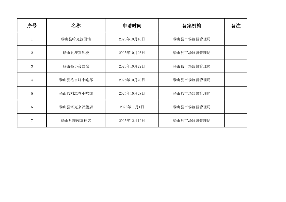 砀山县葛集镇2025年第四季度小餐饮备案信息
