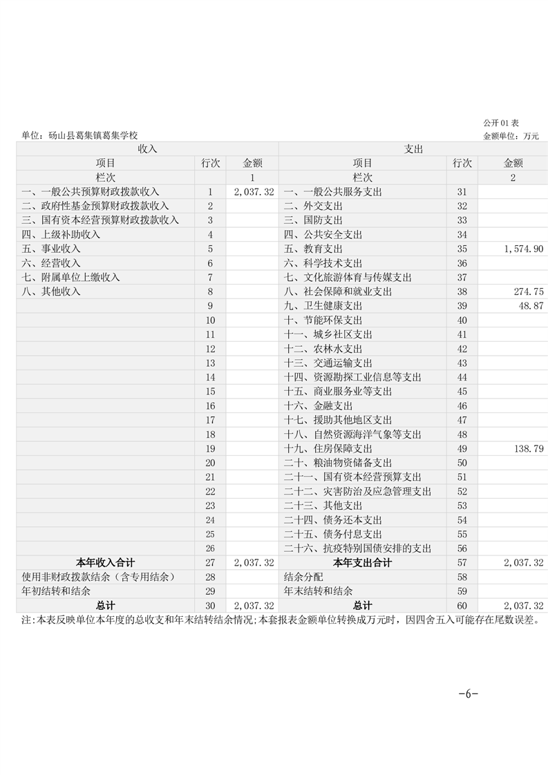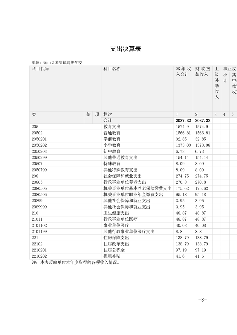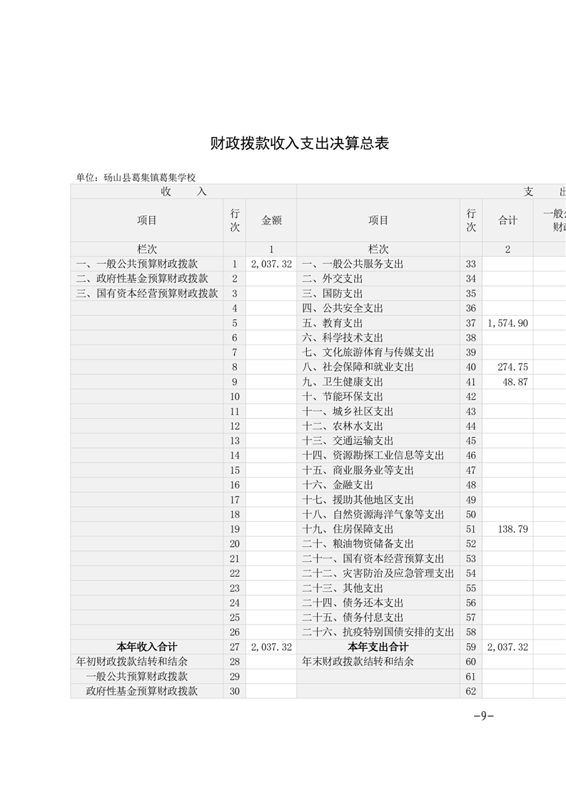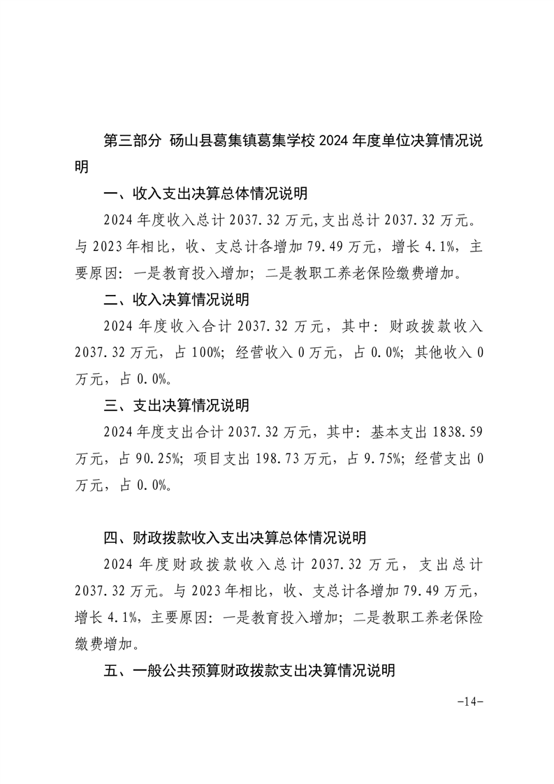 【经费决算】砀山县葛集镇葛集学校2024年单位决算