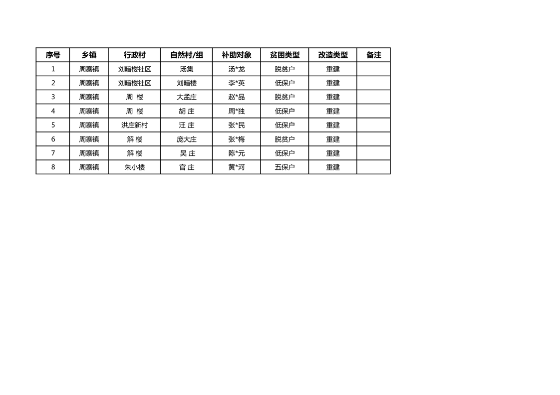 周寨镇2025年第二批危房改造补助资金发放花名册