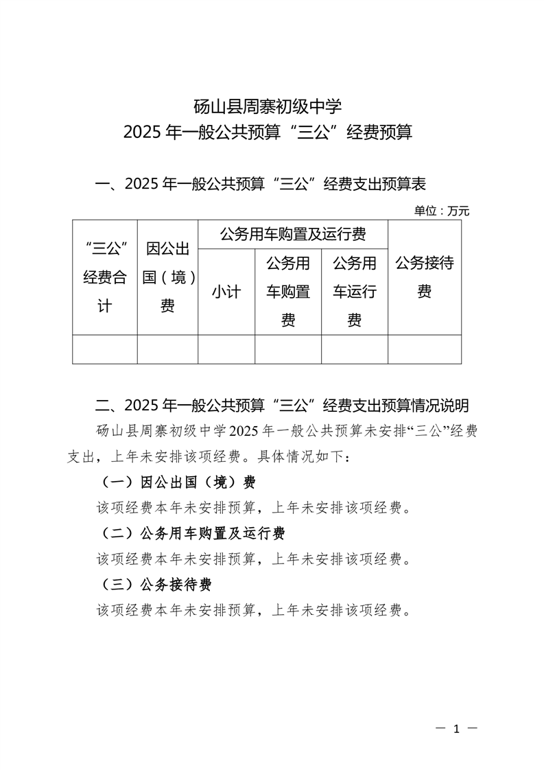 砀山县周寨初级中学2025年一般公共预算“三公”经费预算