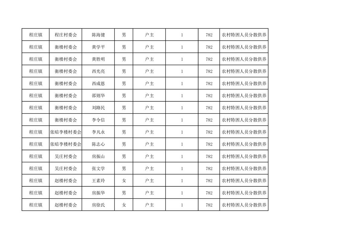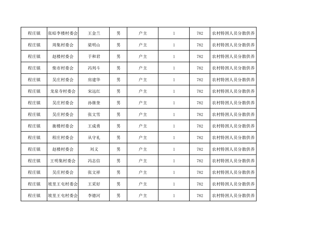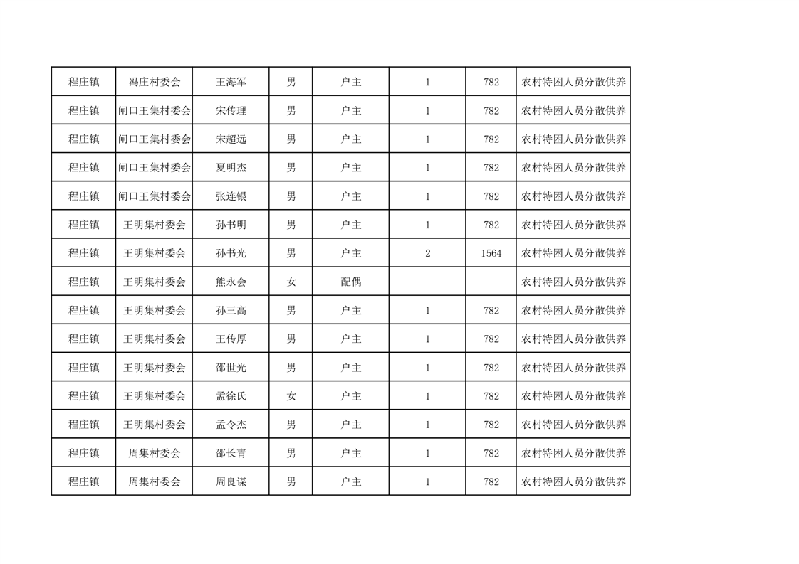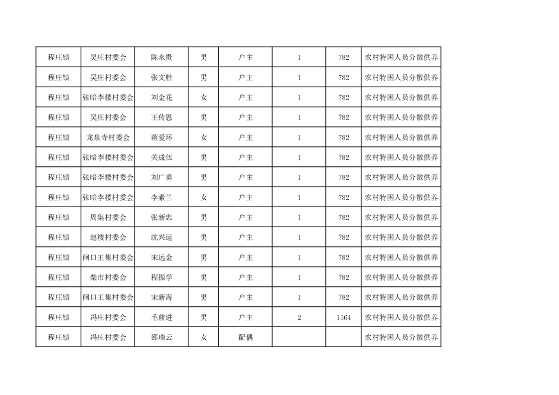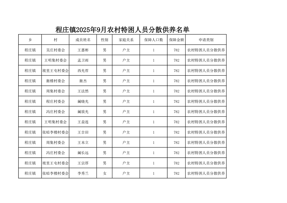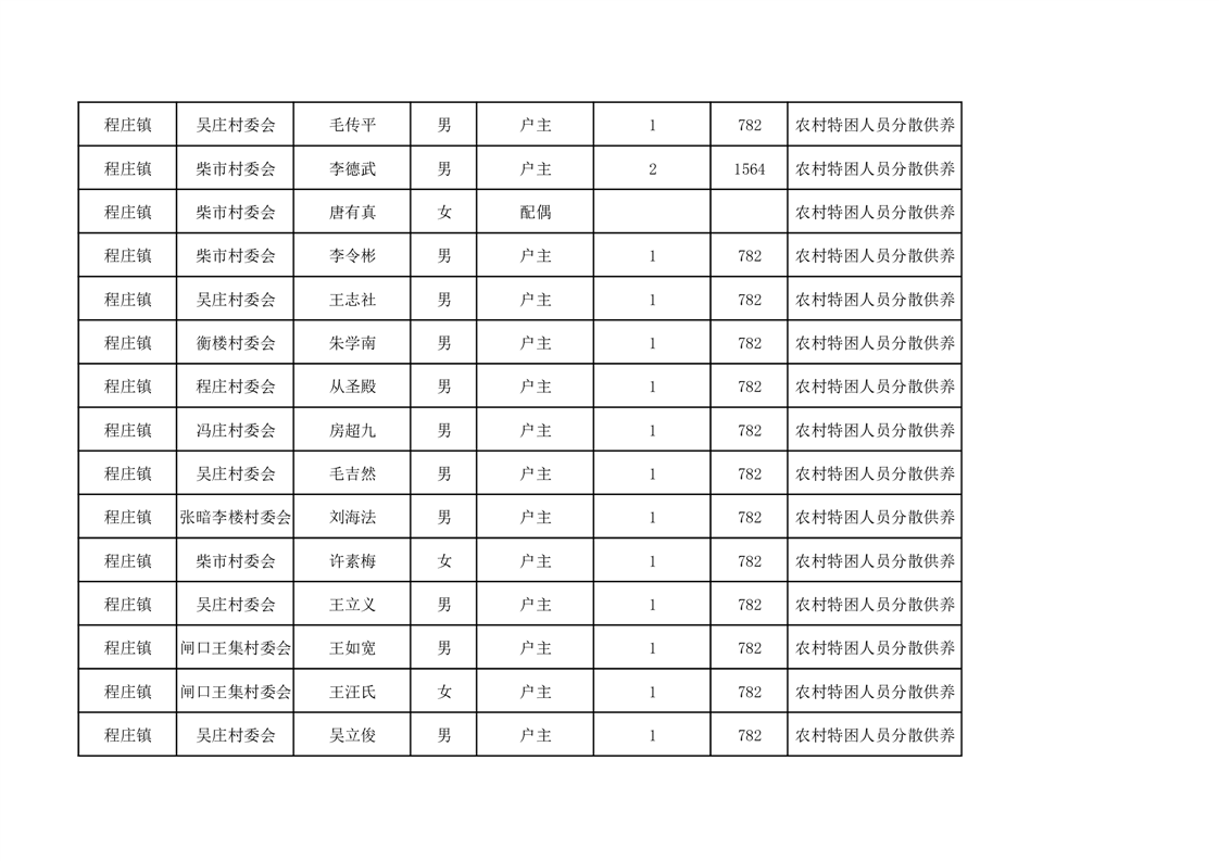程庄镇2025年9月分散供养特困人员资金发放花名册