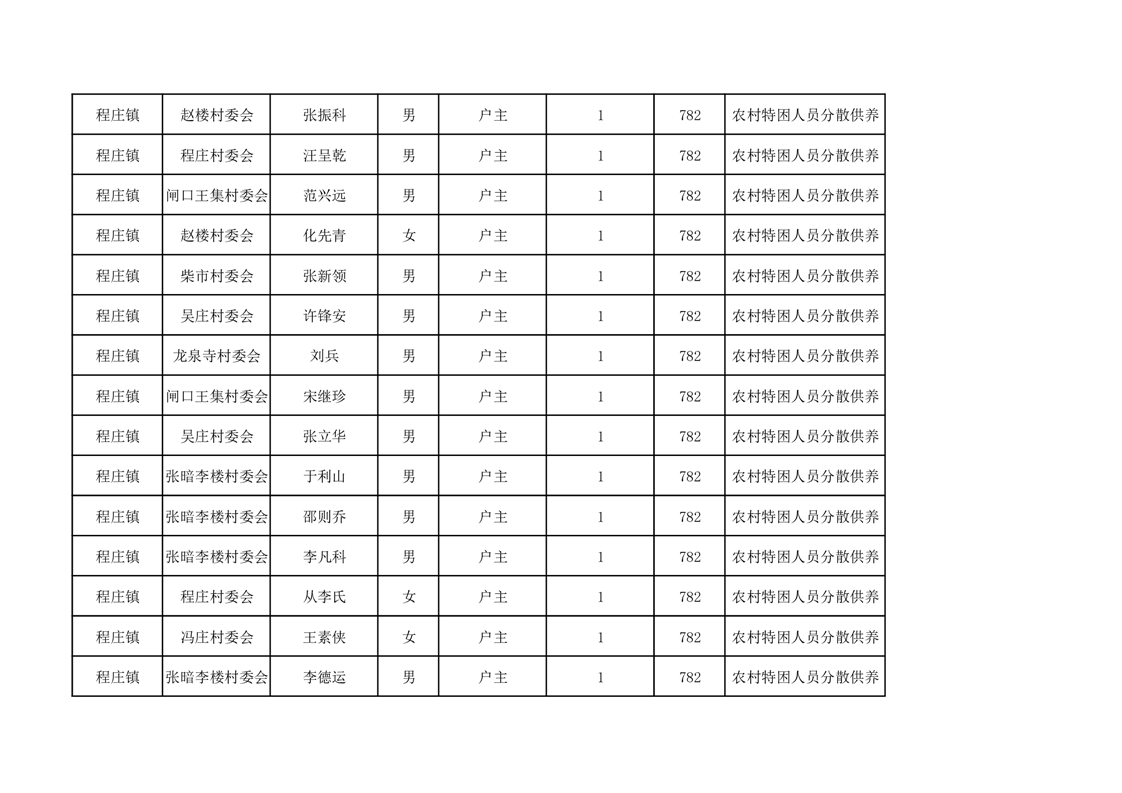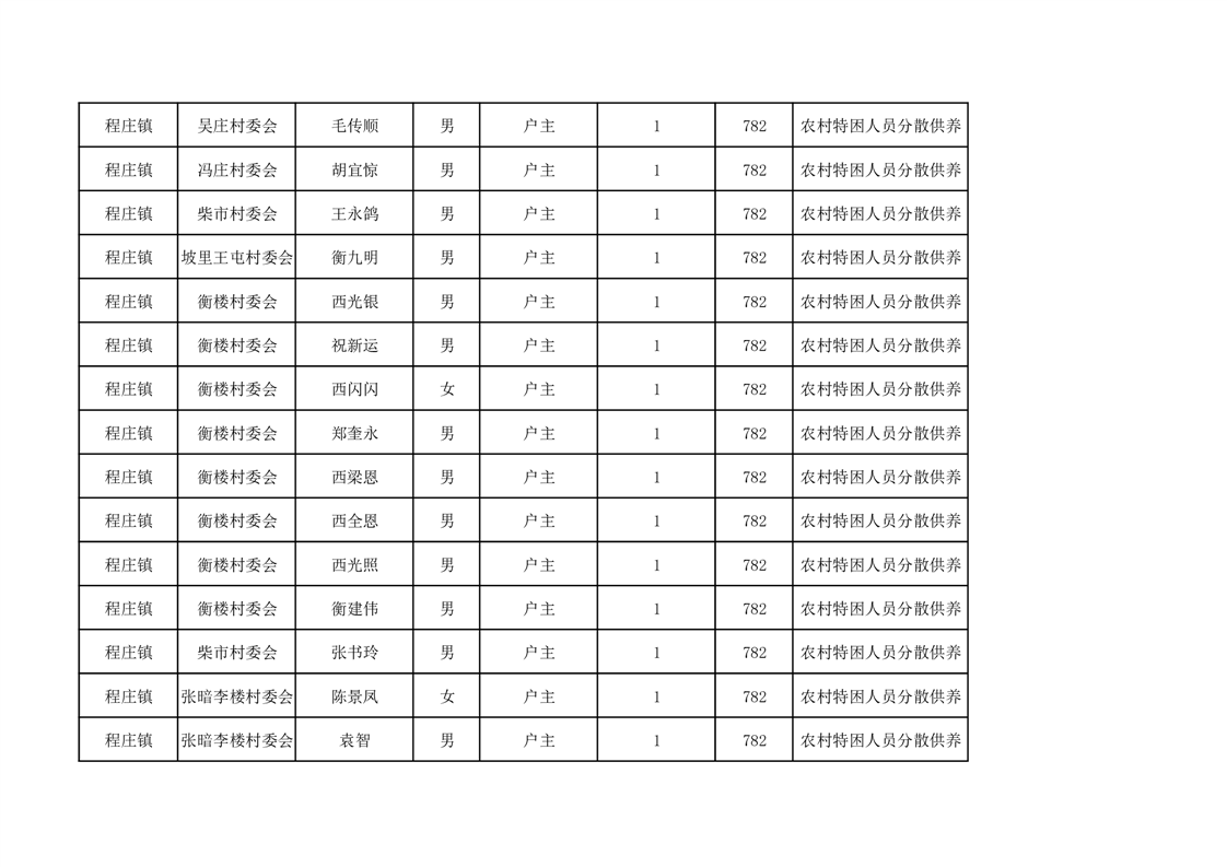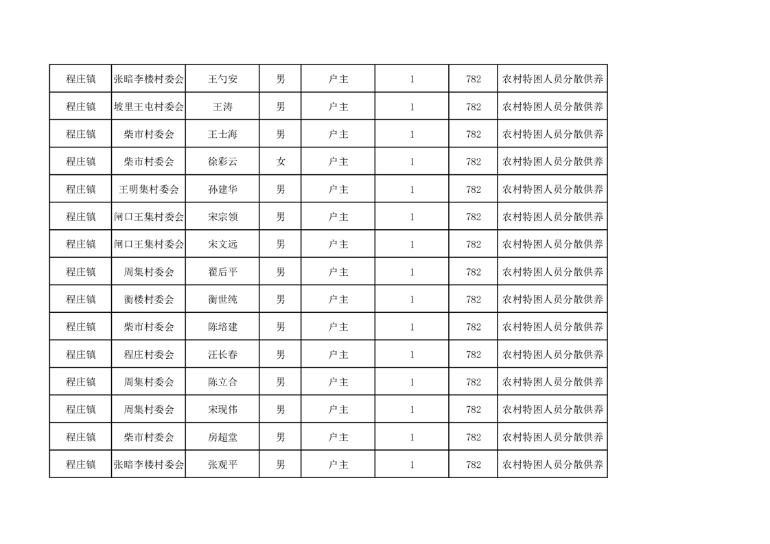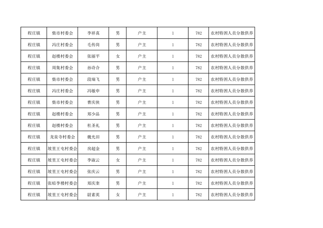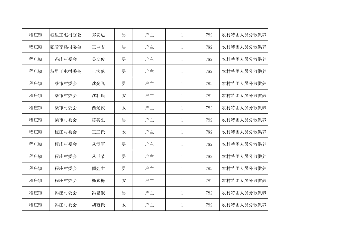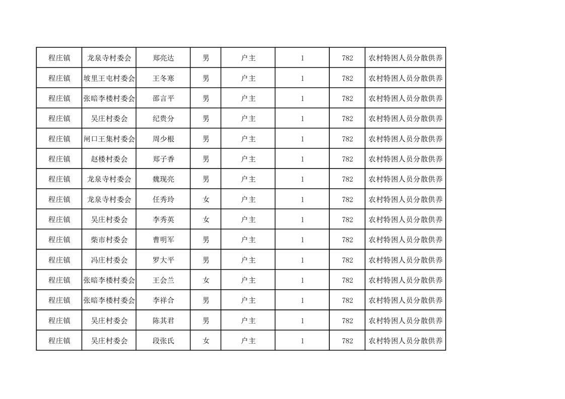 程庄镇2025年9月分散供养特困人员资金发放花名册
