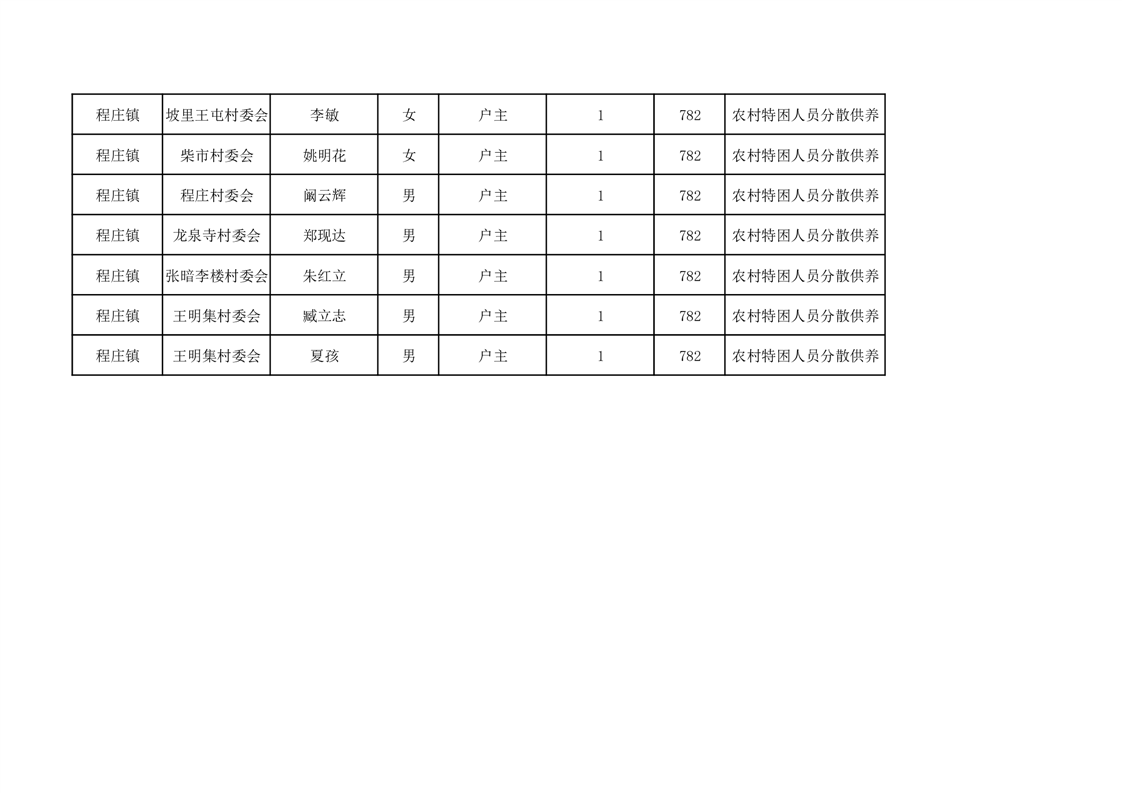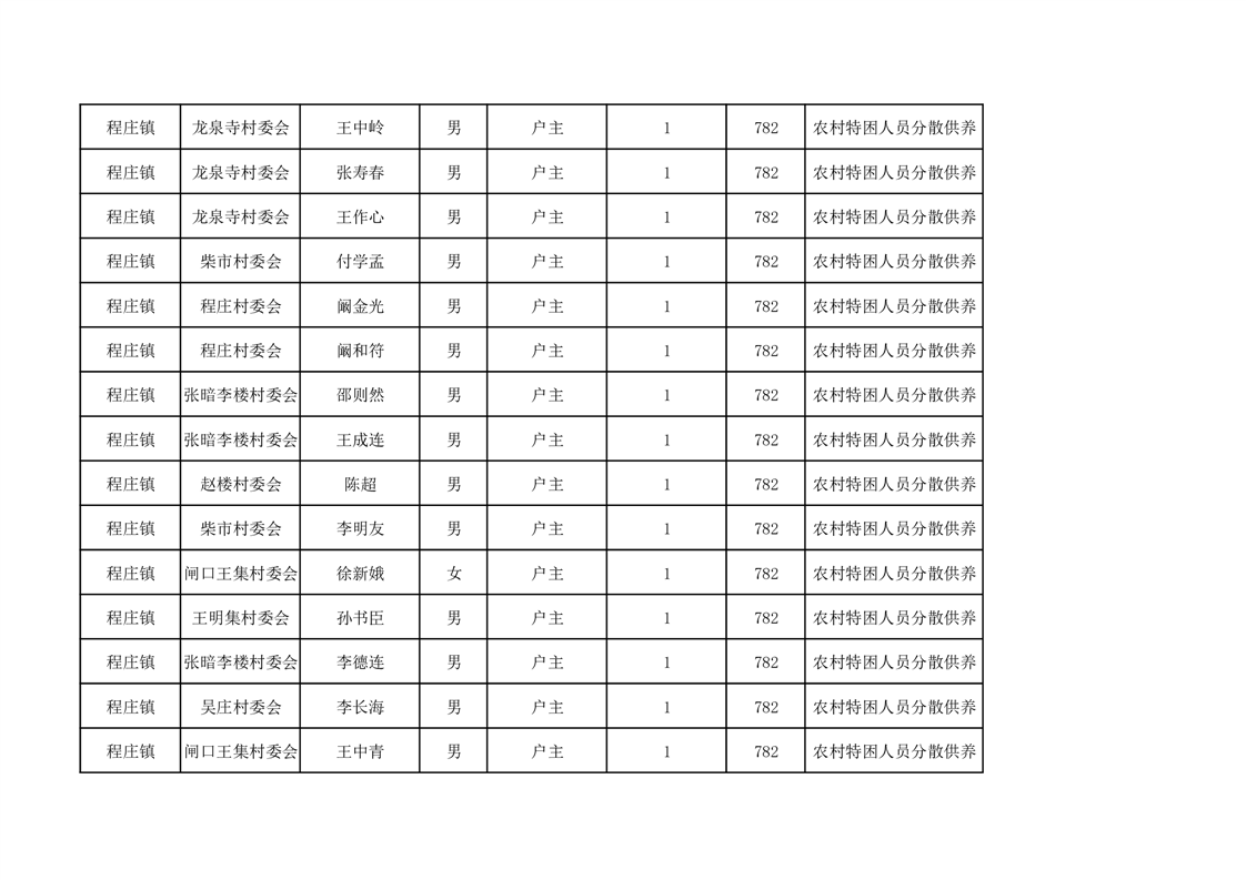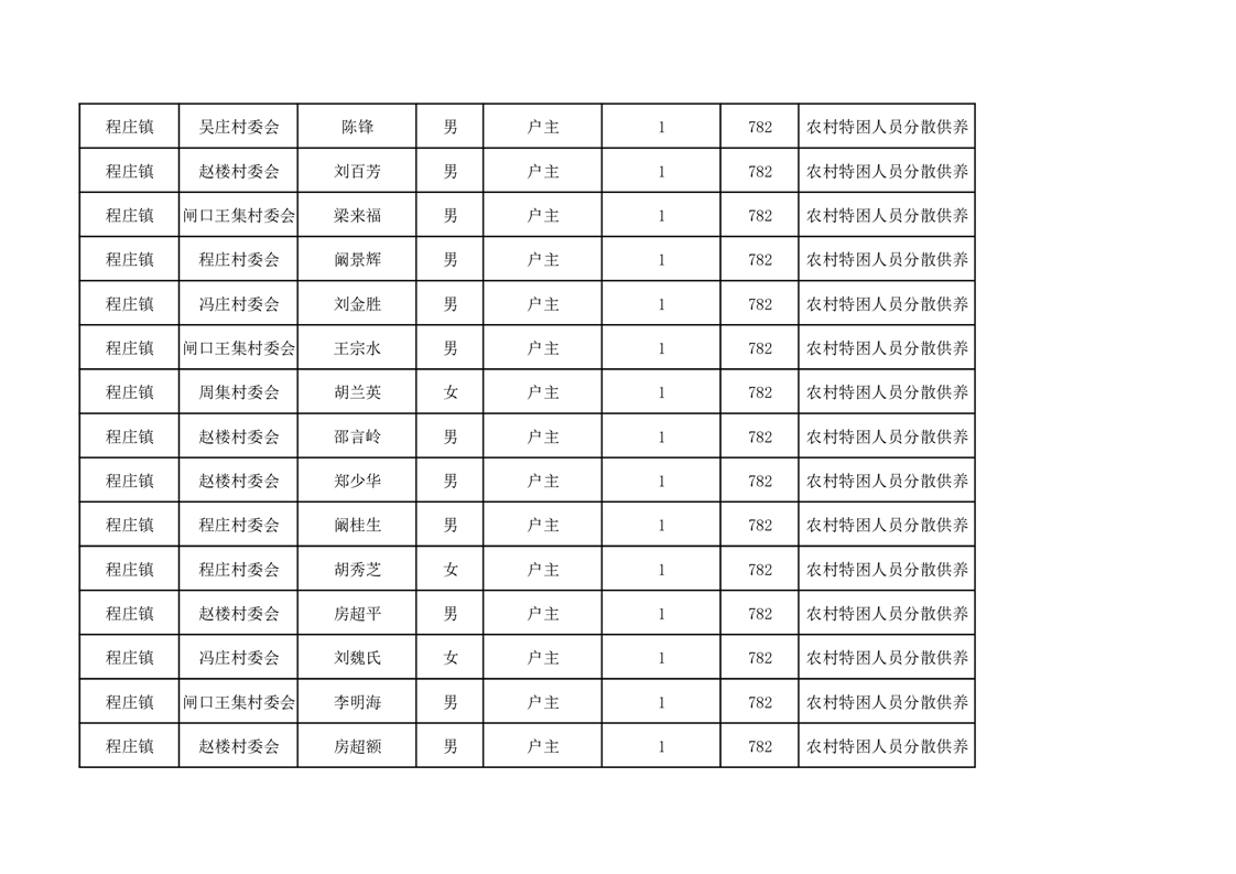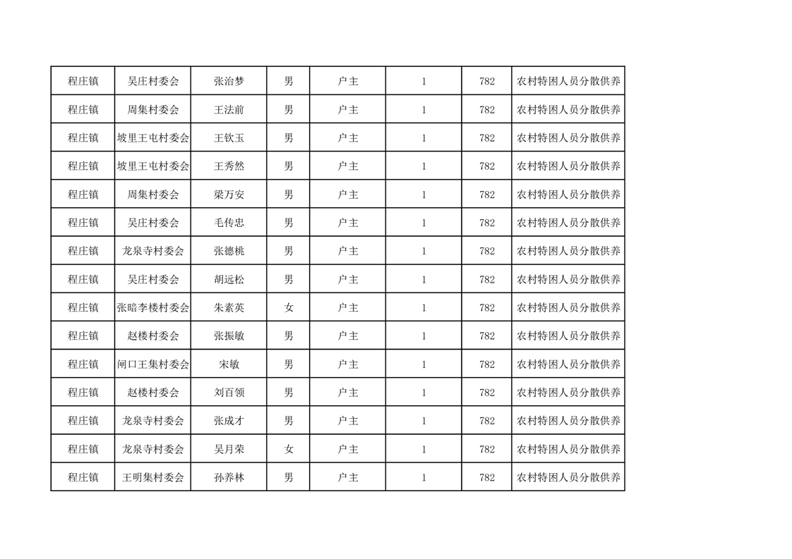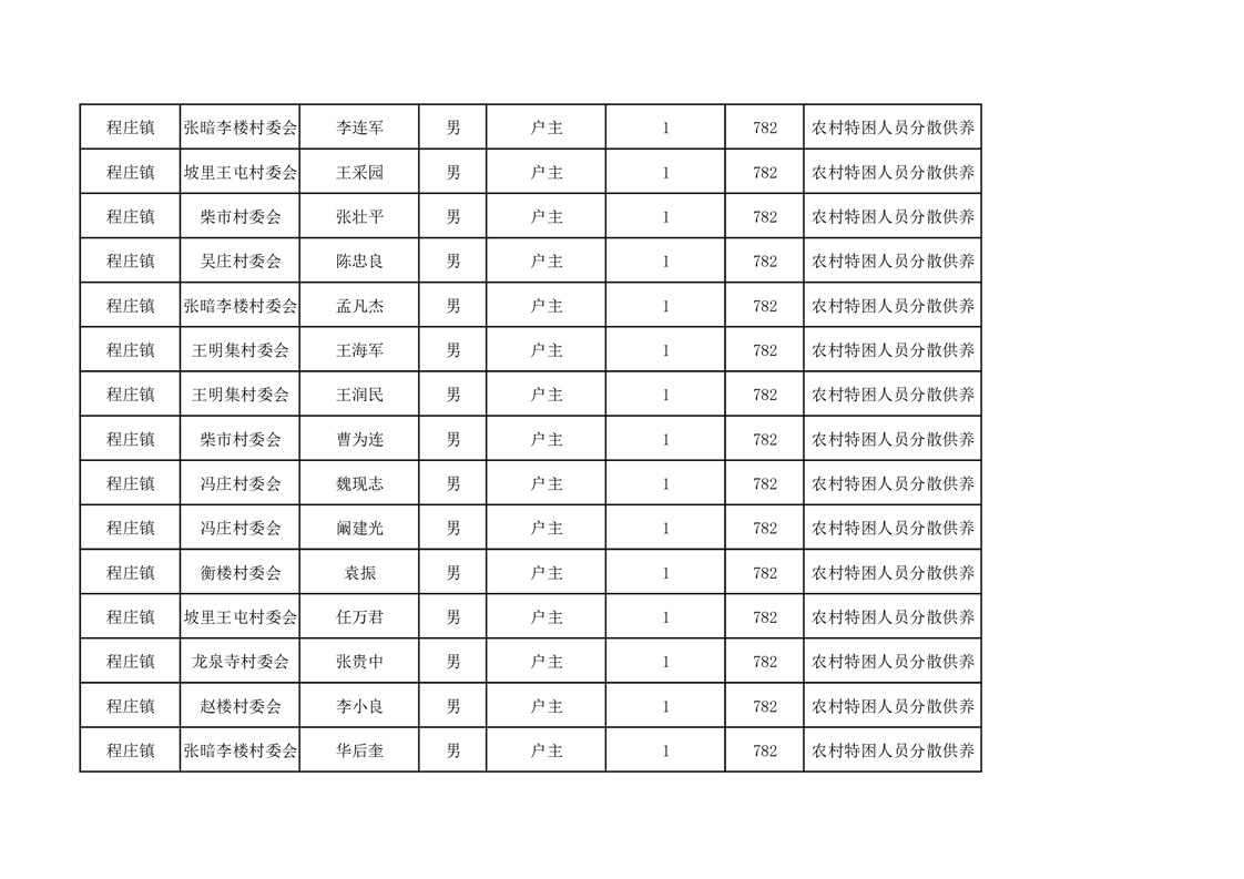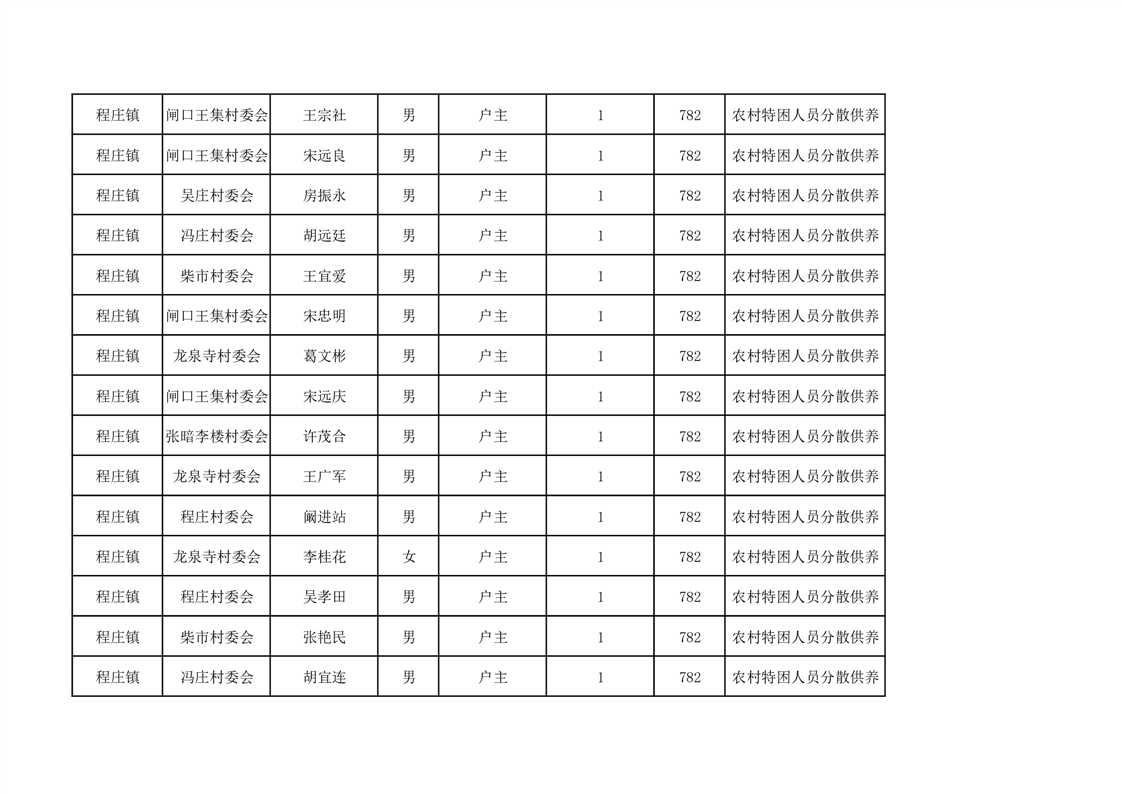 程庄镇2025年9月分散供养特困人员资金发放花名册