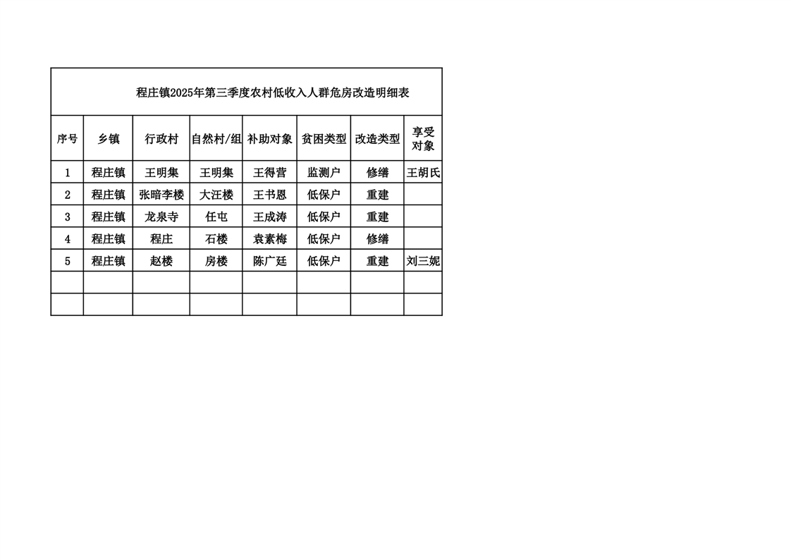 【任务分配】程庄镇2025年第三季度农村危房改造补助农户名单