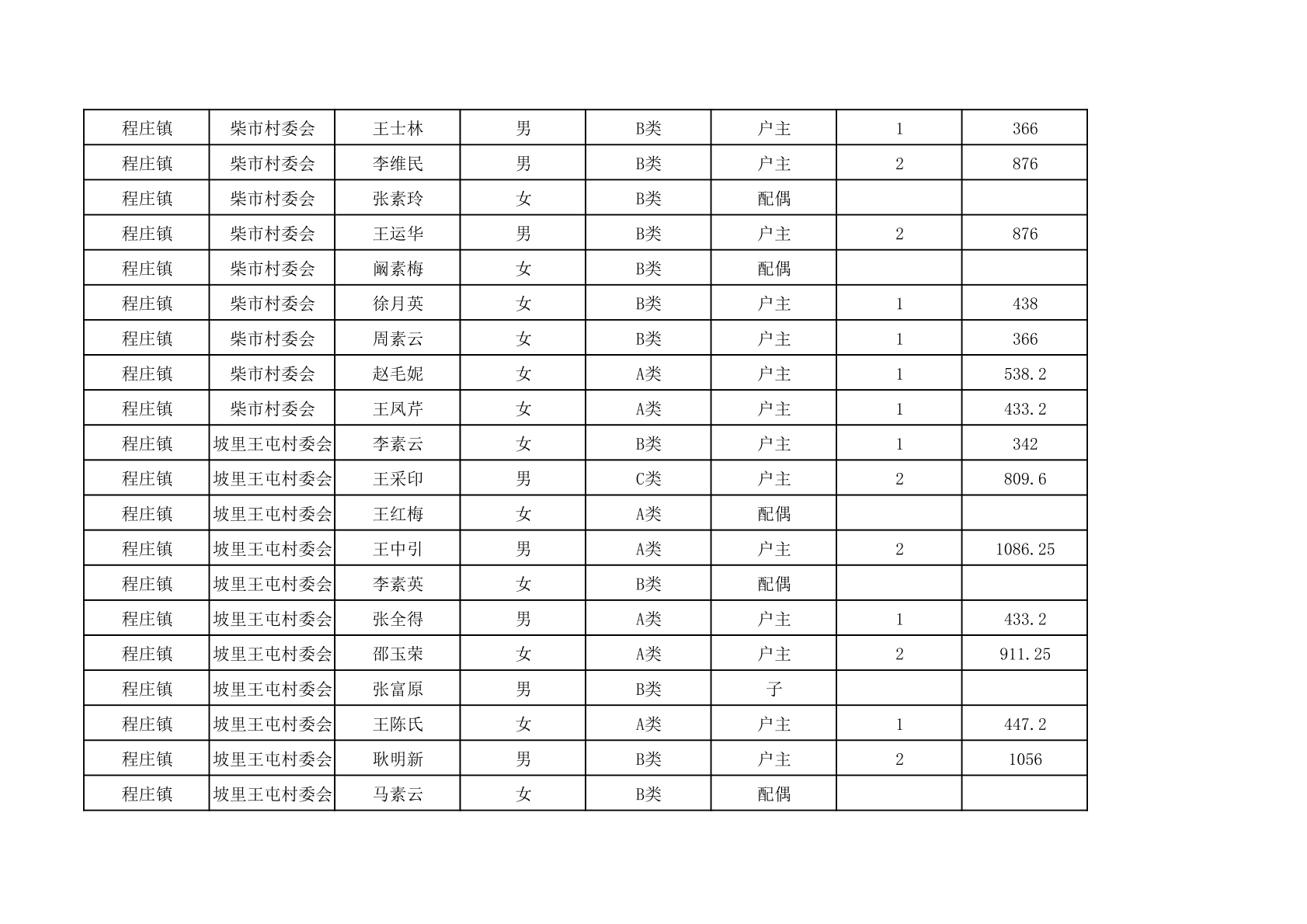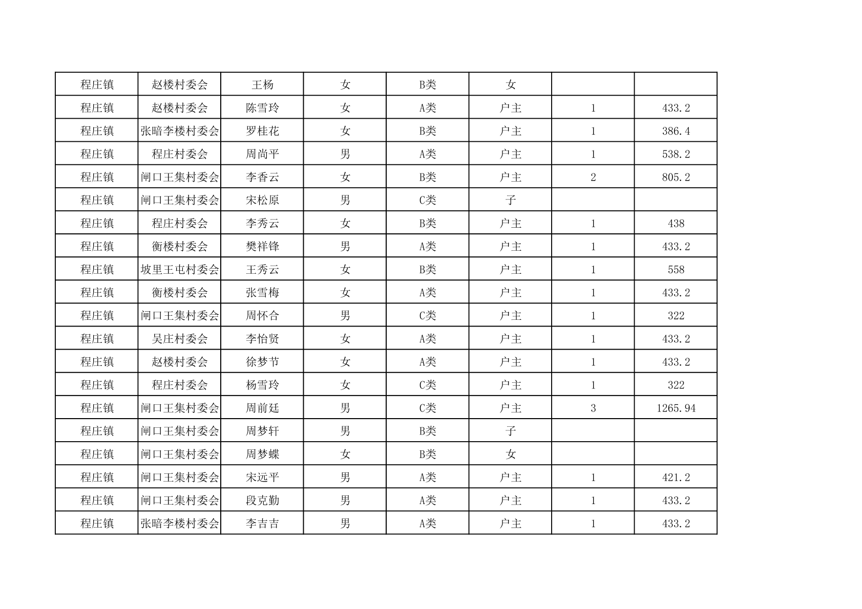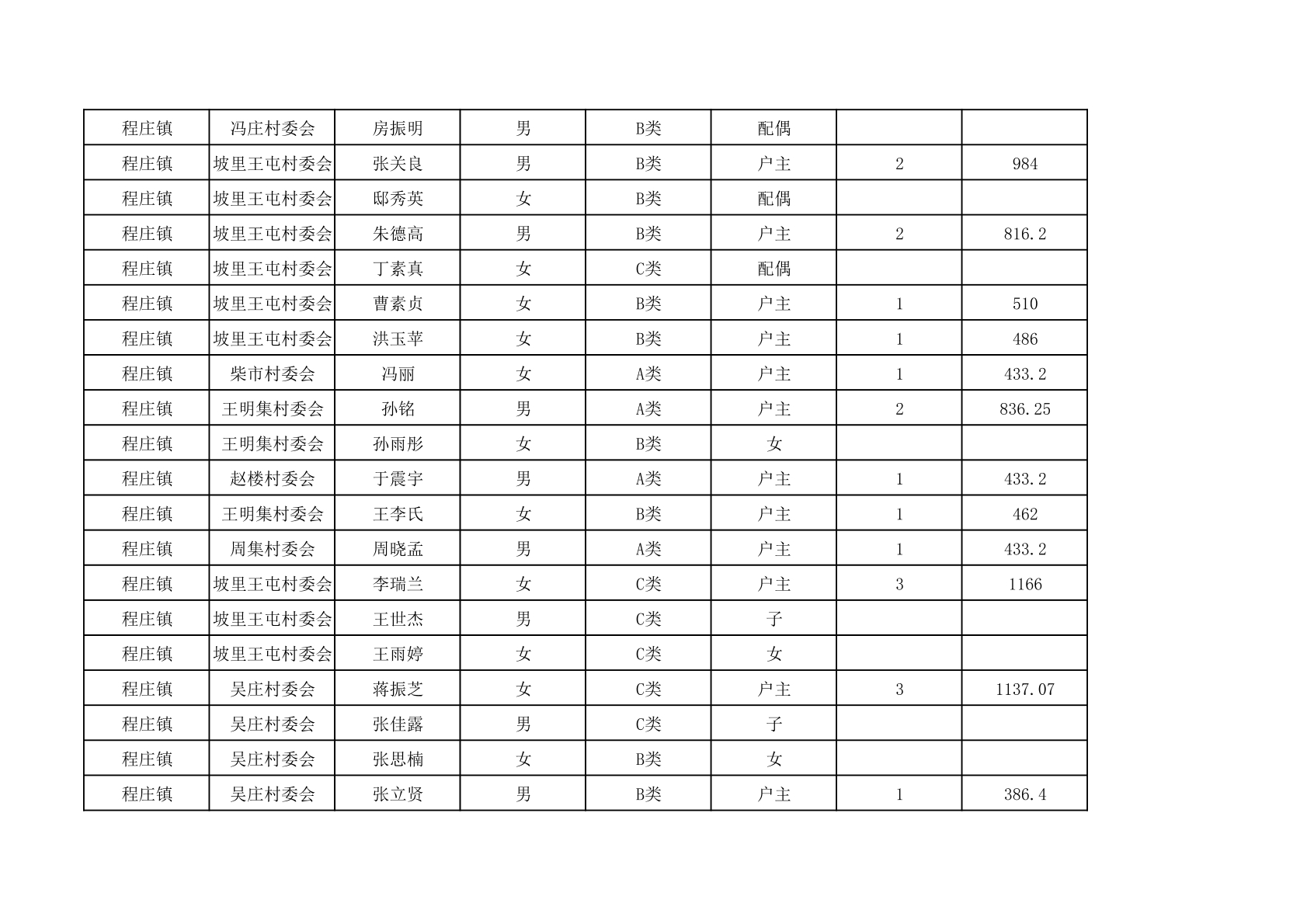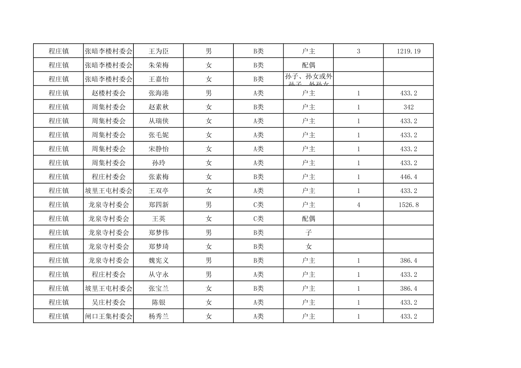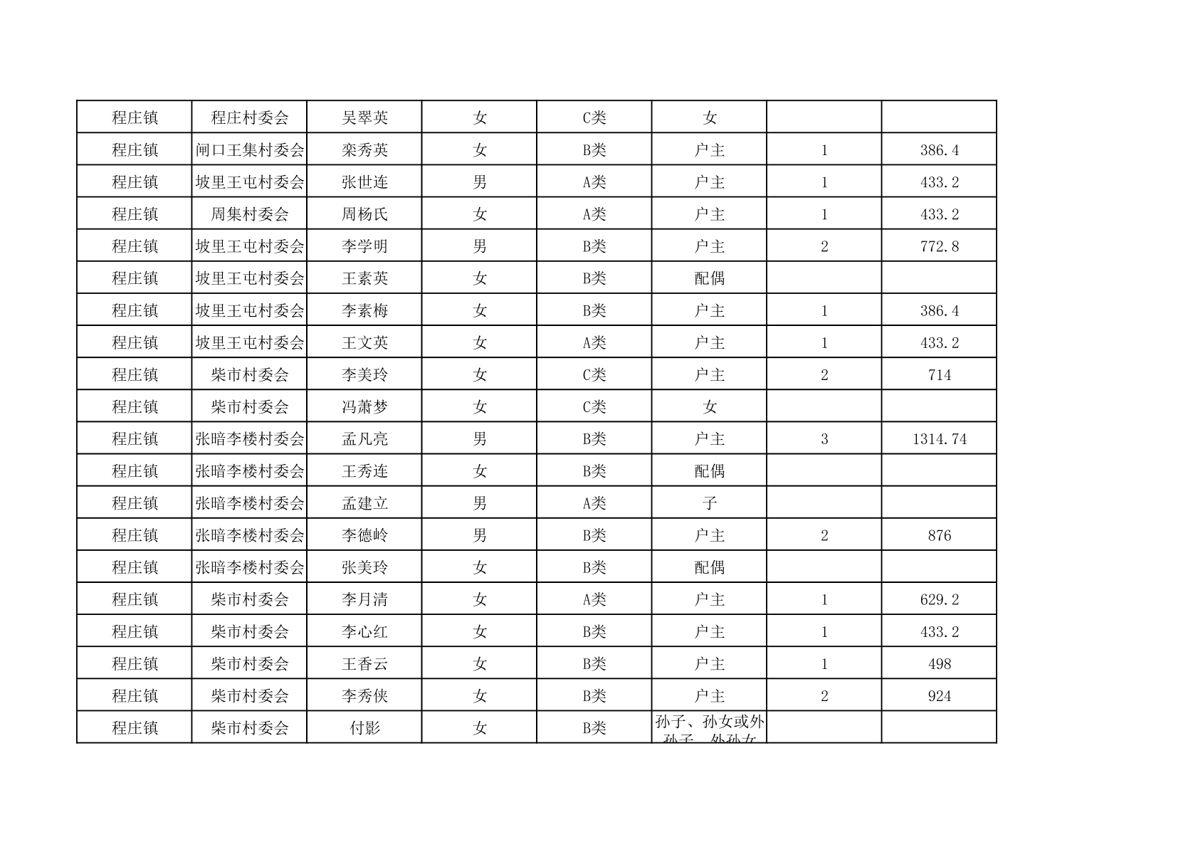 程庄镇2025年9月农保资金发放名册