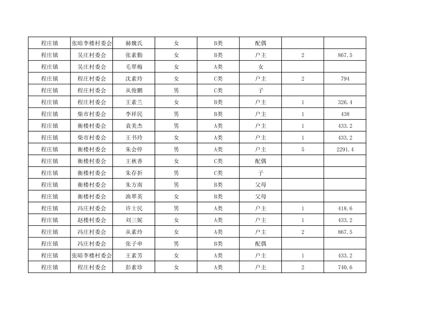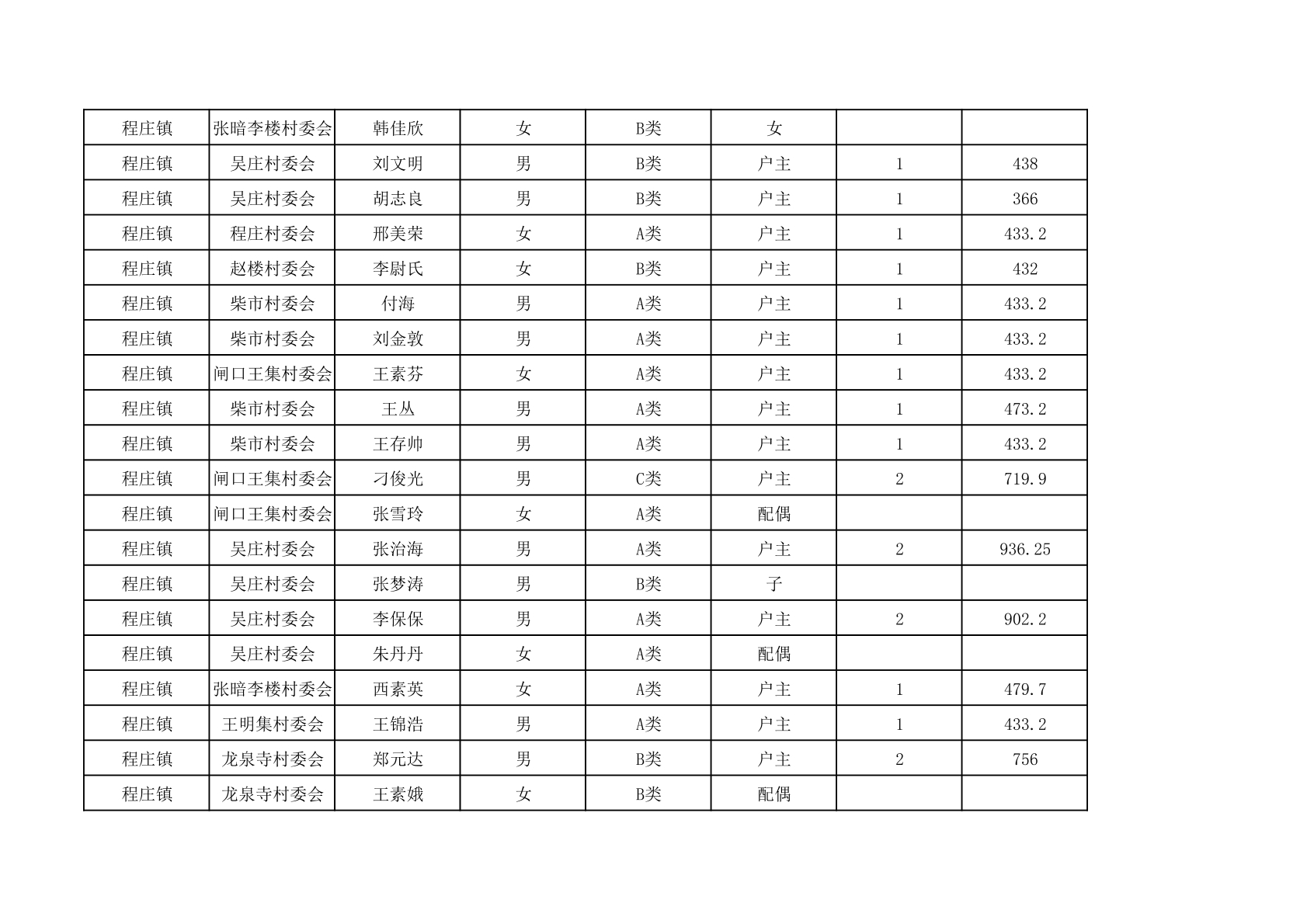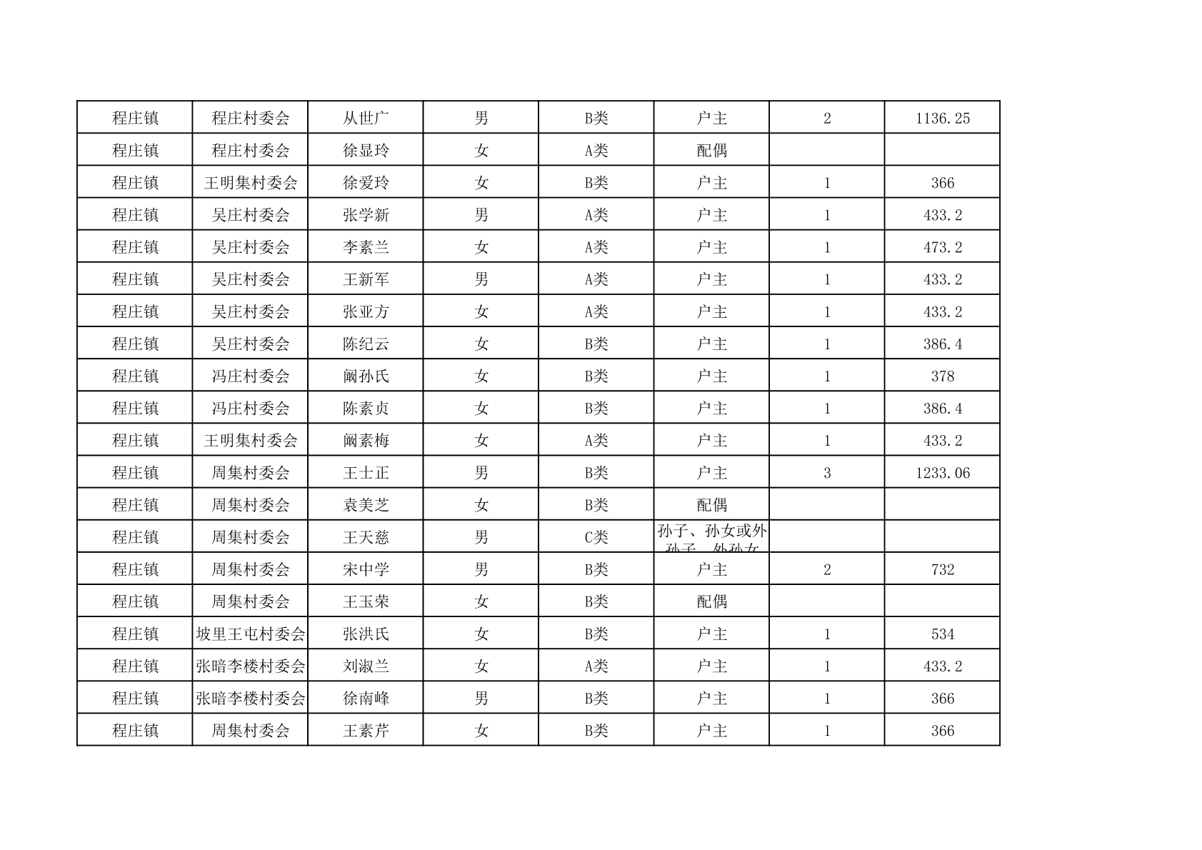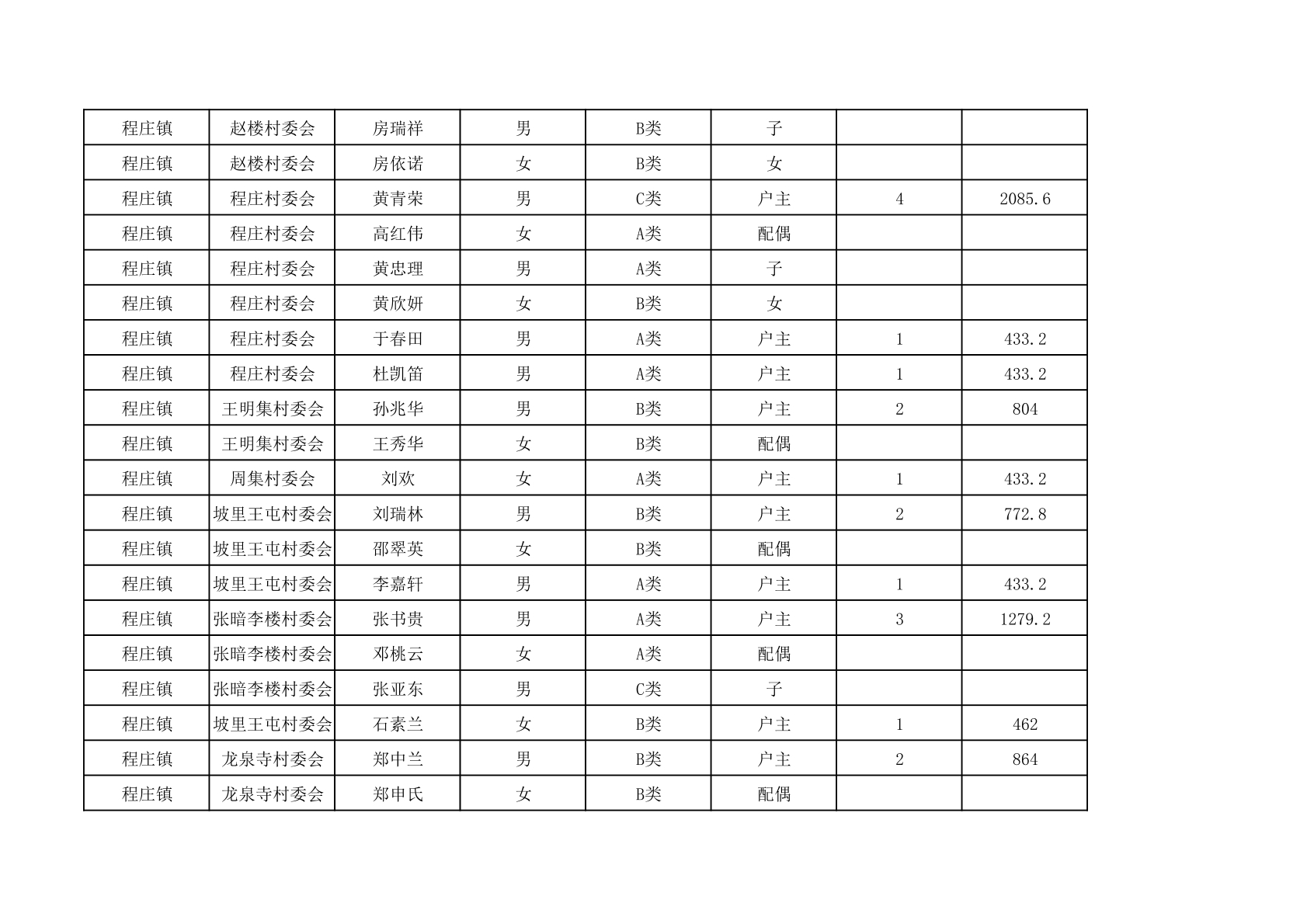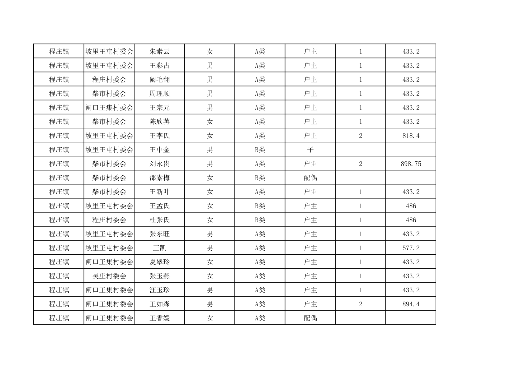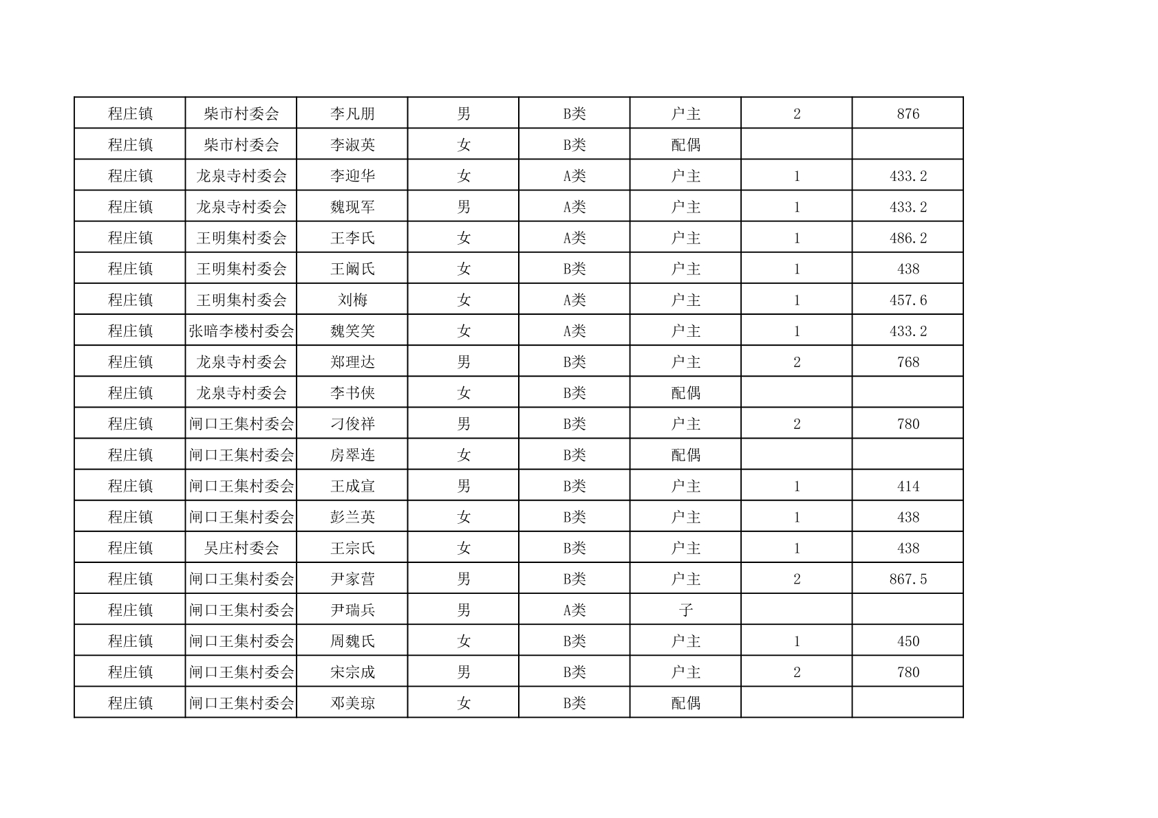 程庄镇2025年9月农保资金发放名册