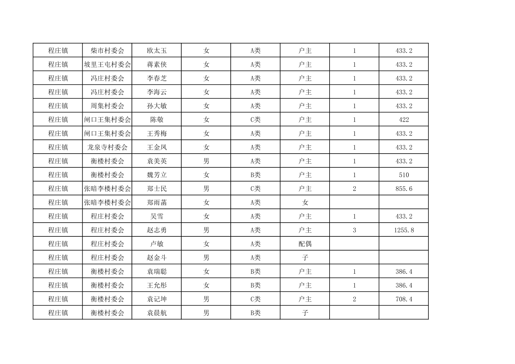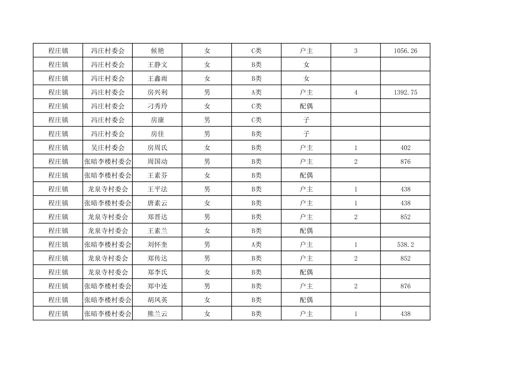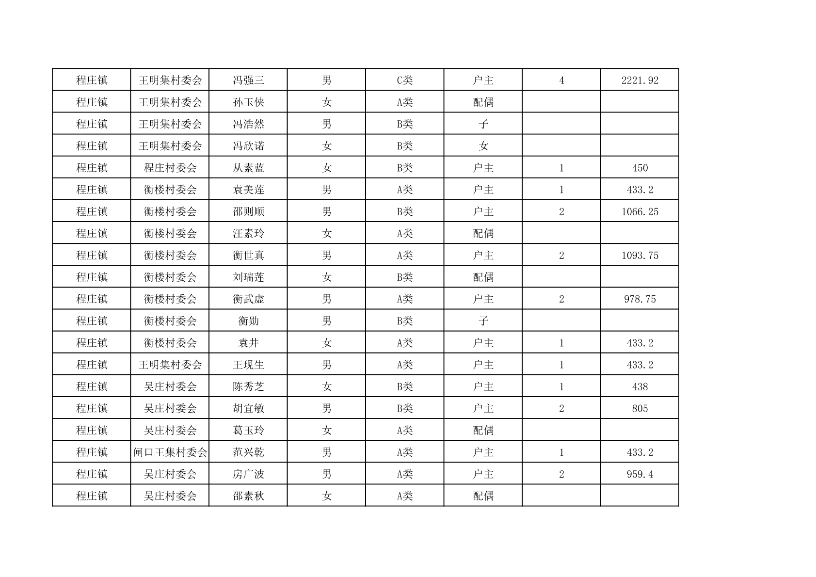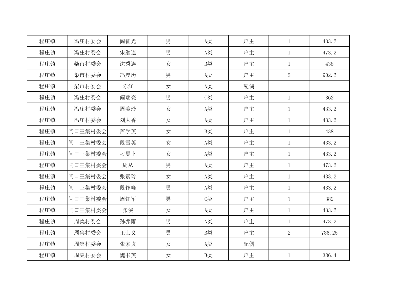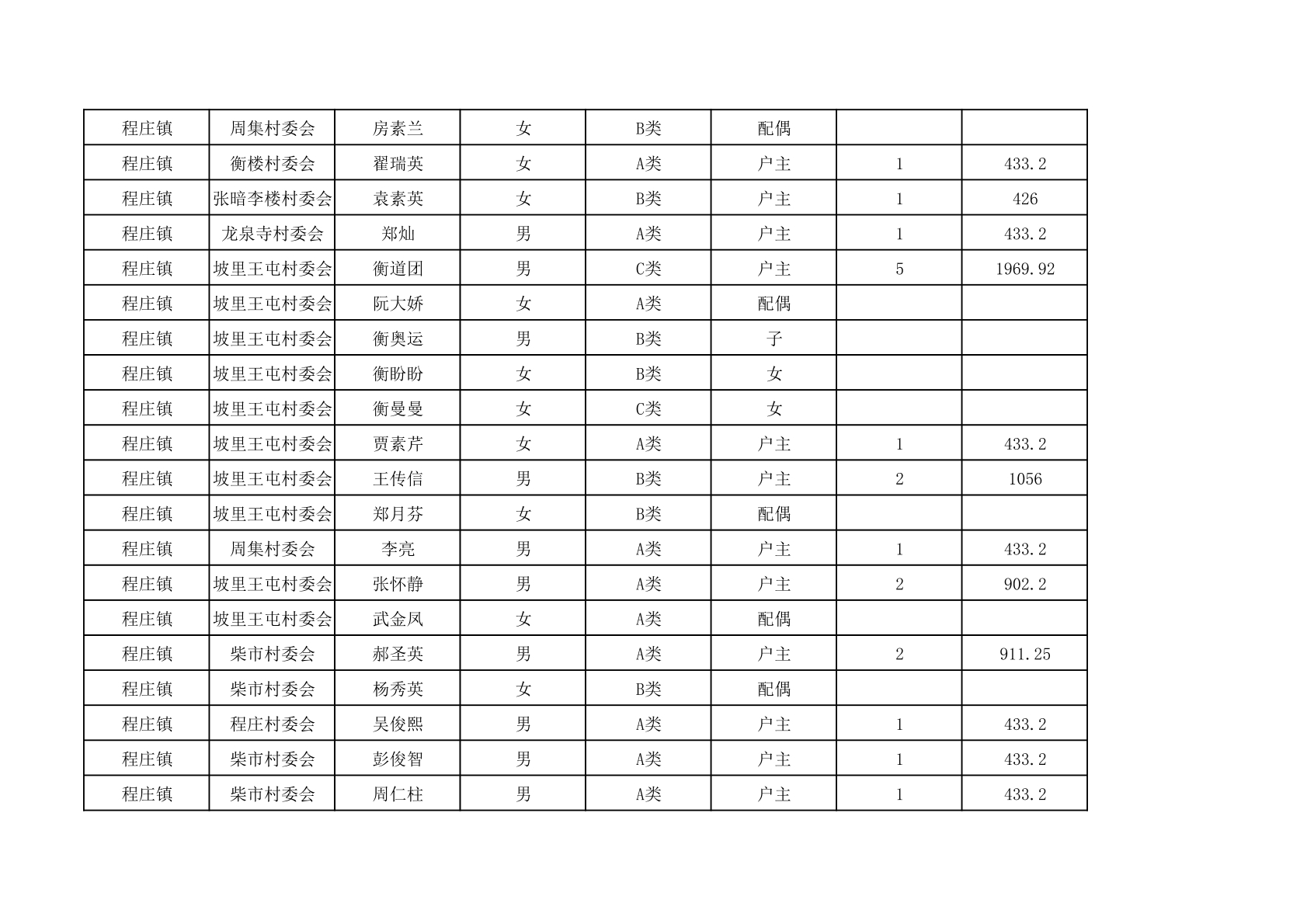程庄镇2025年9月农保资金发放名册