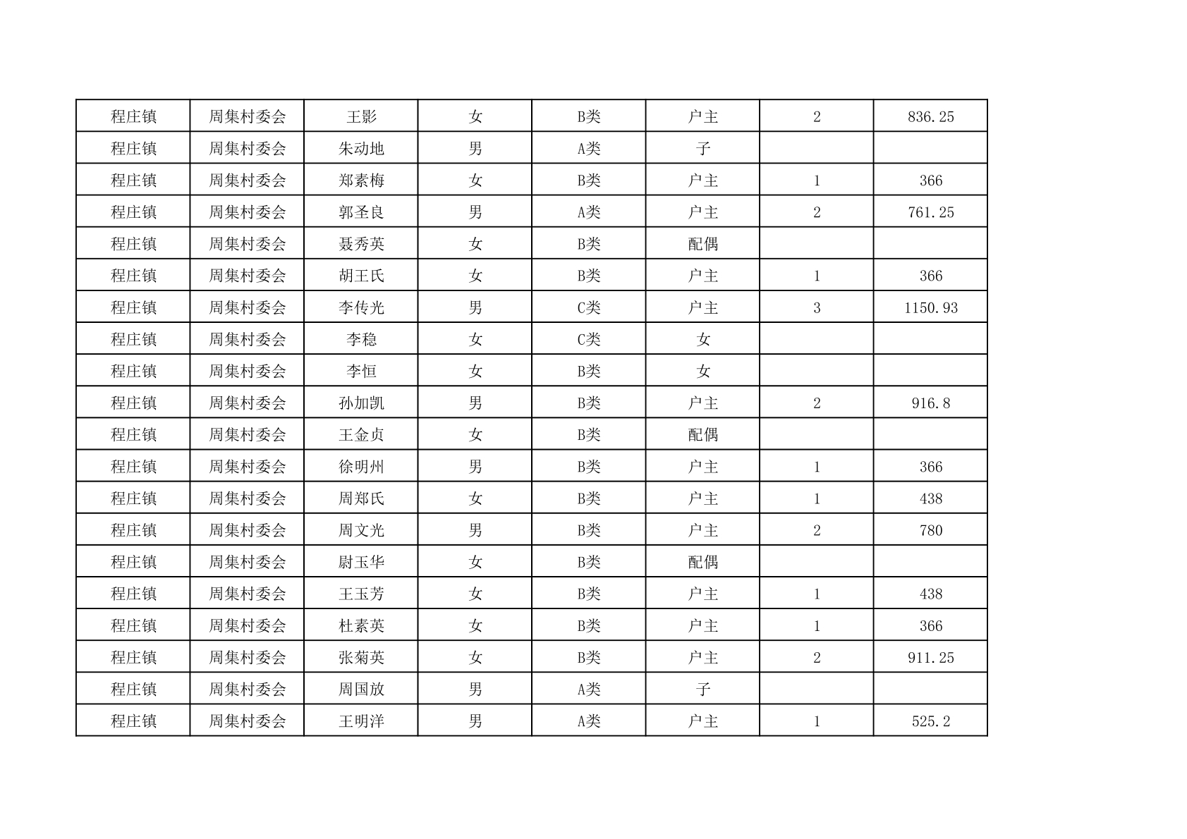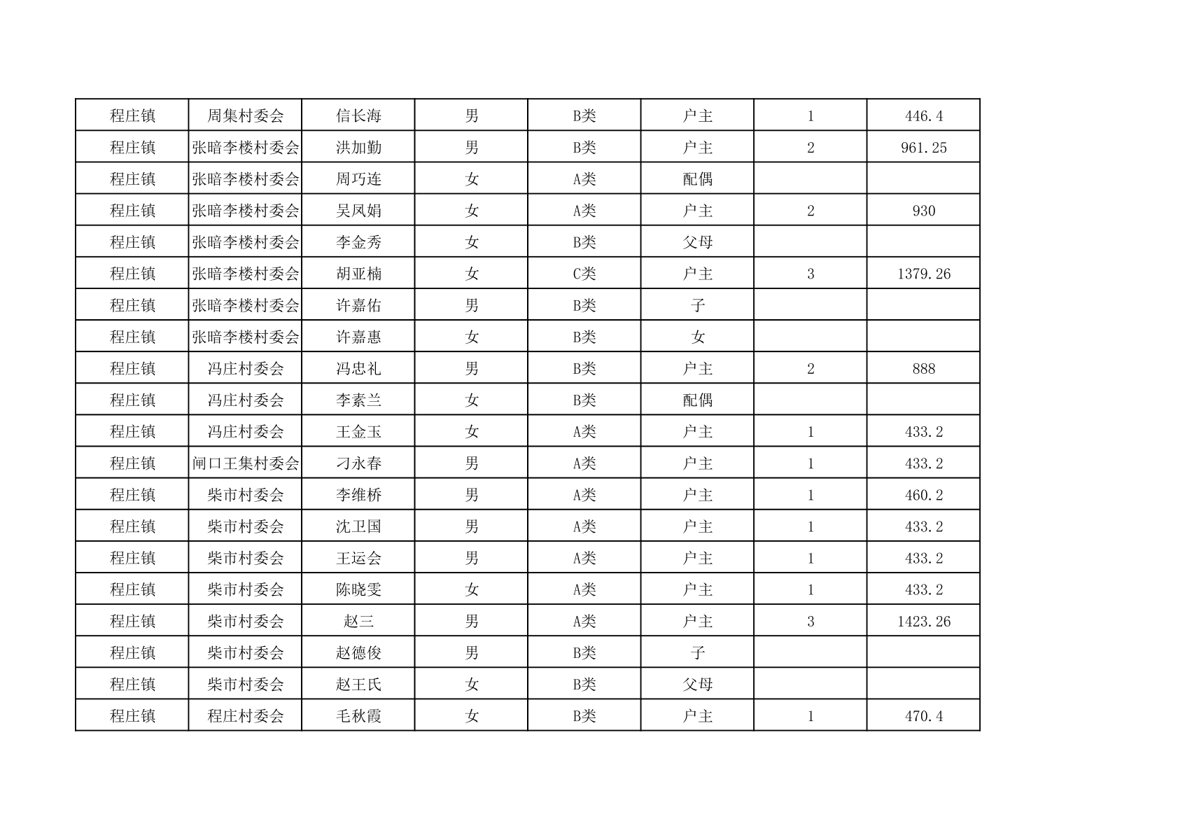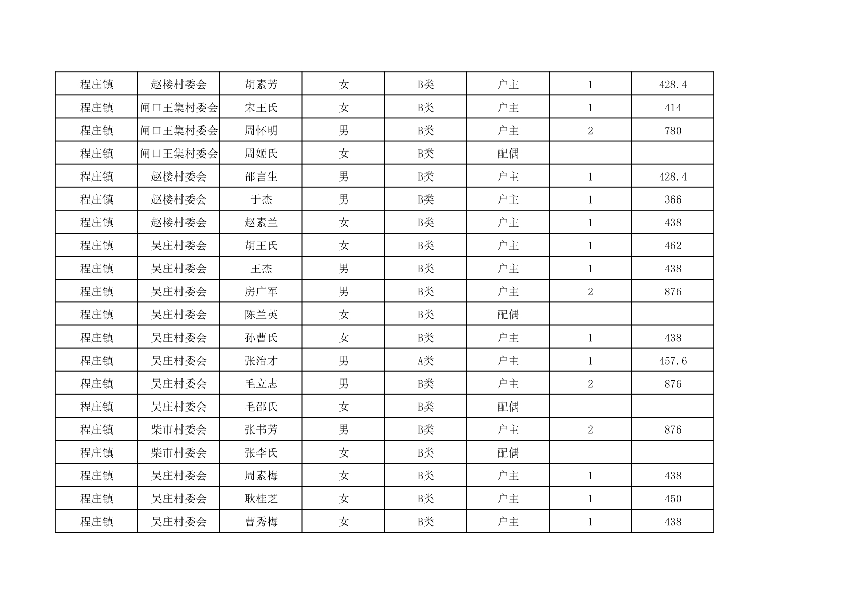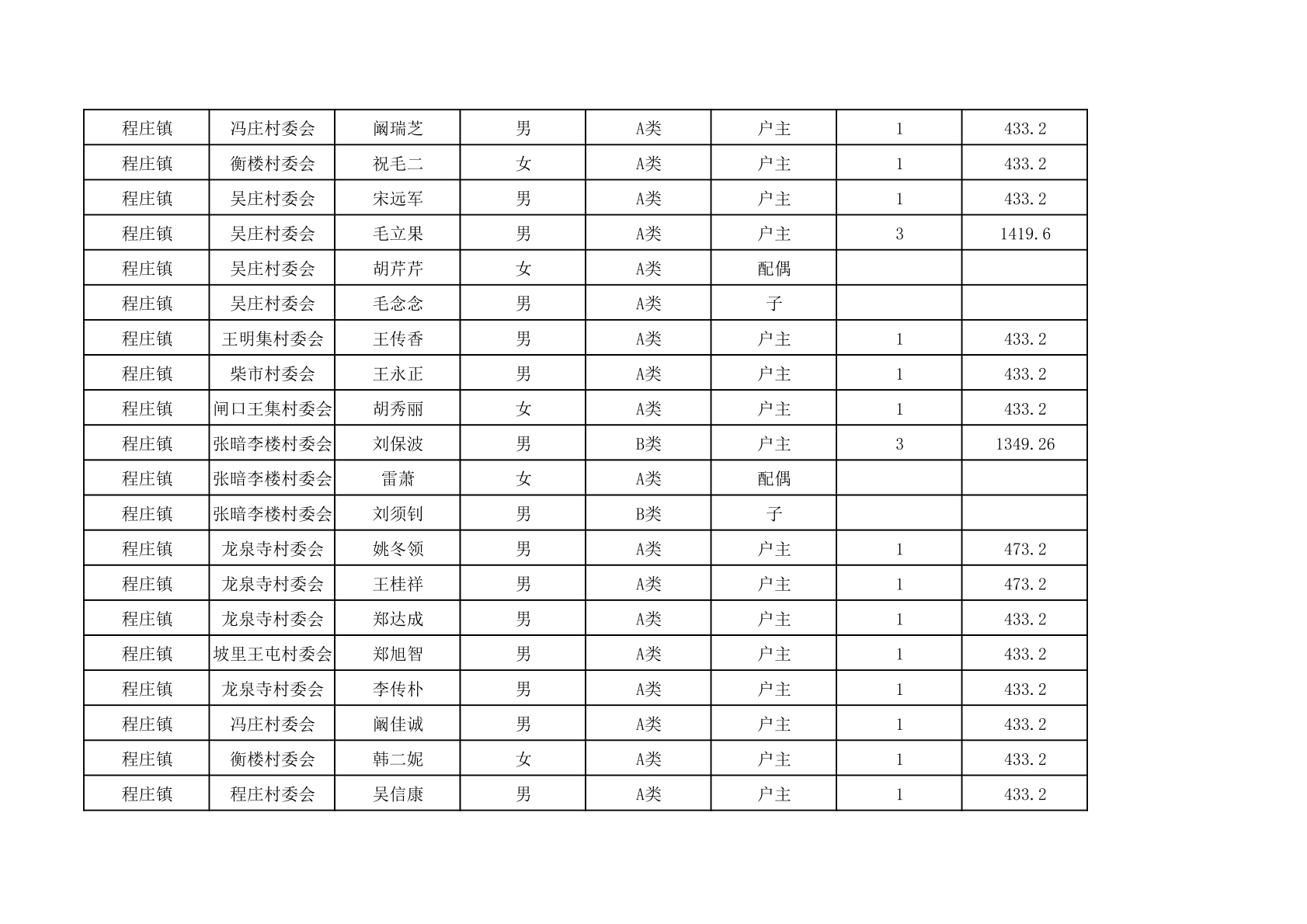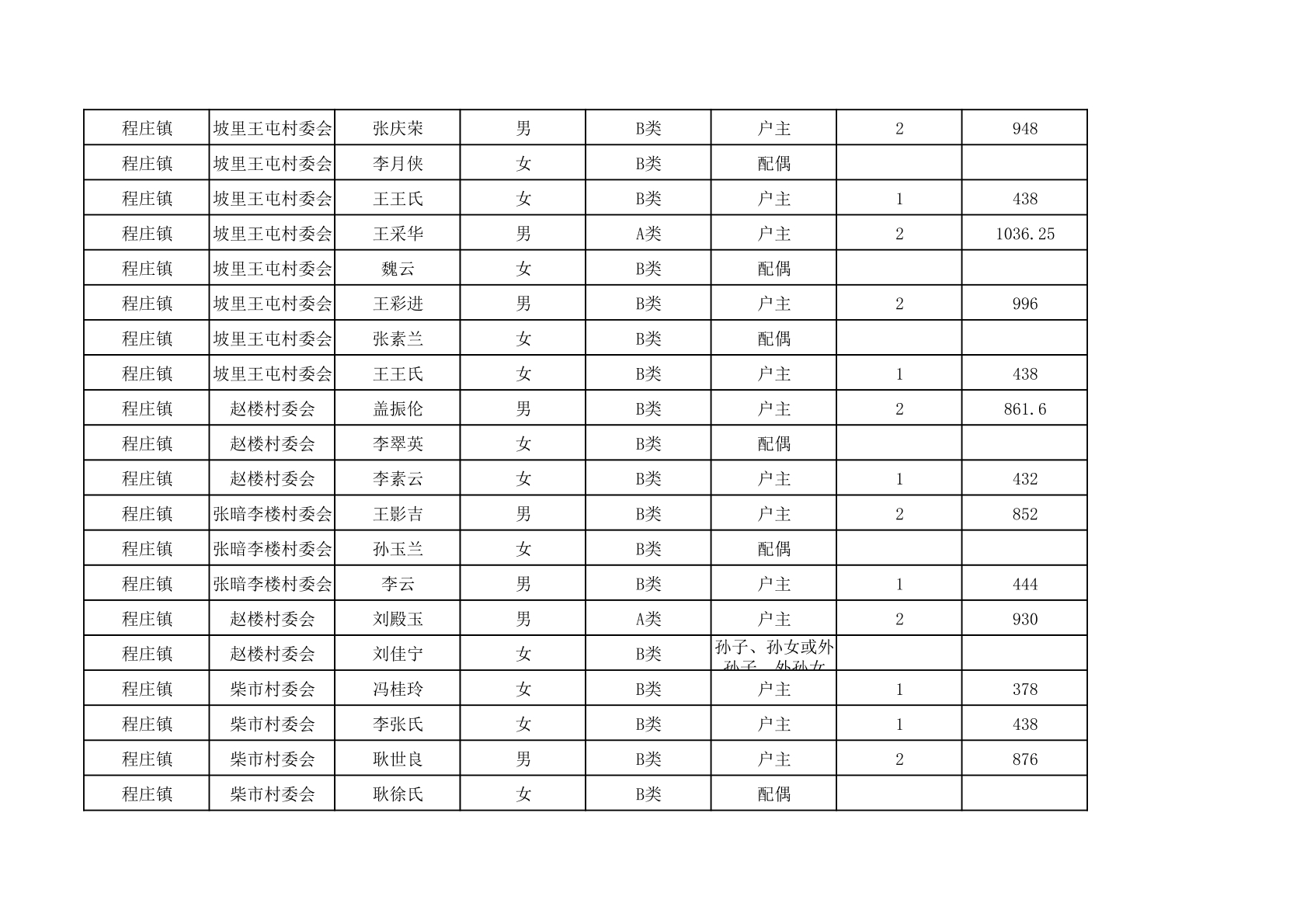 程庄镇2025年9月农保资金发放名册