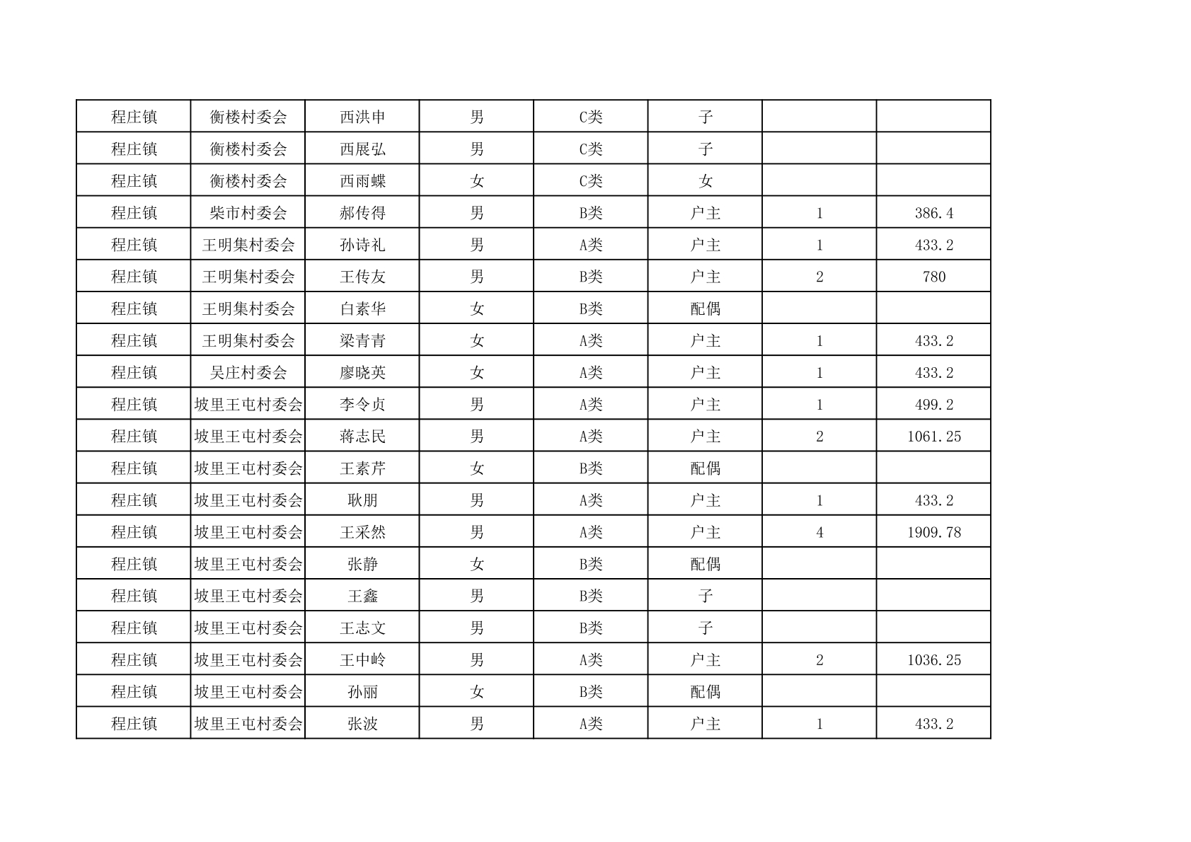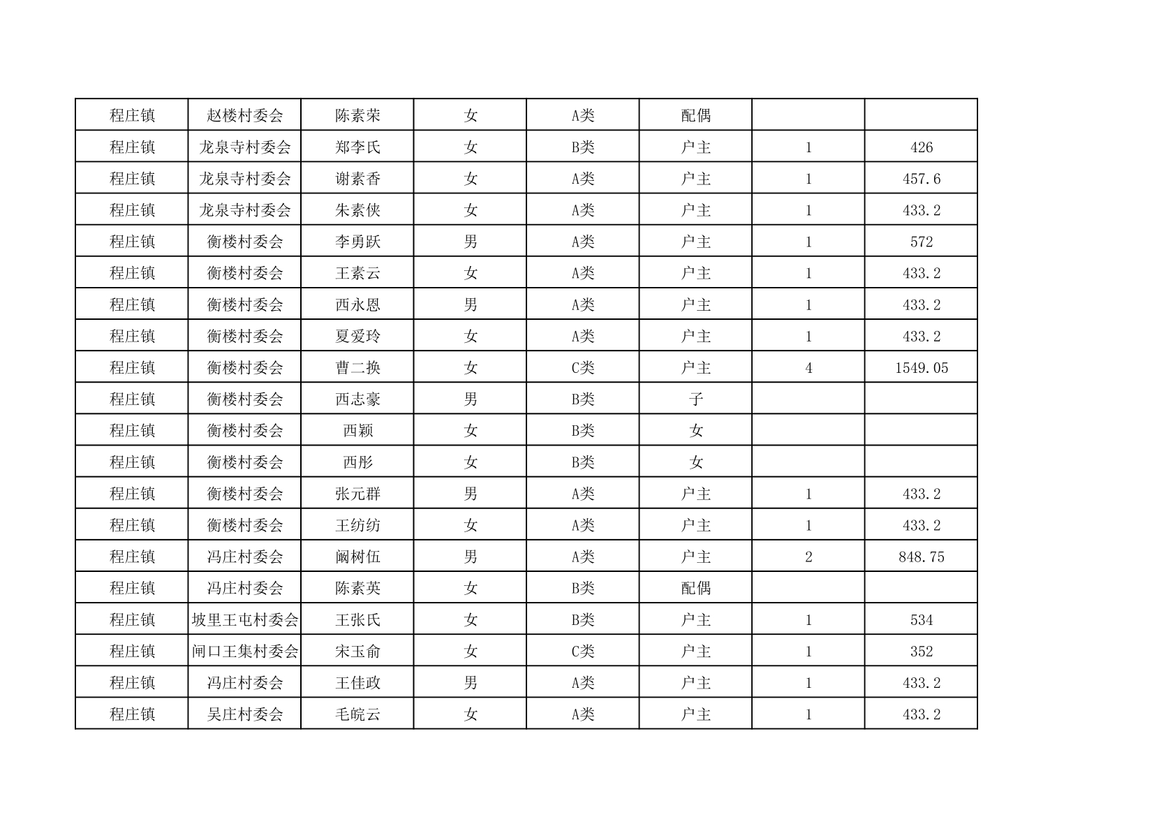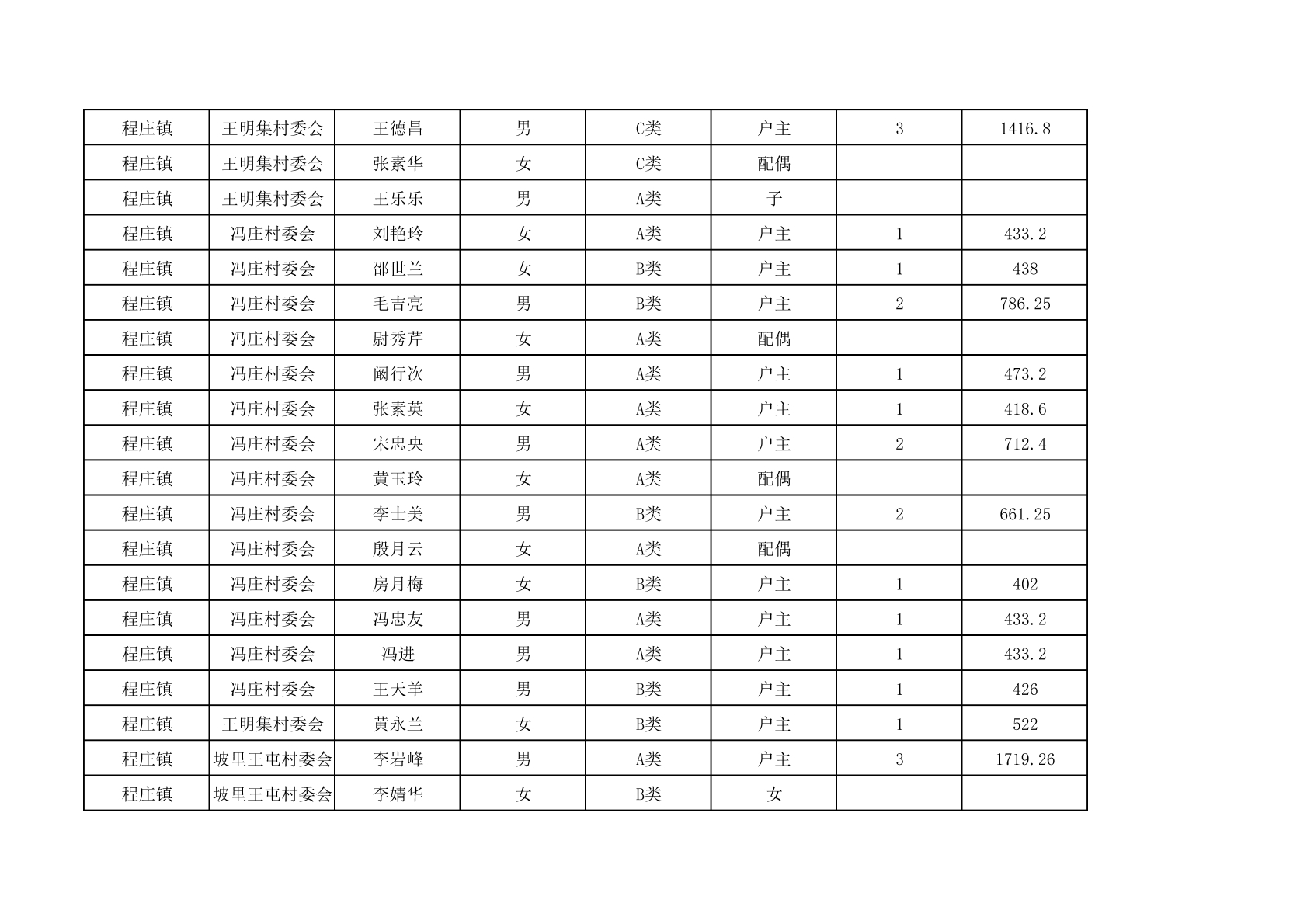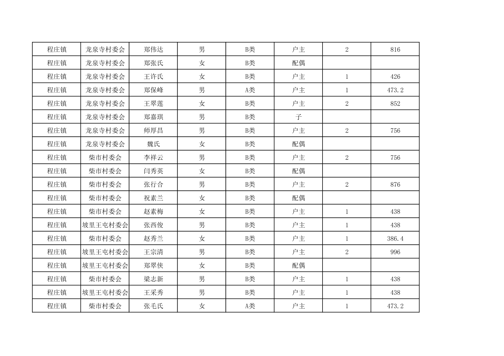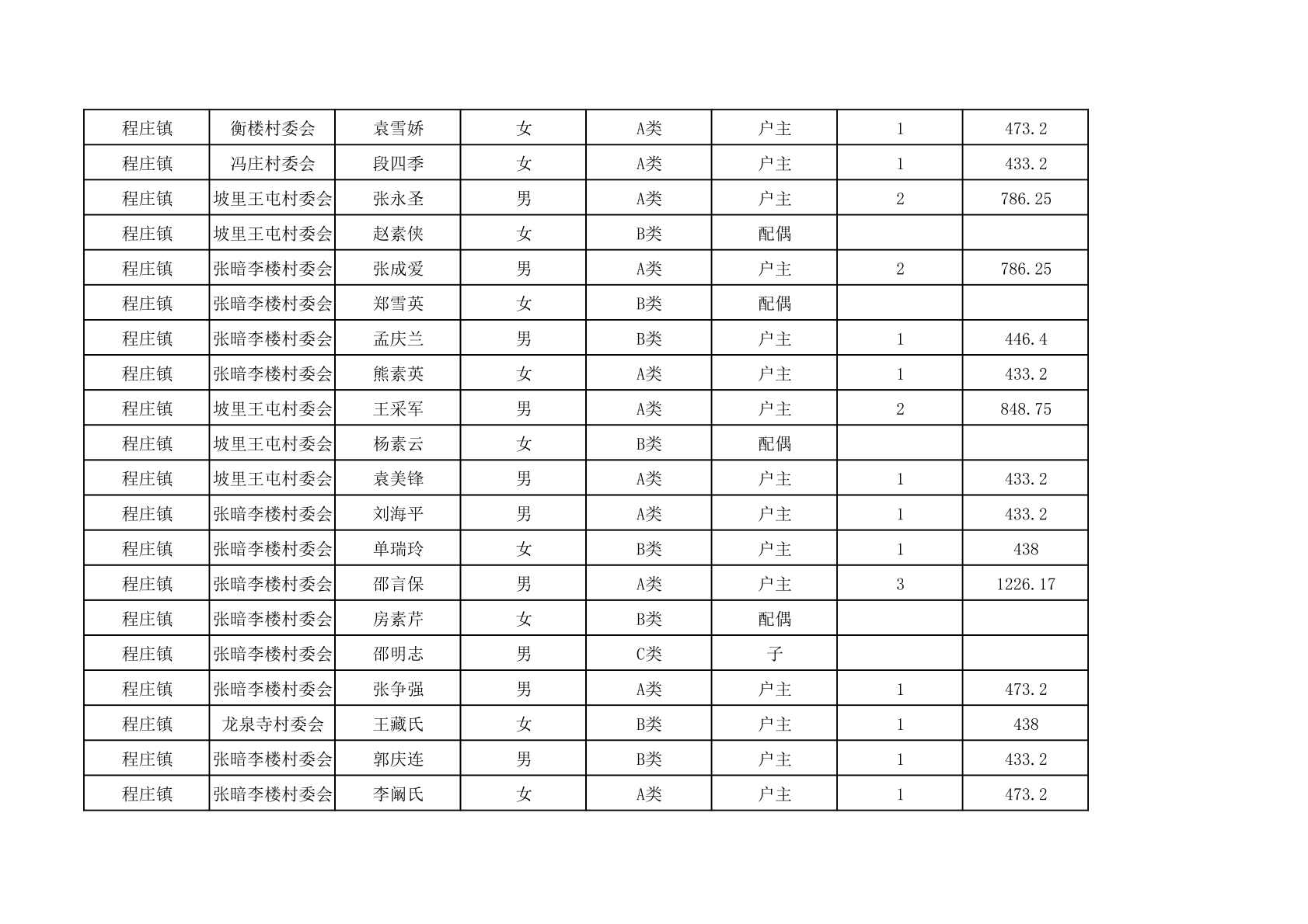 程庄镇2025年9月农保资金发放名册
