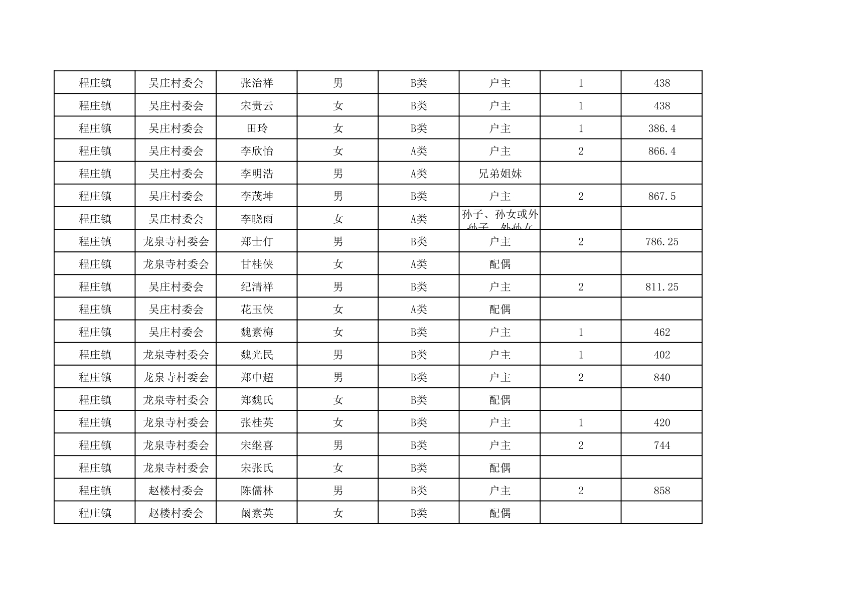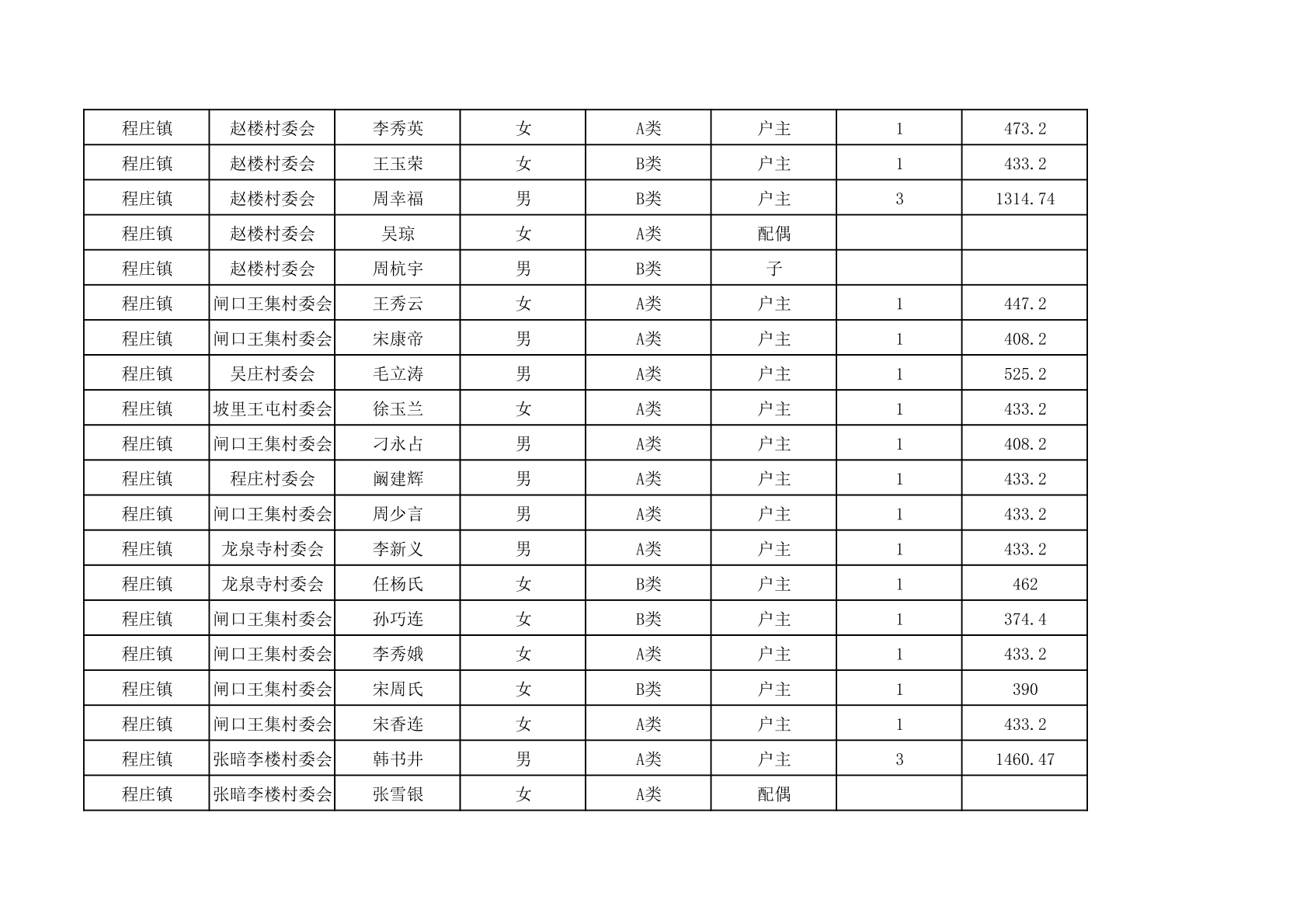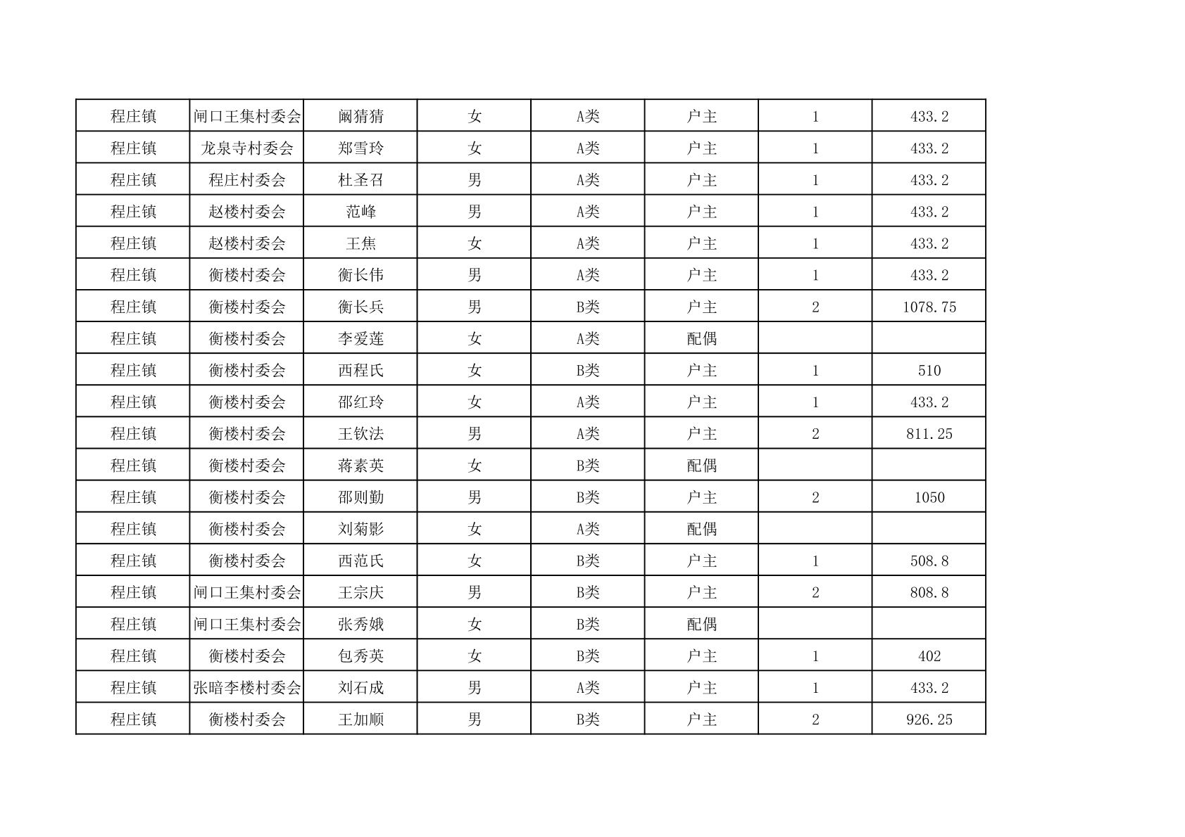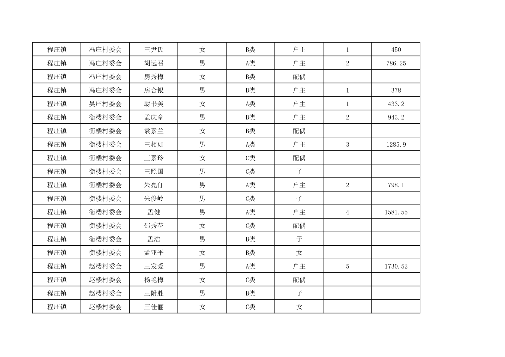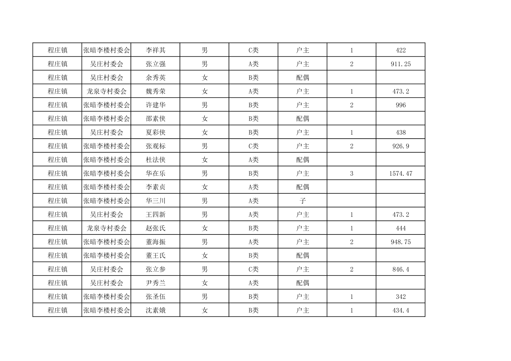 程庄镇2025年9月农保资金发放名册