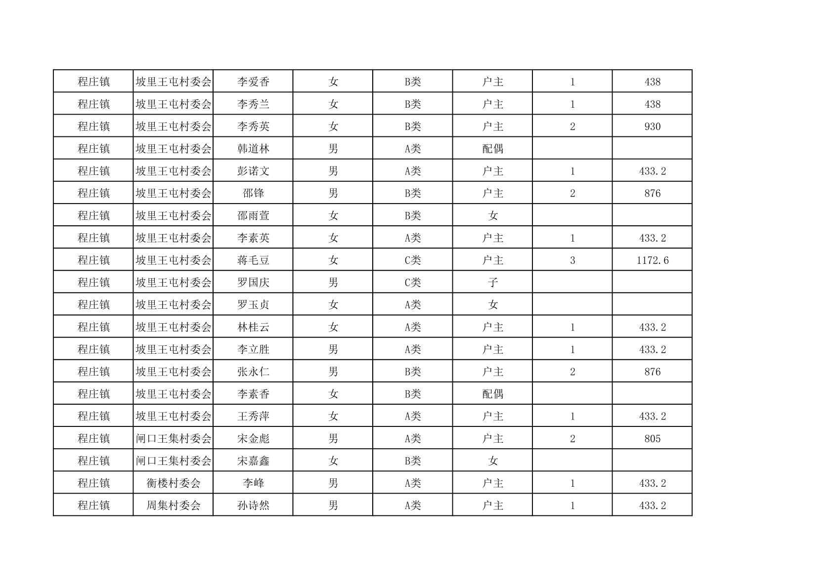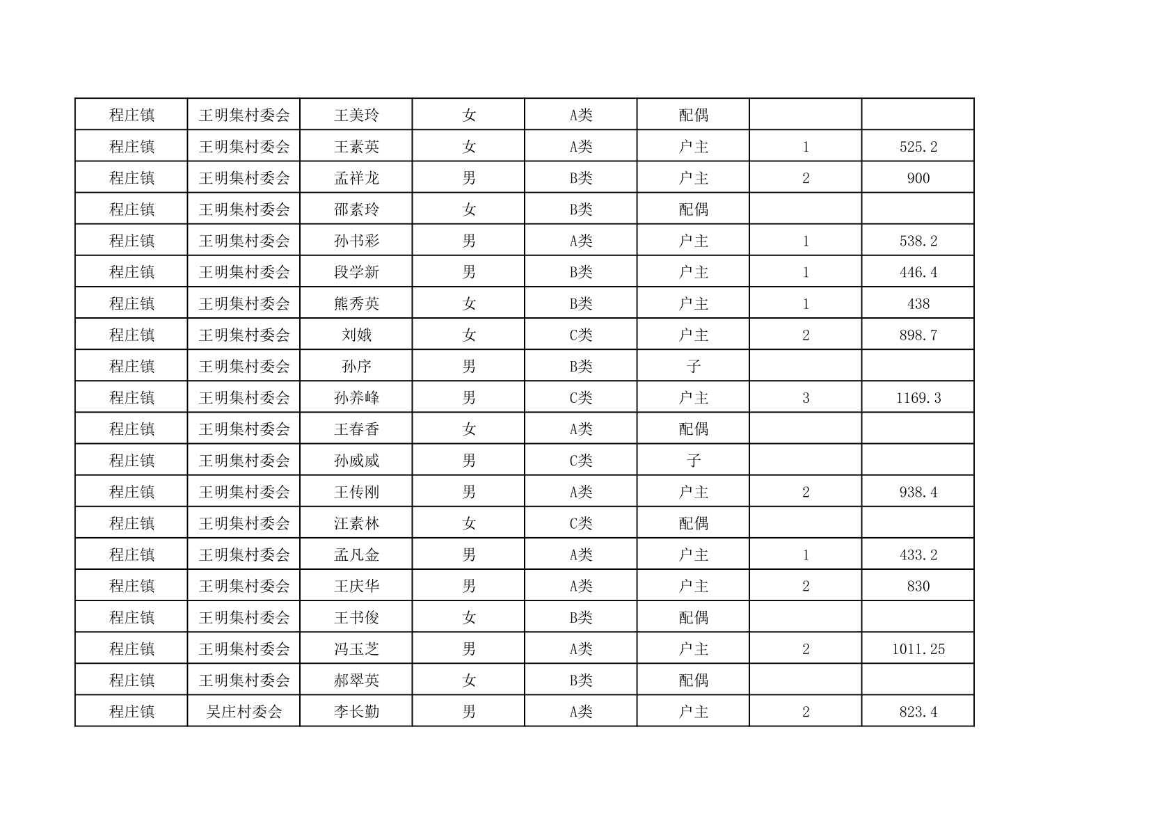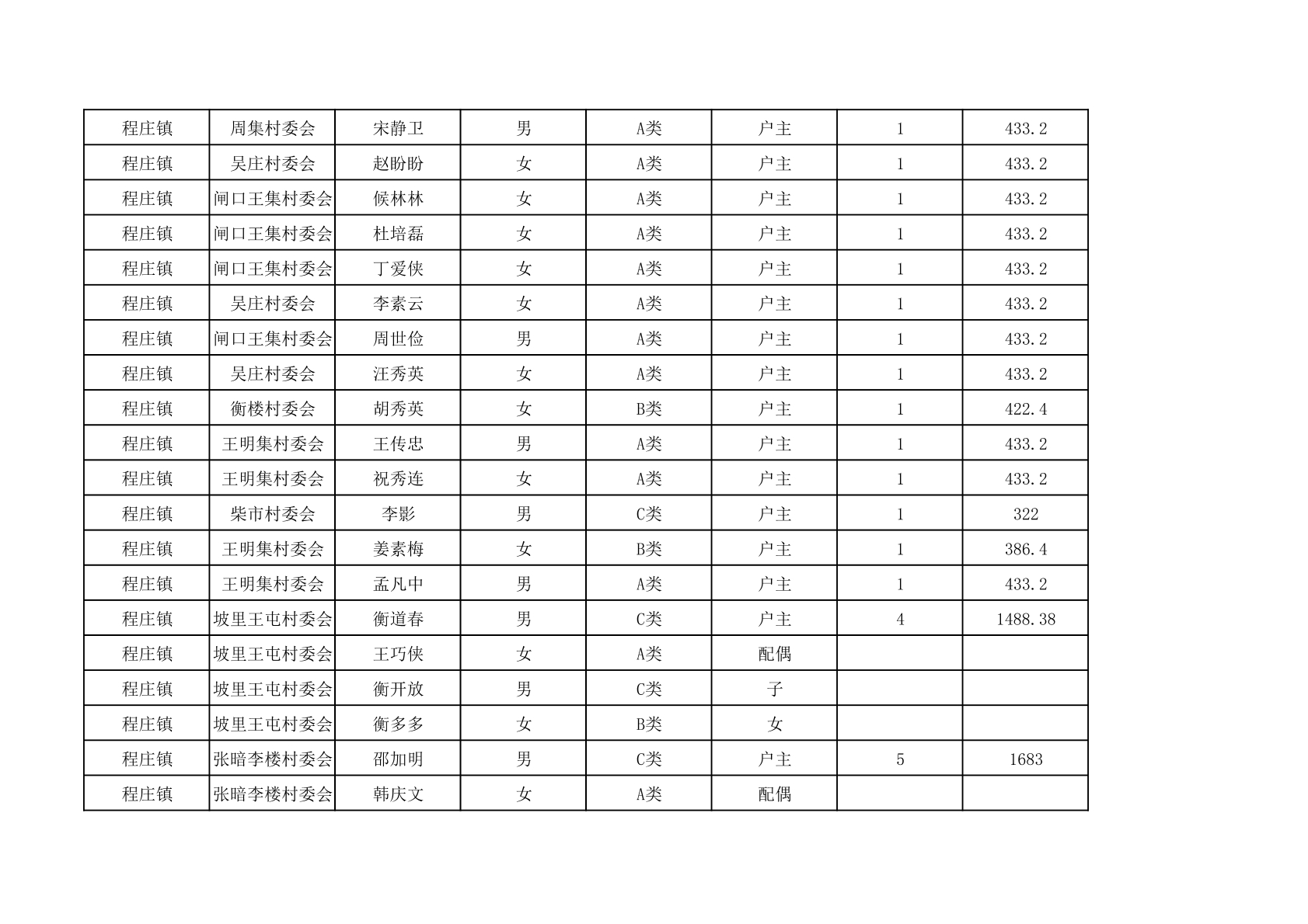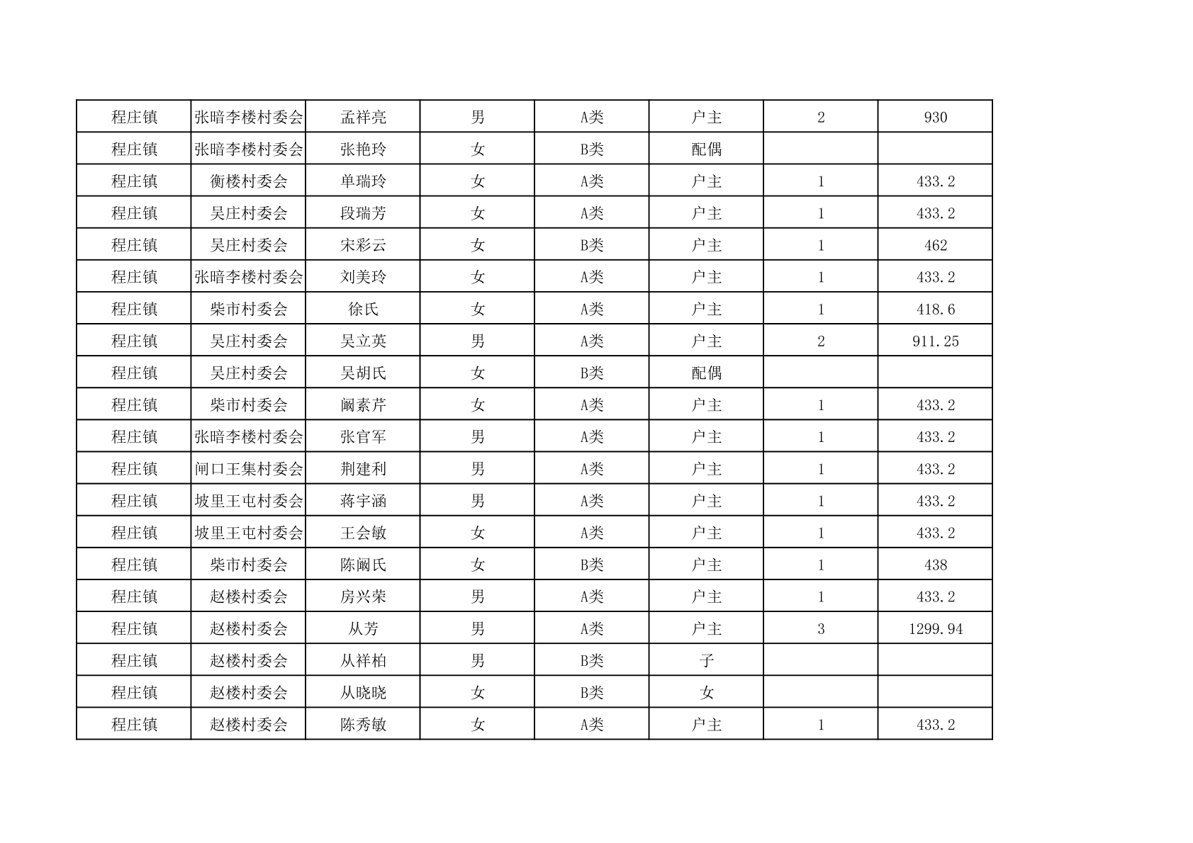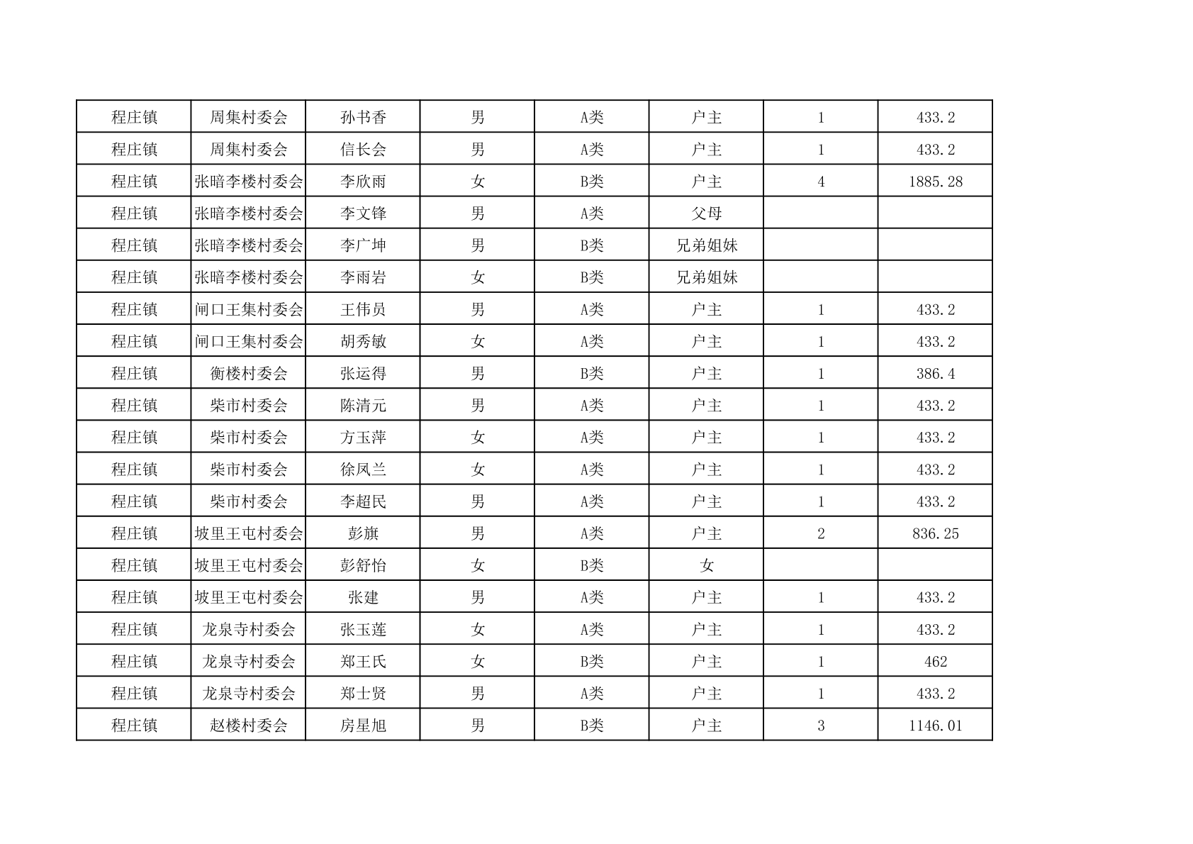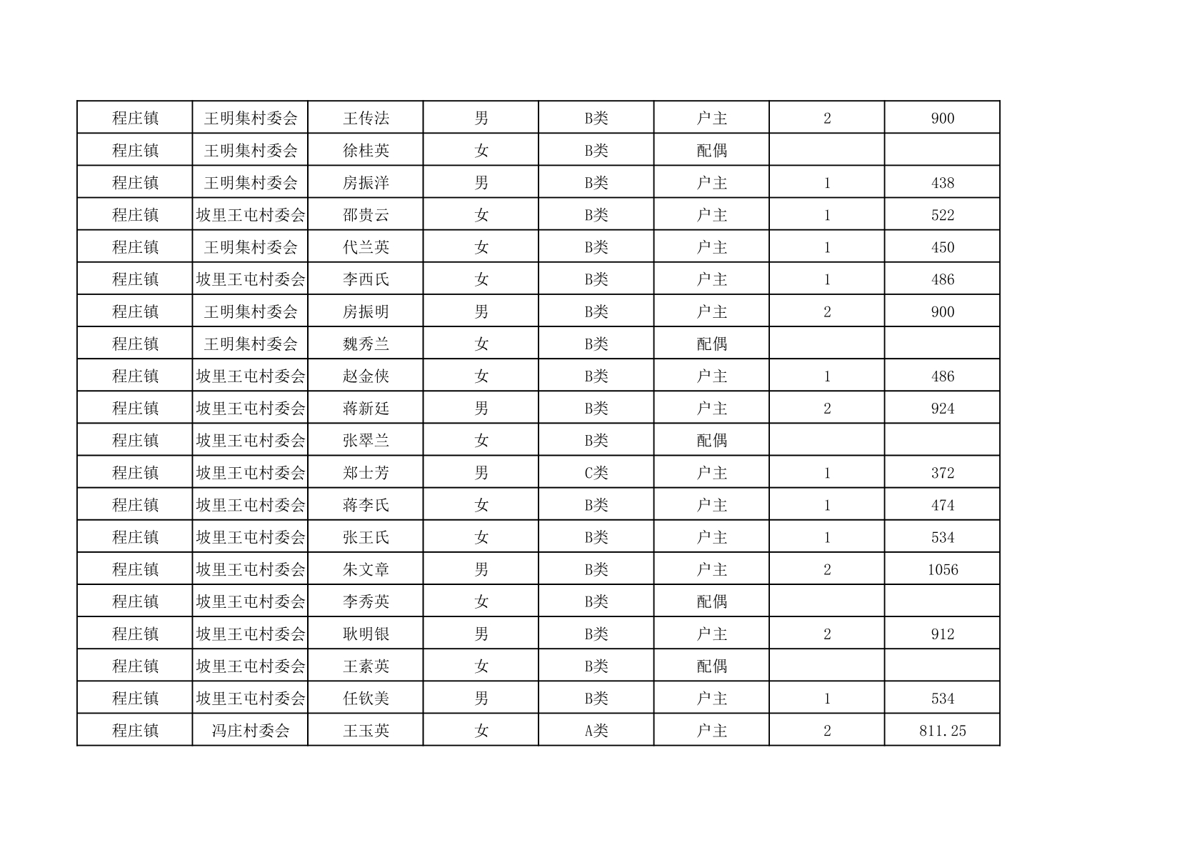 程庄镇2025年9月农保资金发放名册