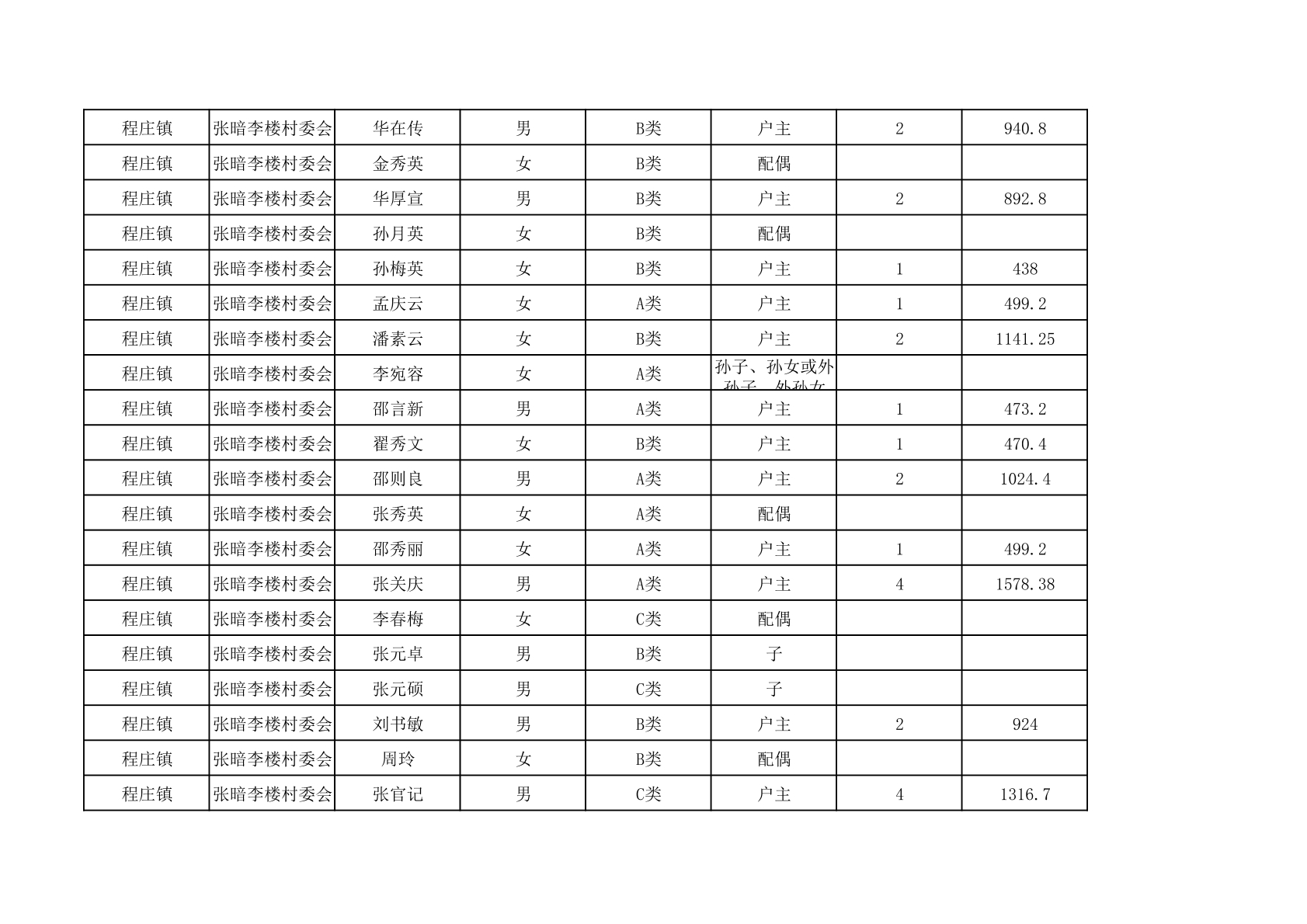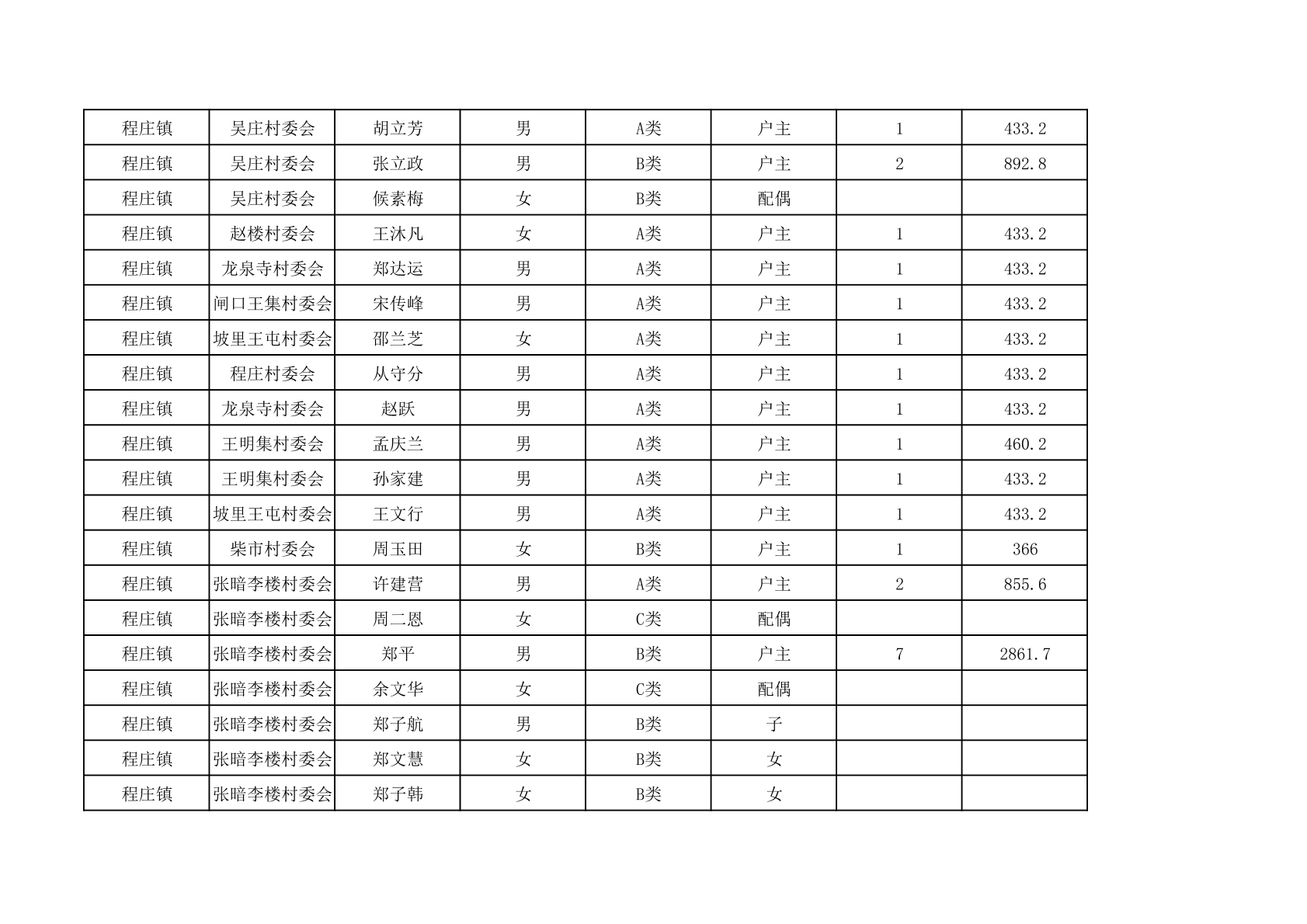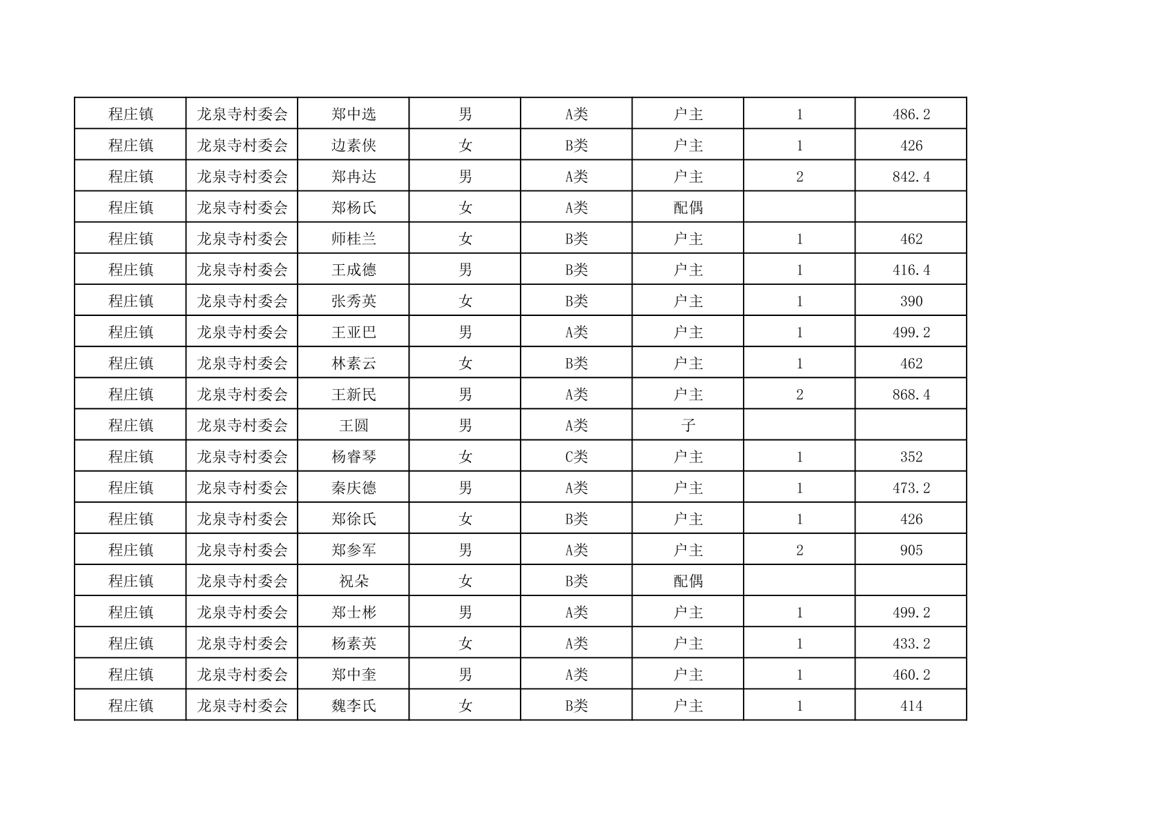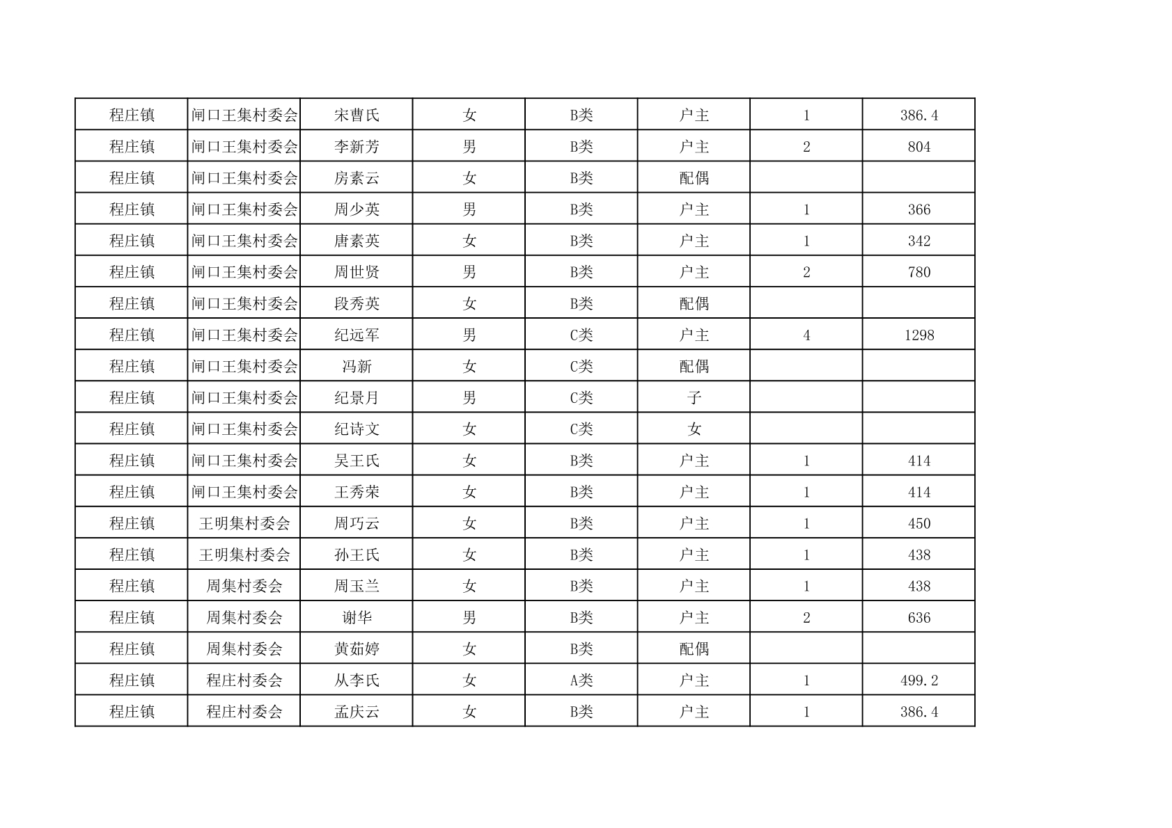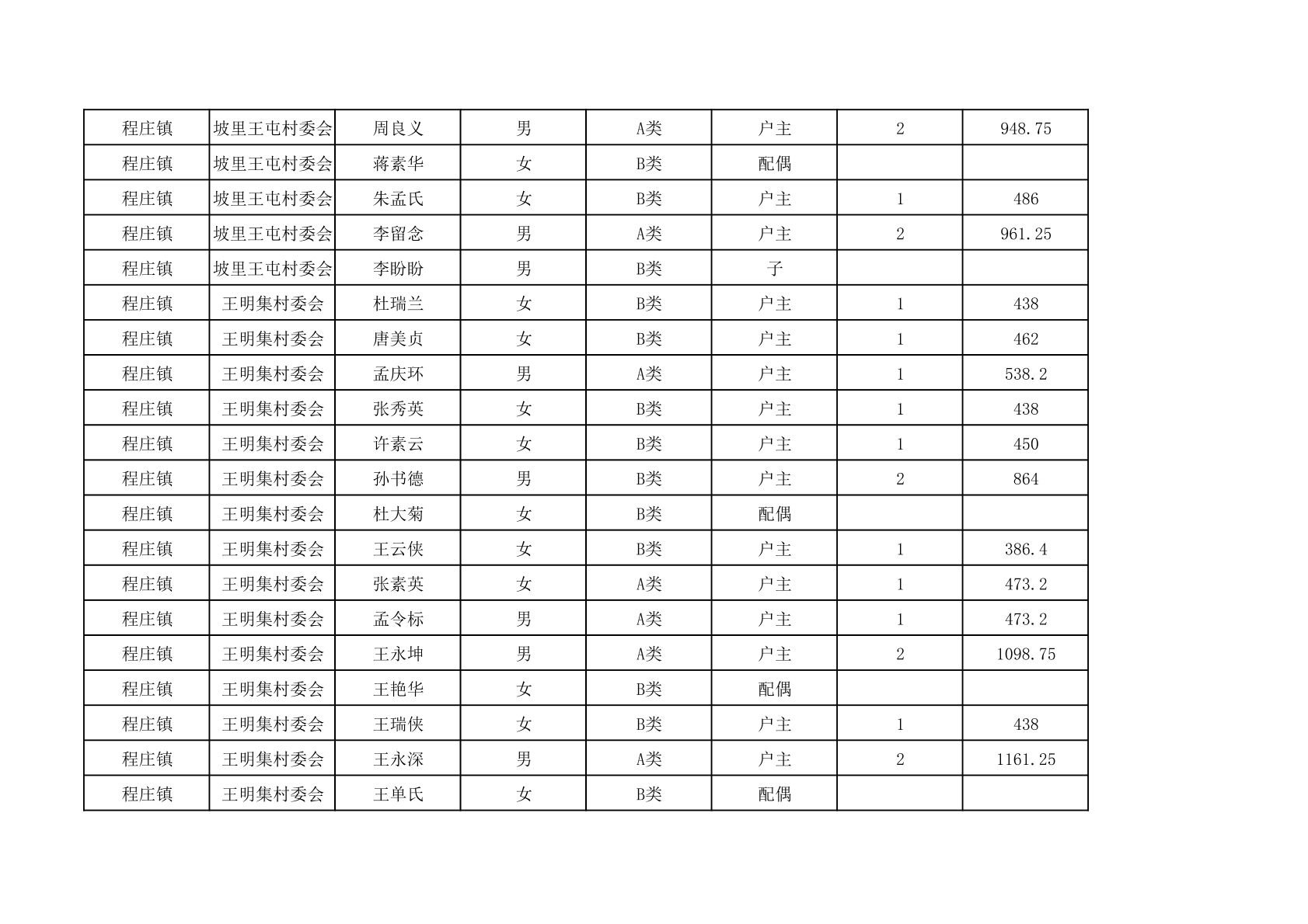 程庄镇2025年9月农保资金发放名册