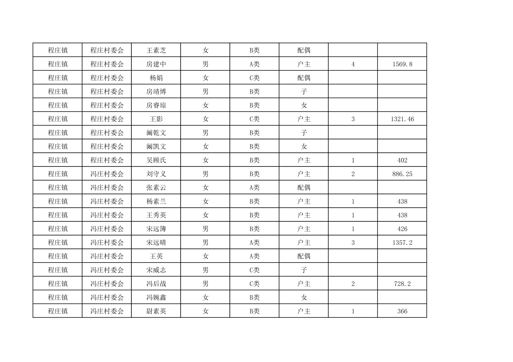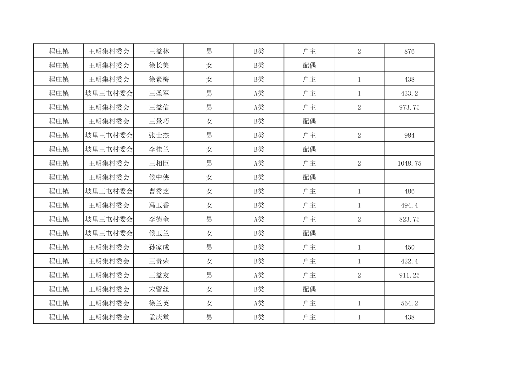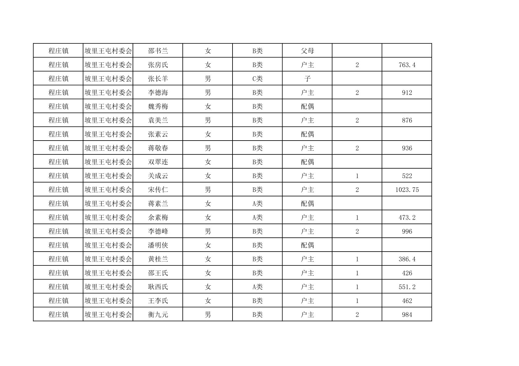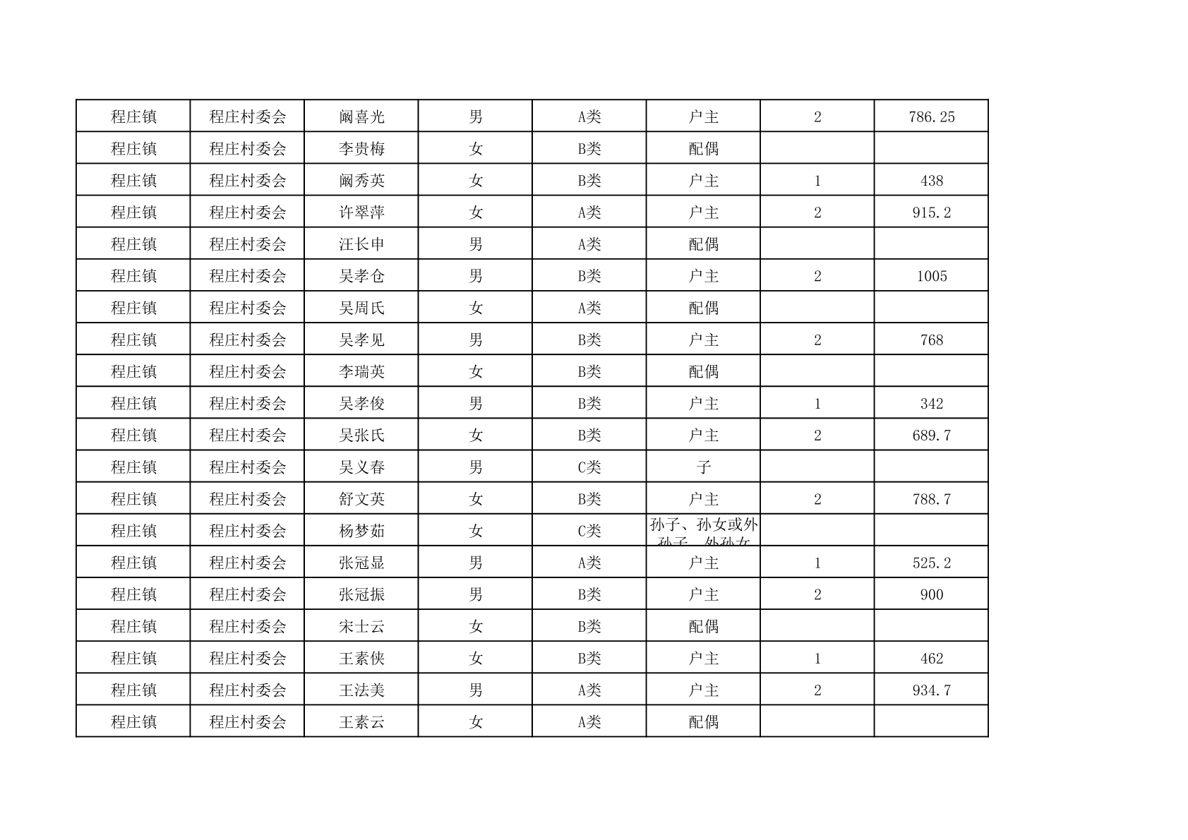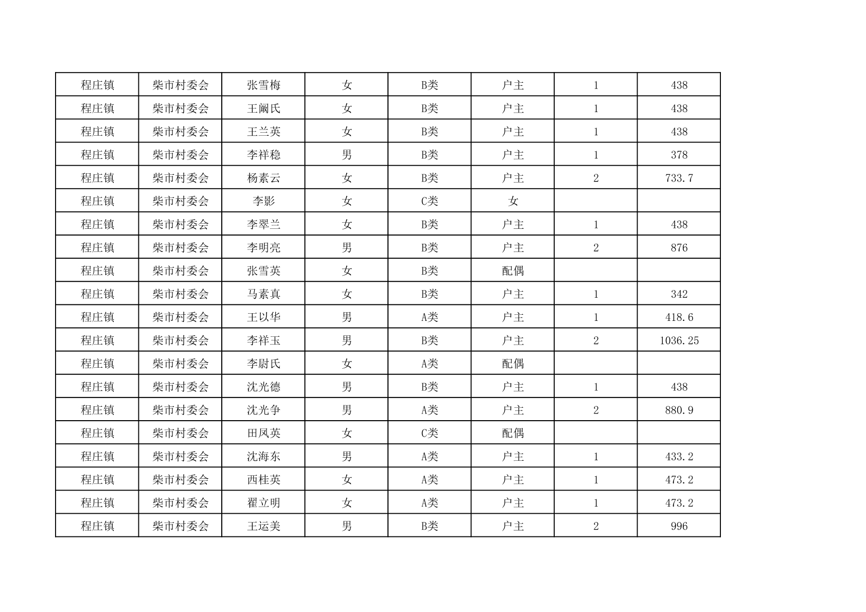 程庄镇2025年9月农保资金发放名册