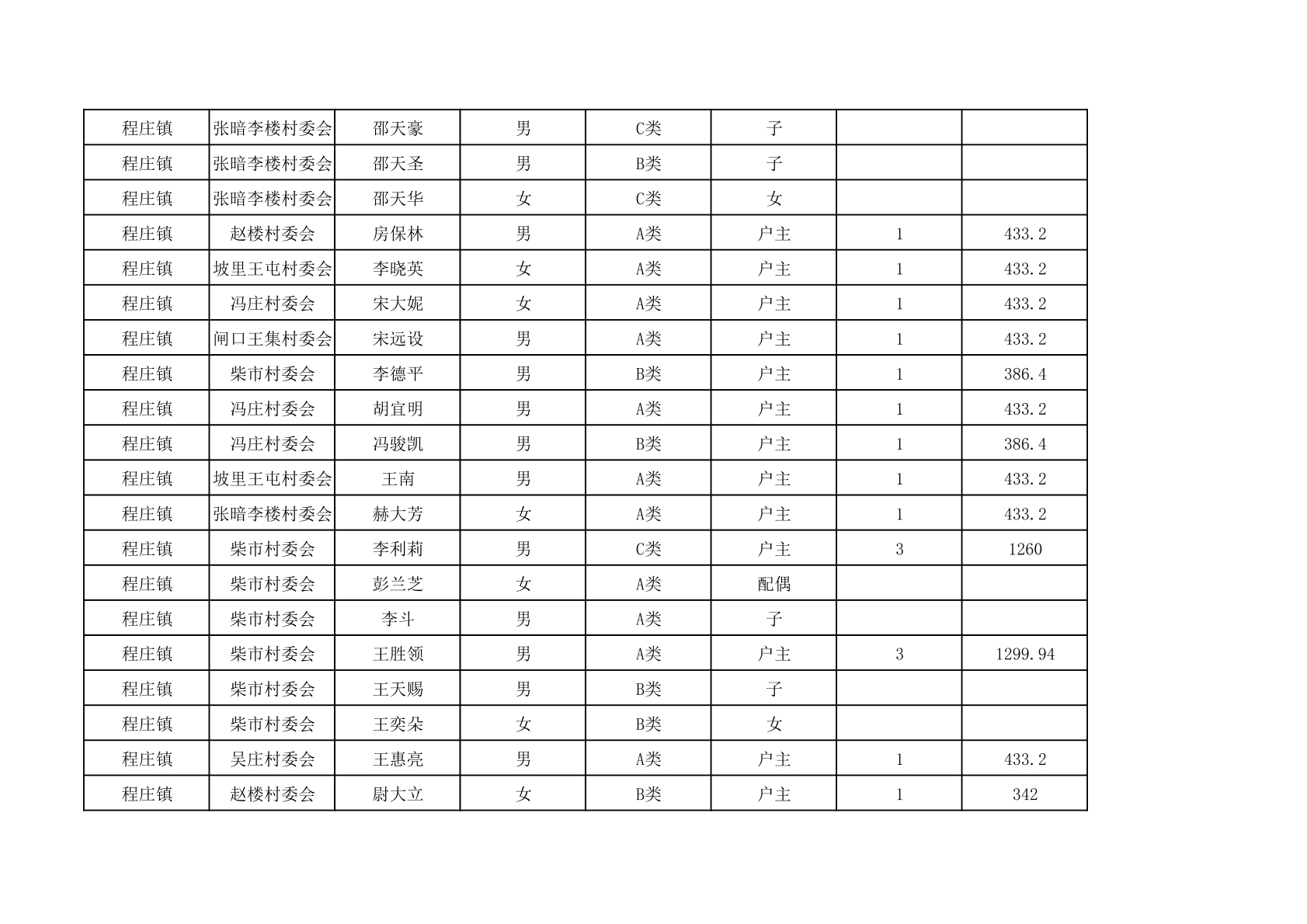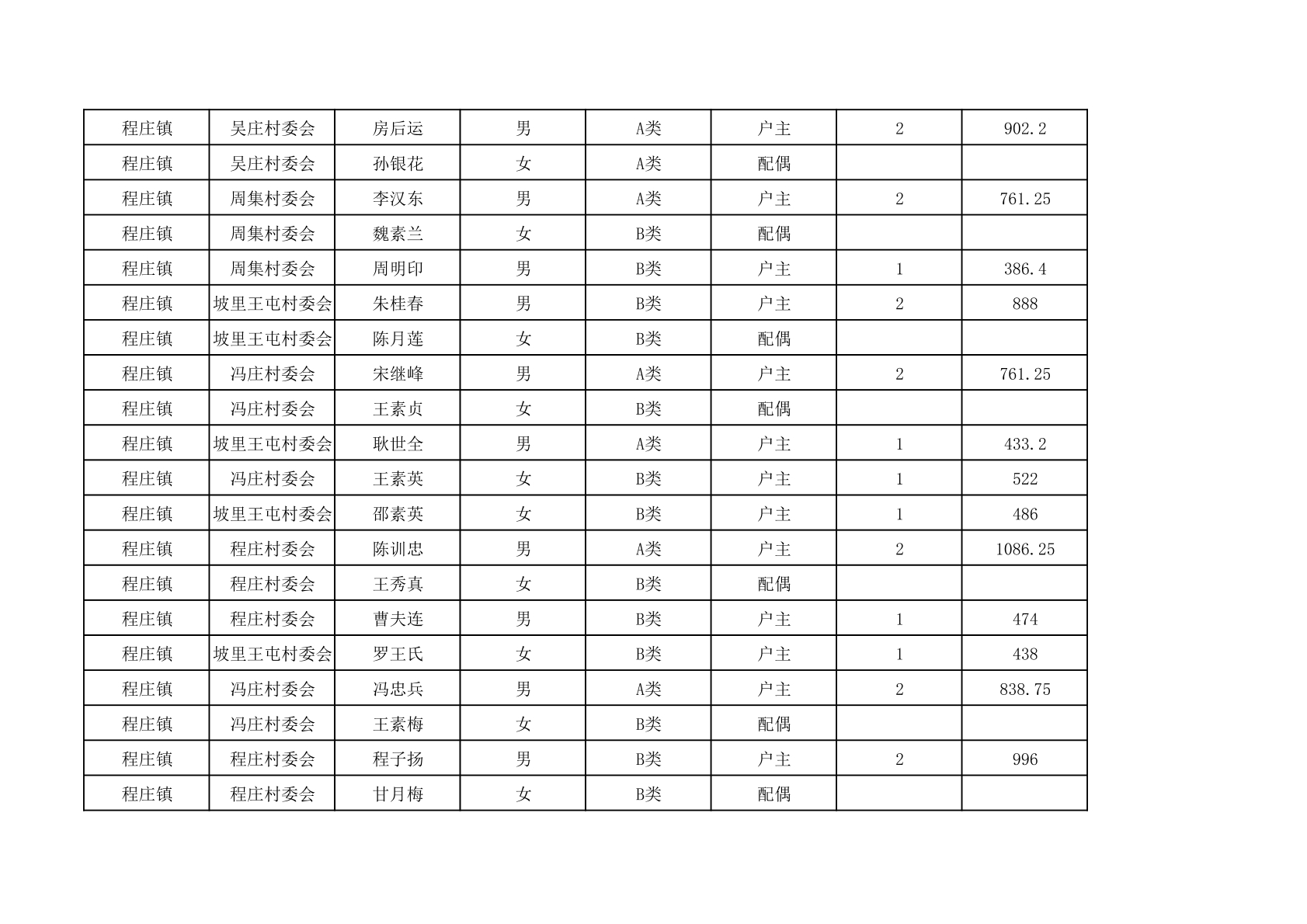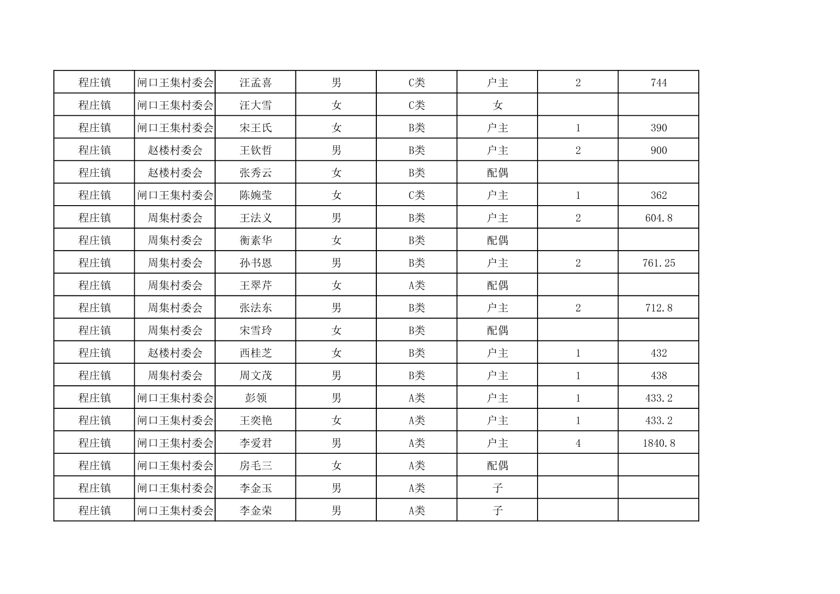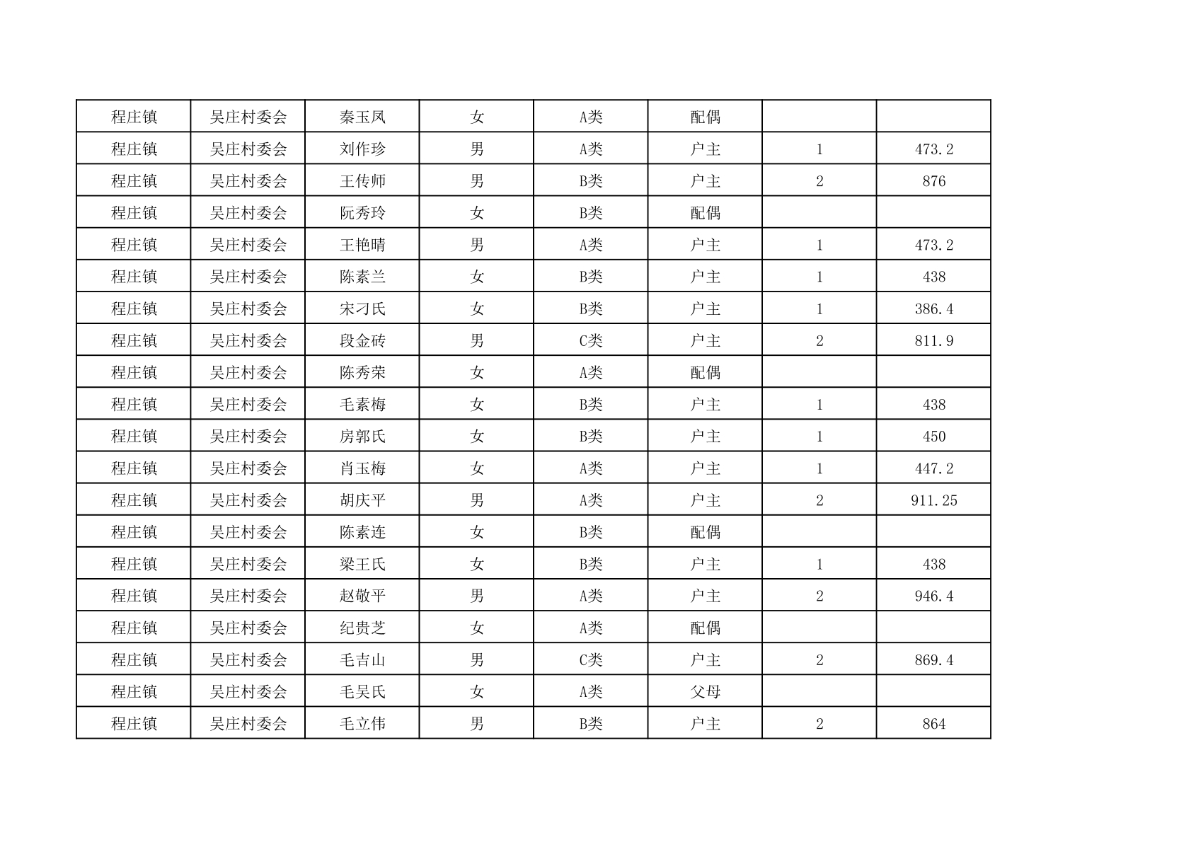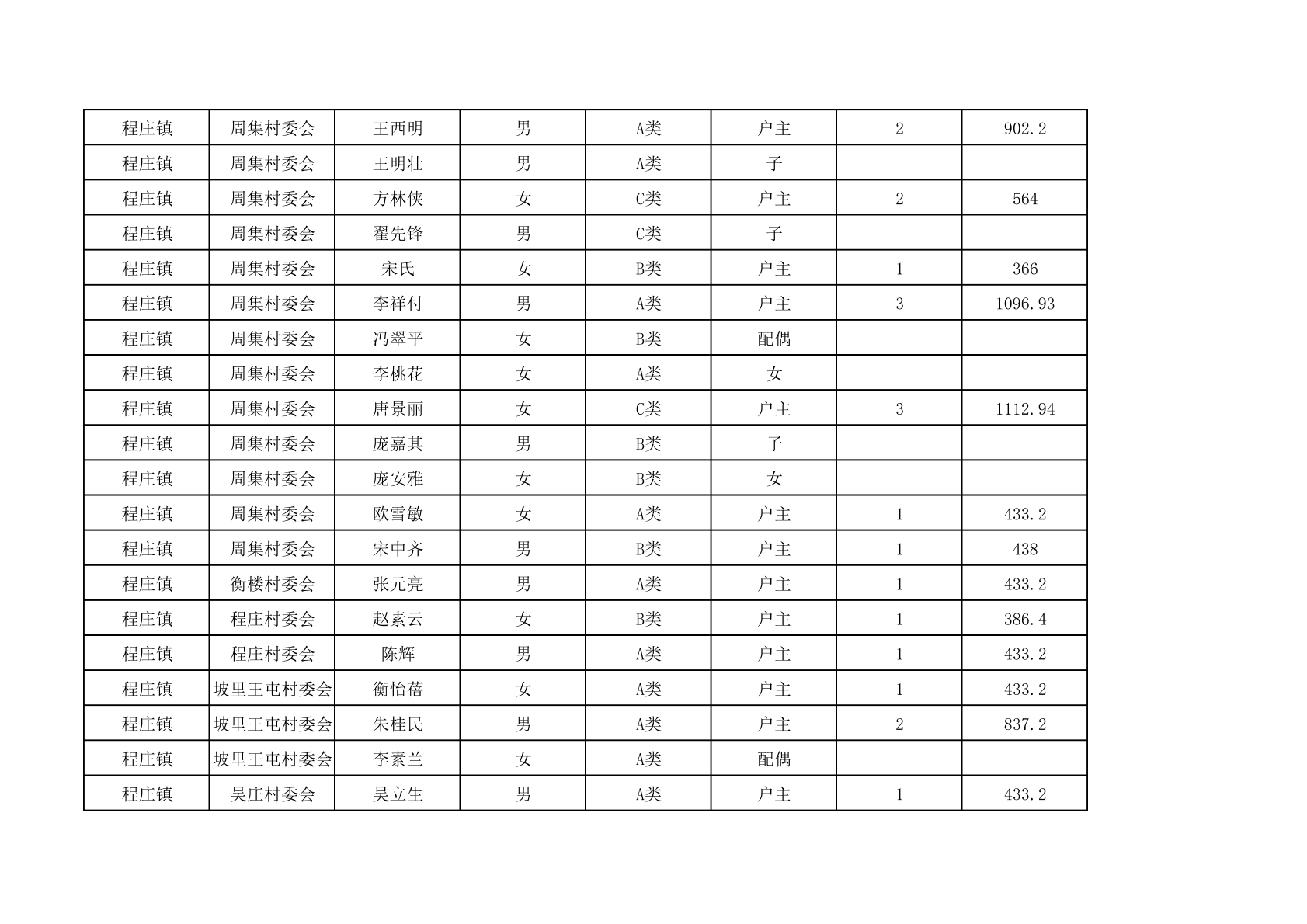程庄镇2025年9月农保资金发放名册