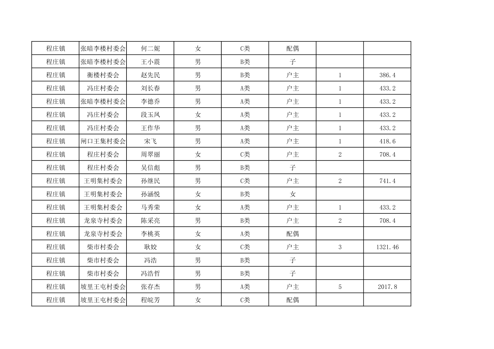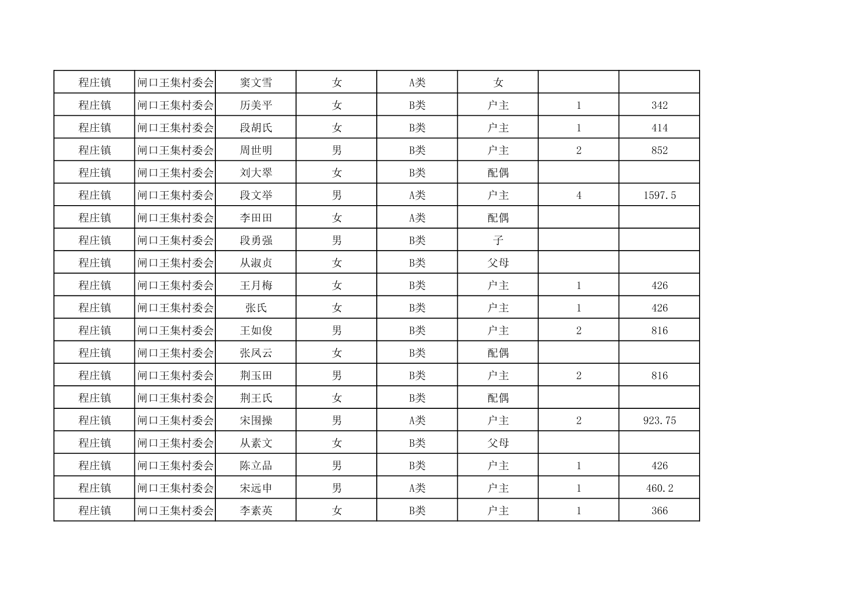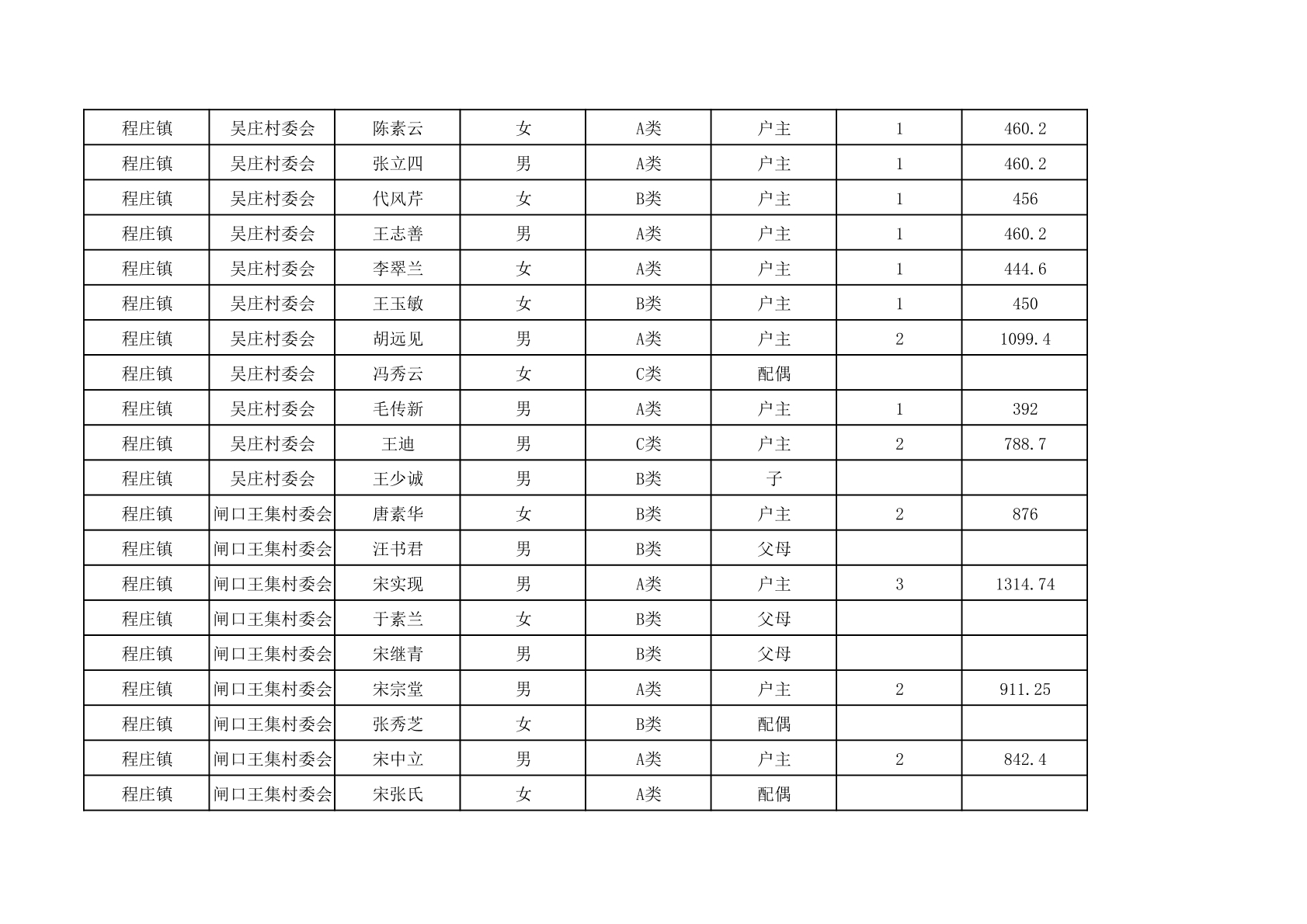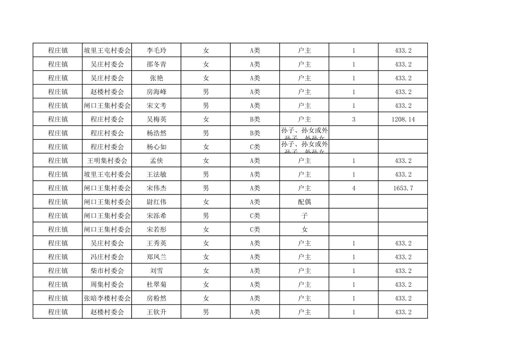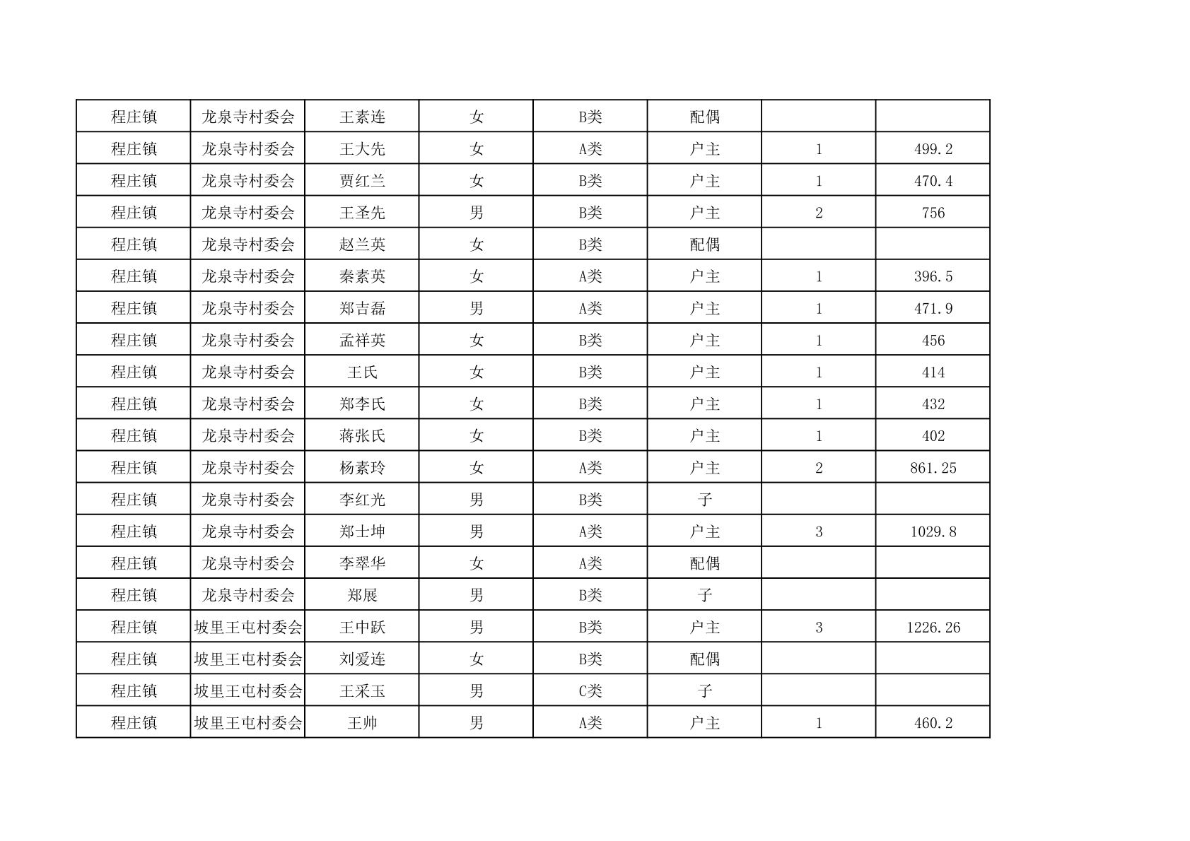 程庄镇2025年9月农保资金发放名册