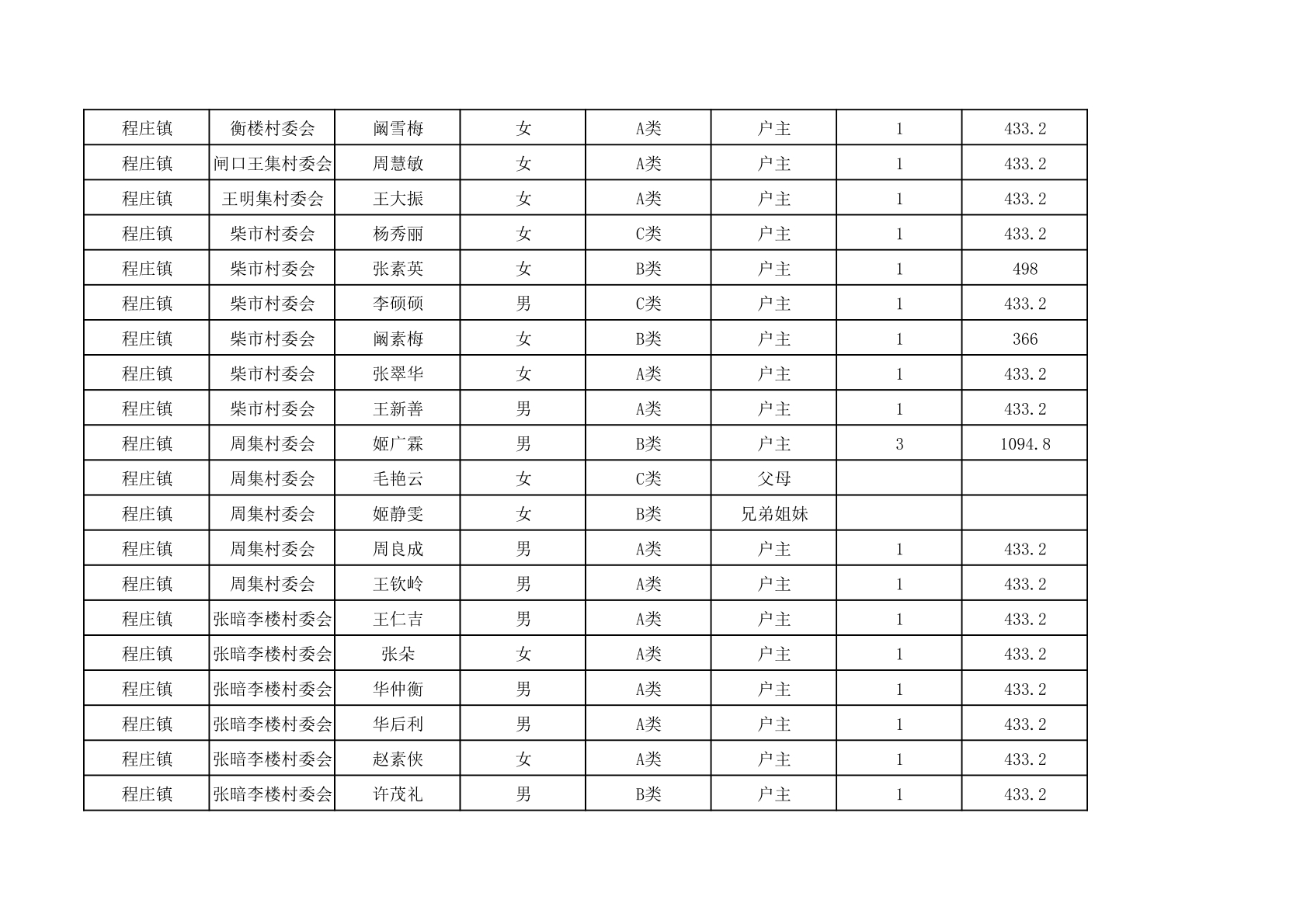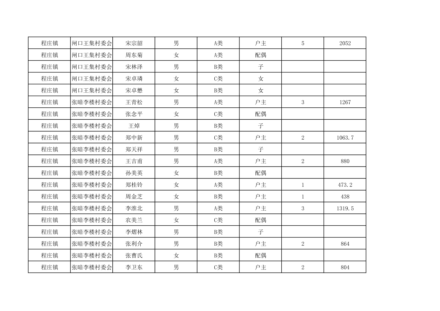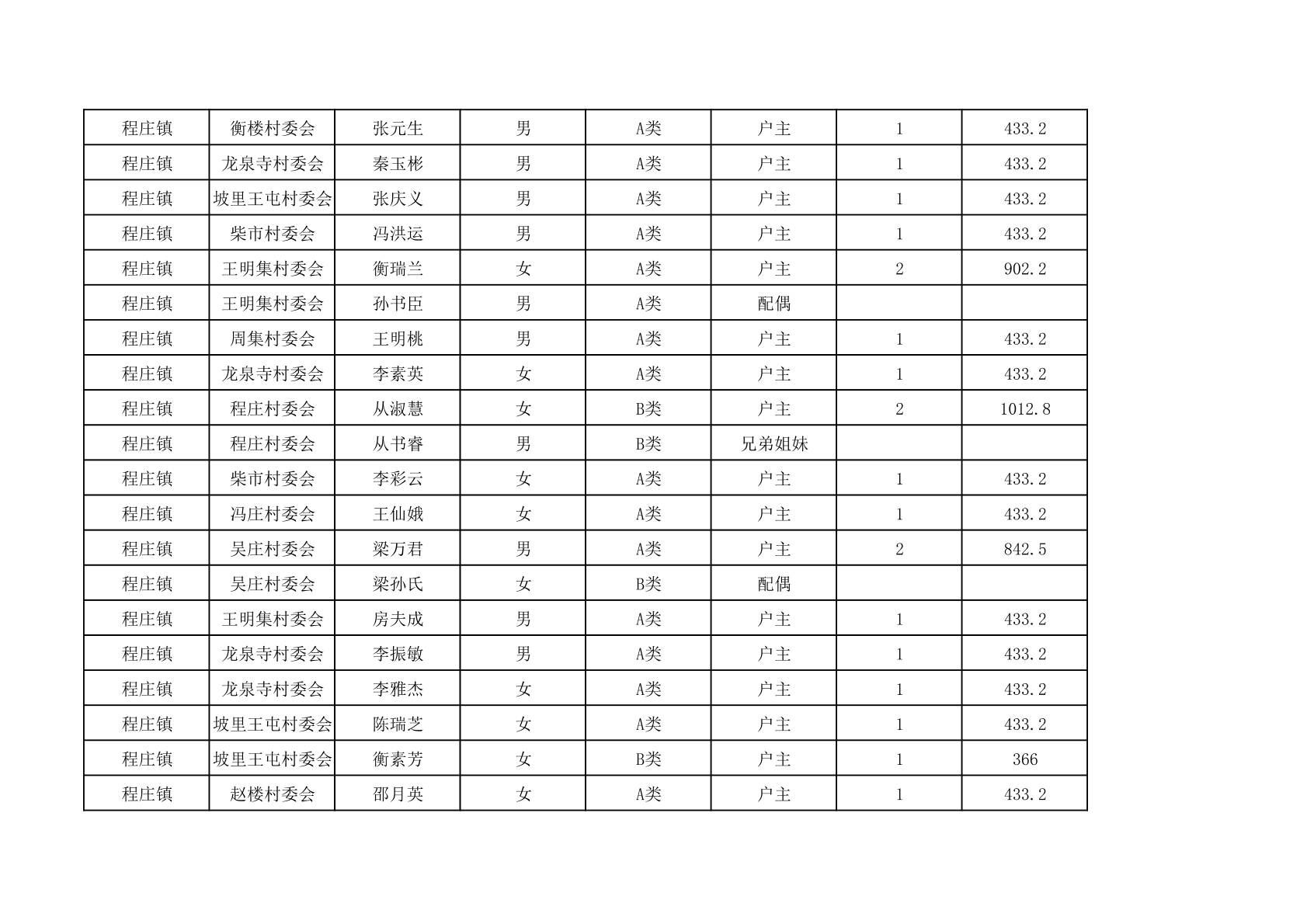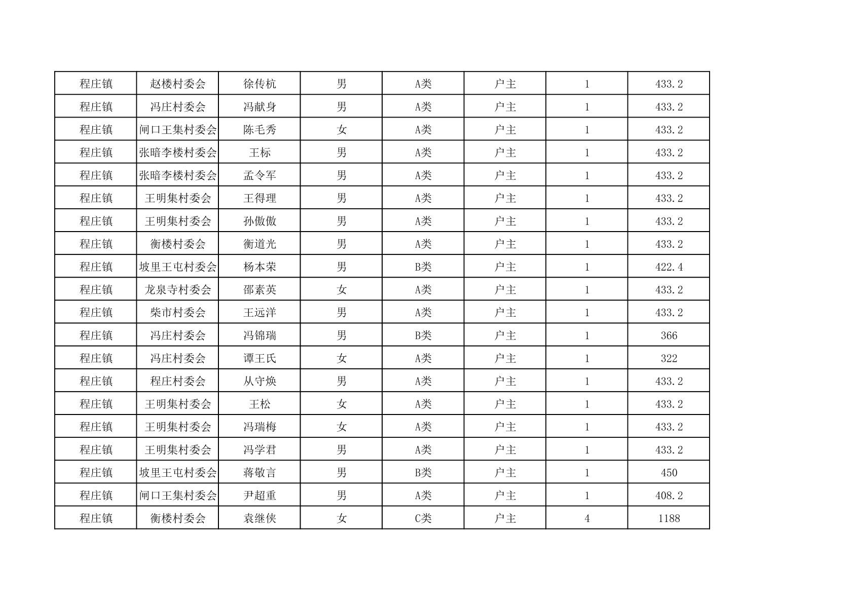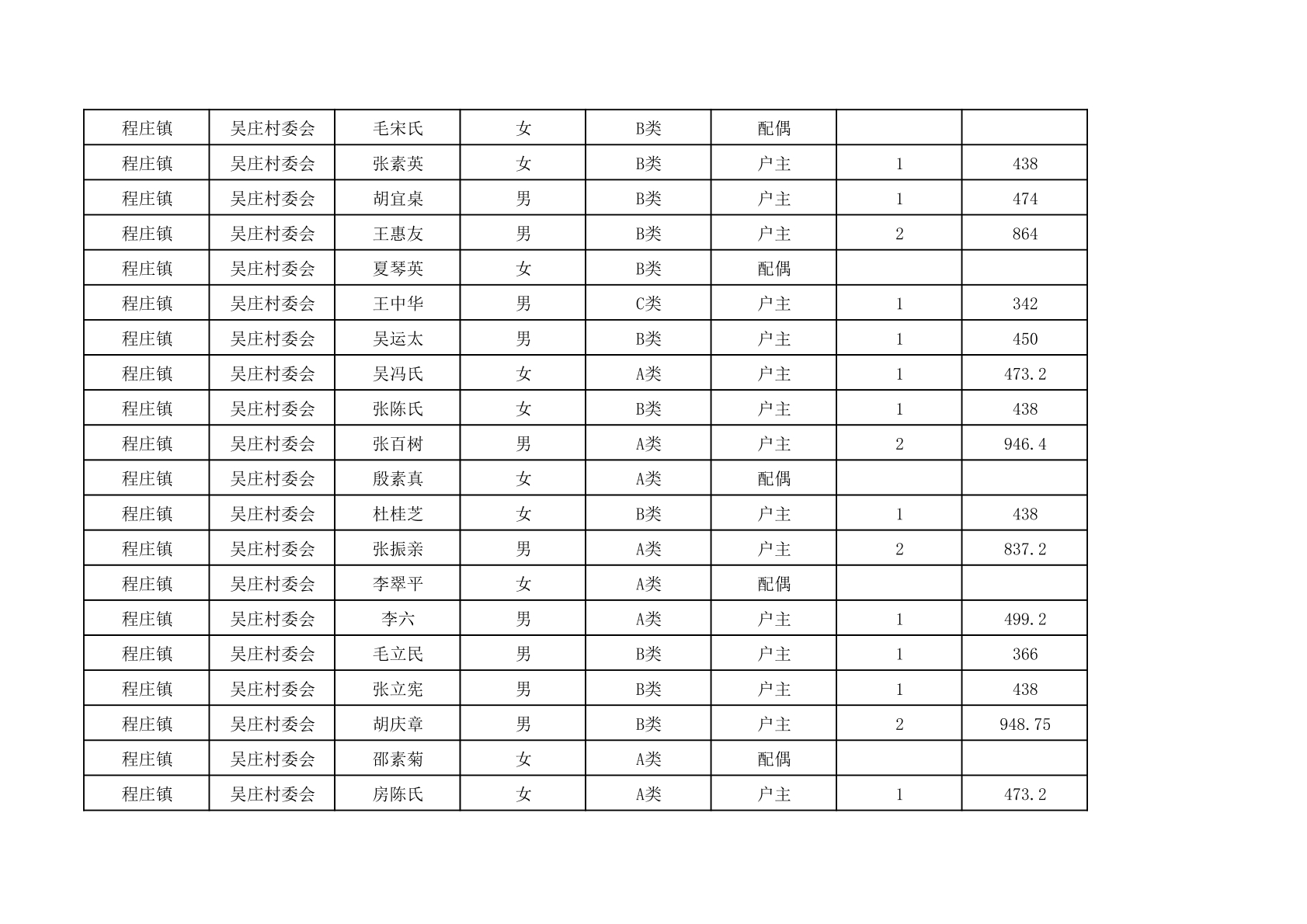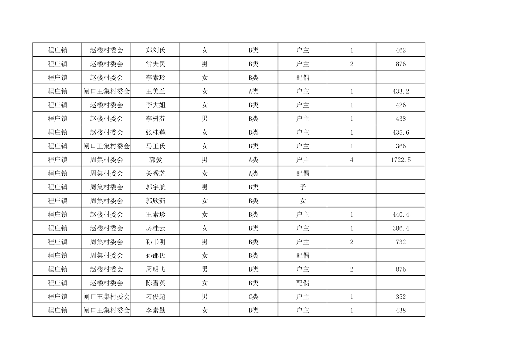 程庄镇2025年9月农保资金发放名册
