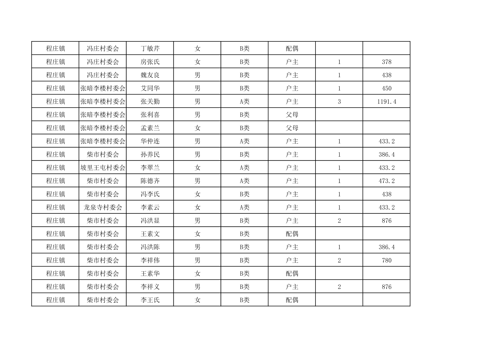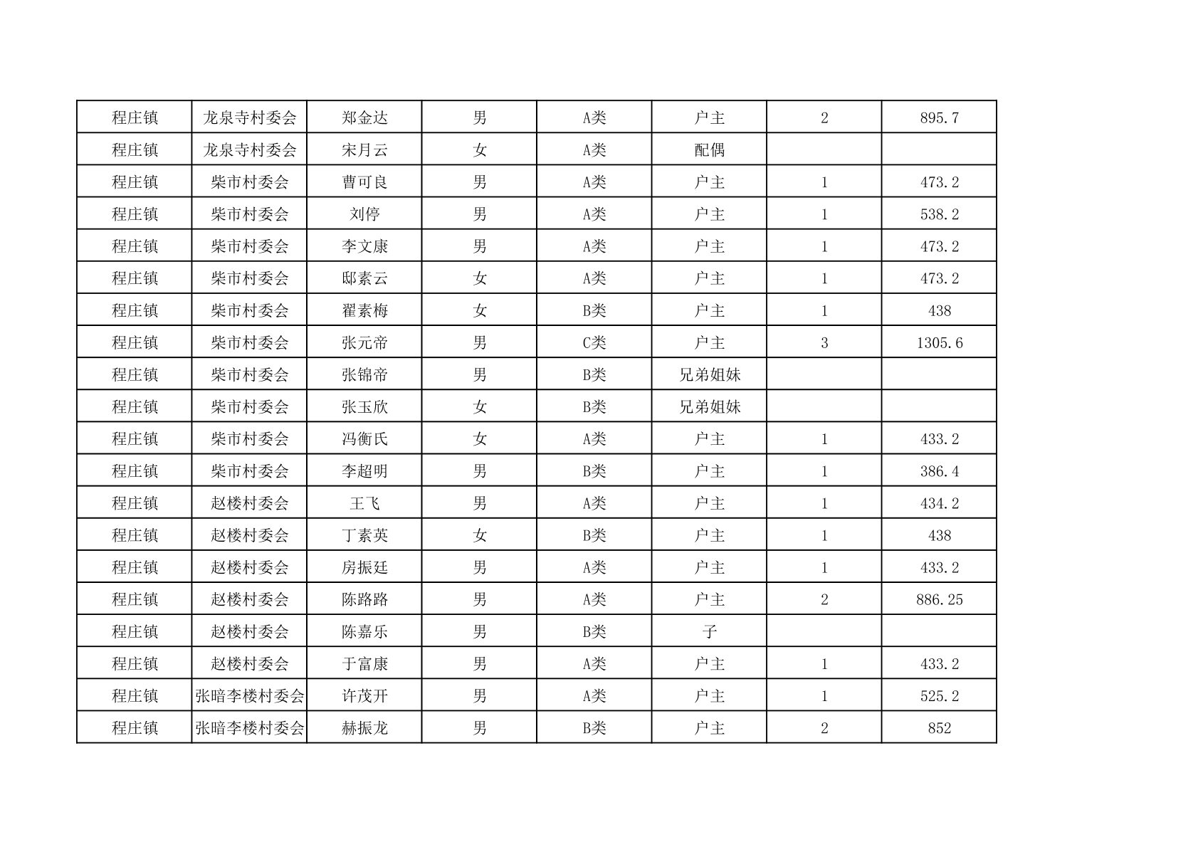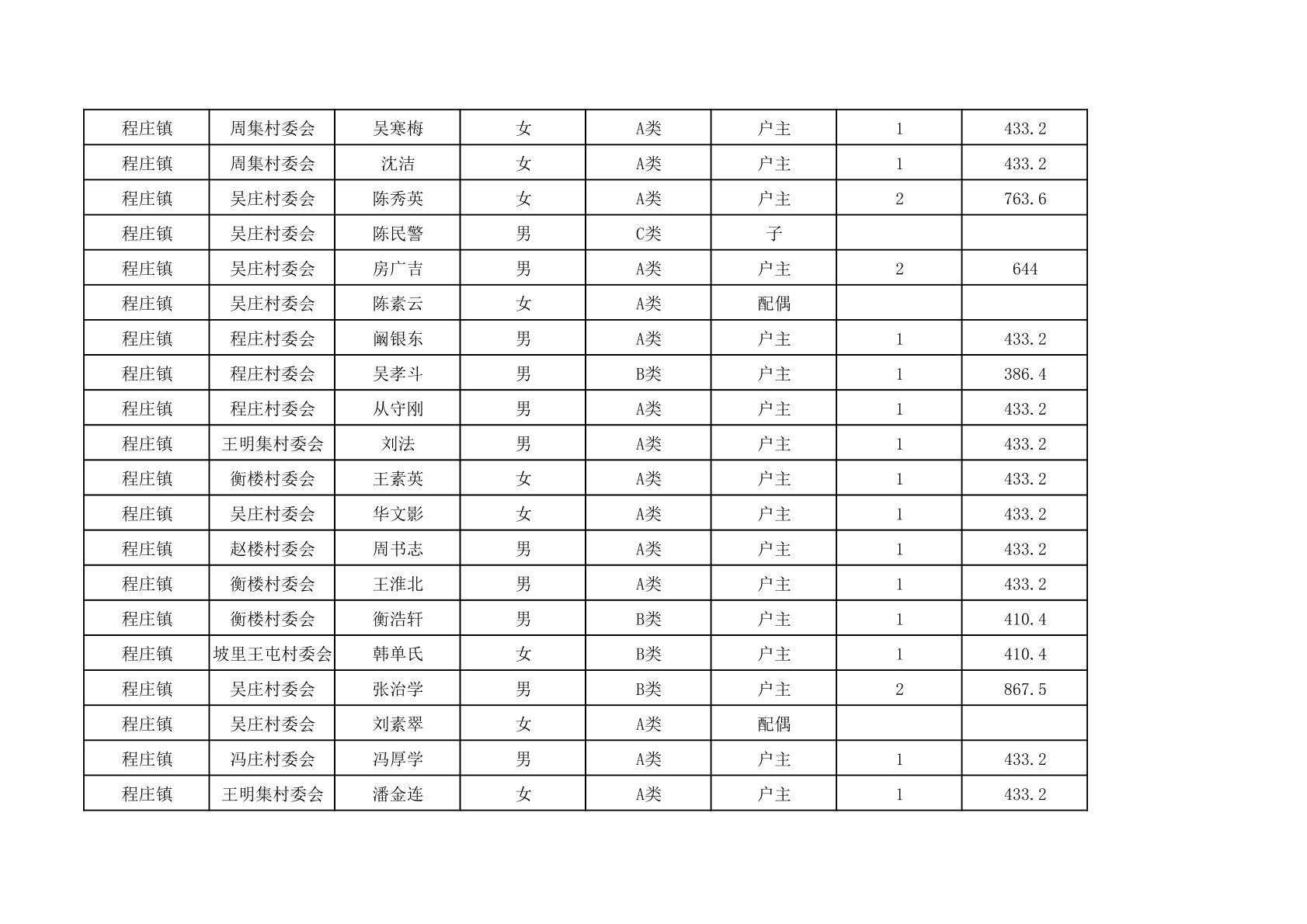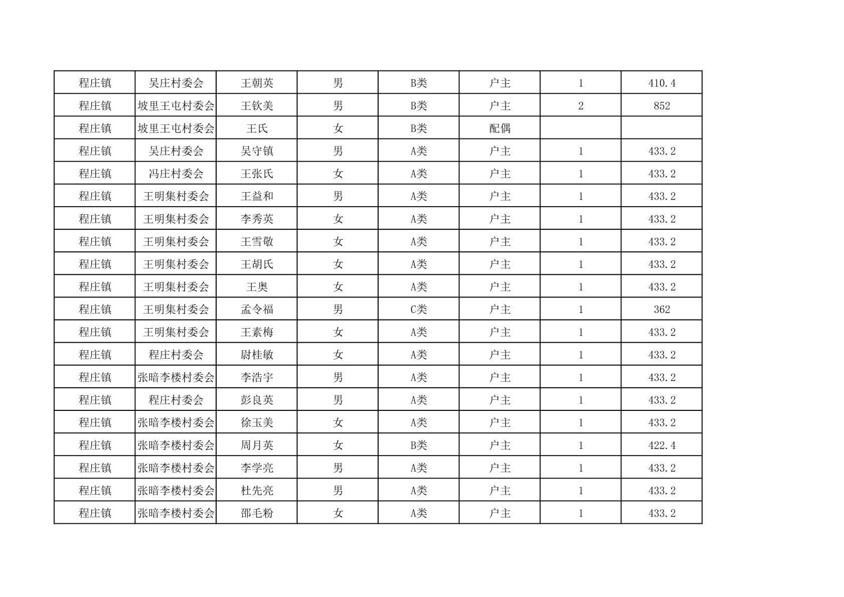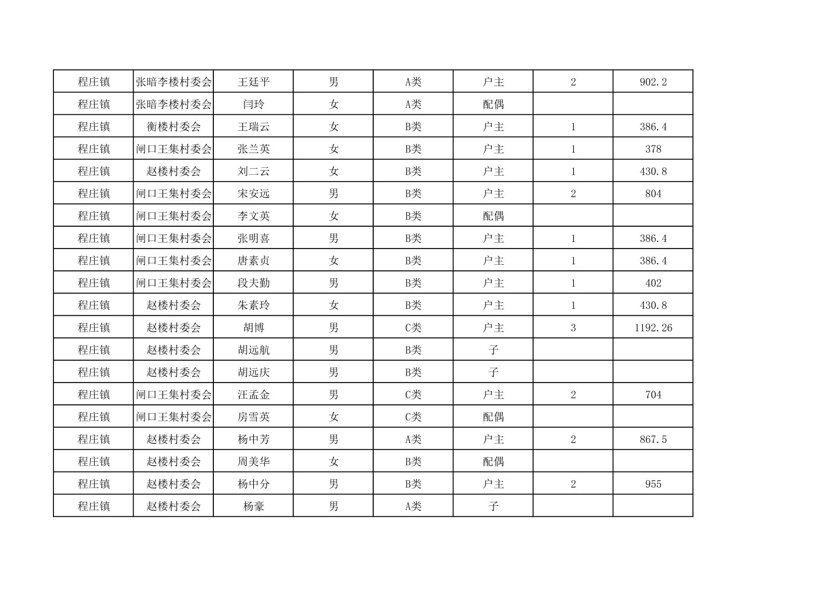 程庄镇2025年9月农保资金发放名册
